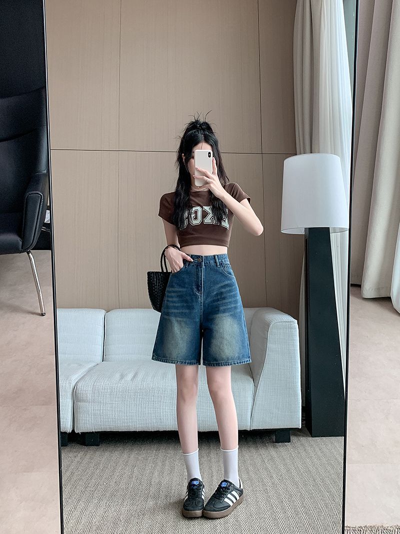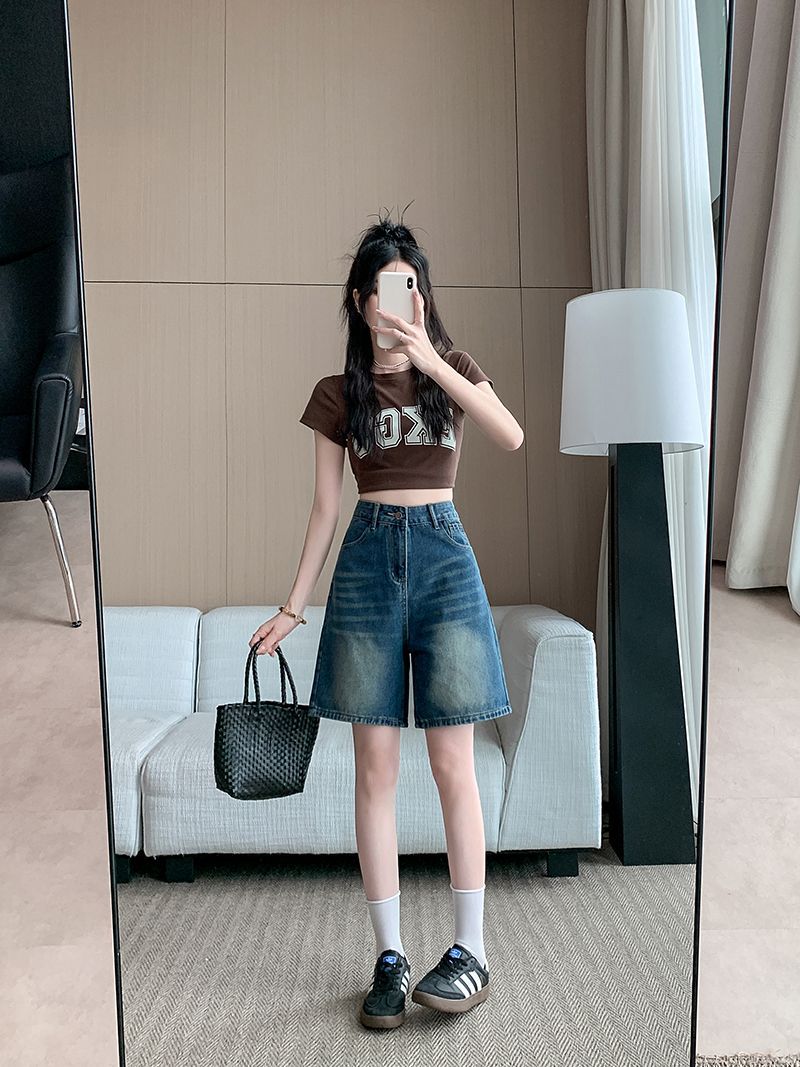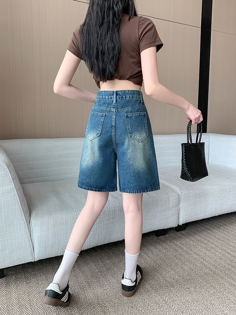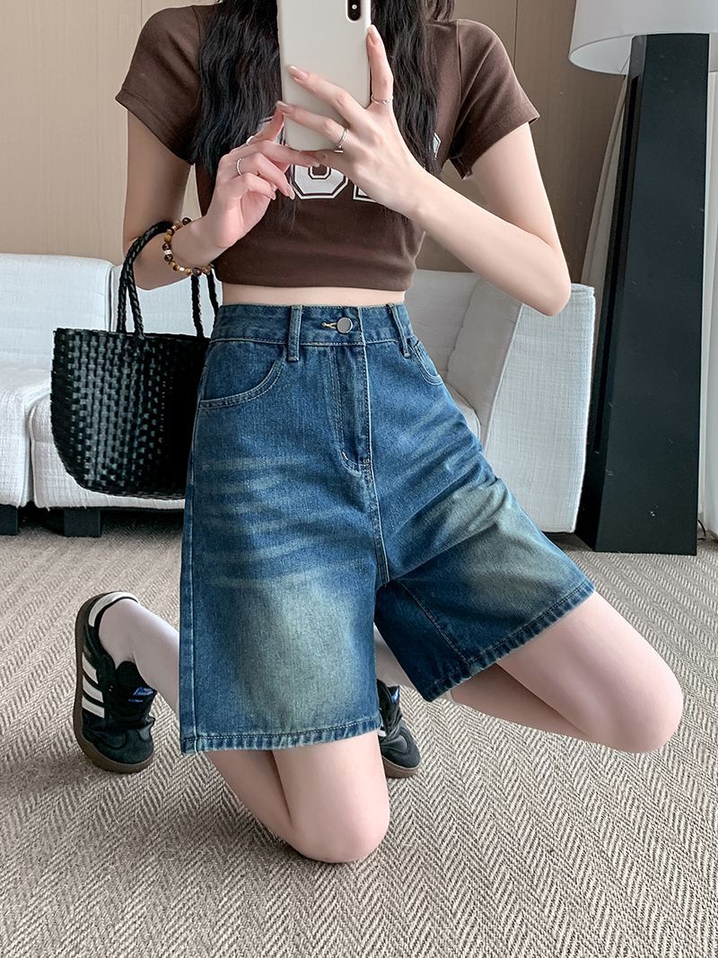 夏季新款五分直筒牛仔短褲