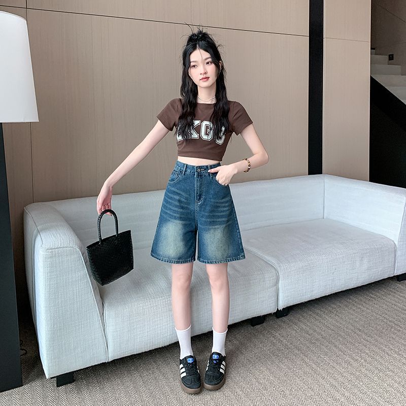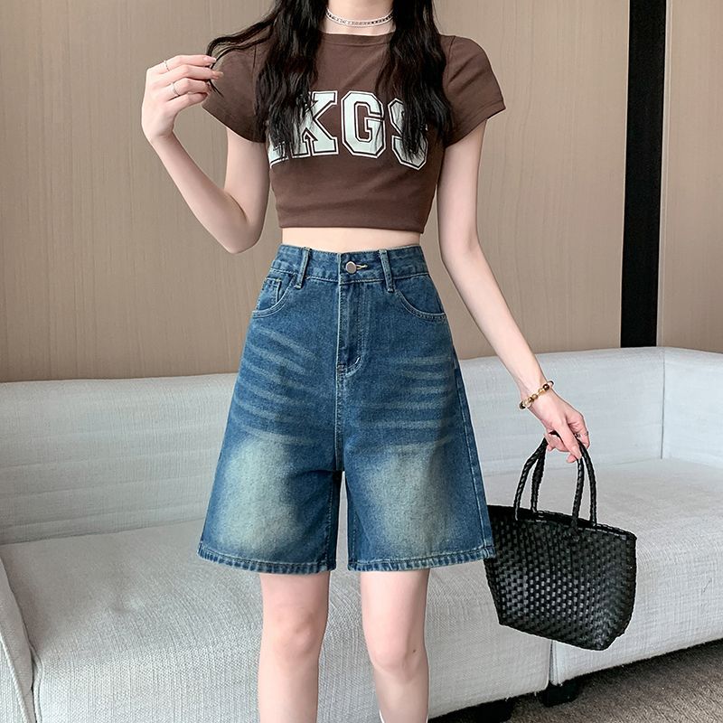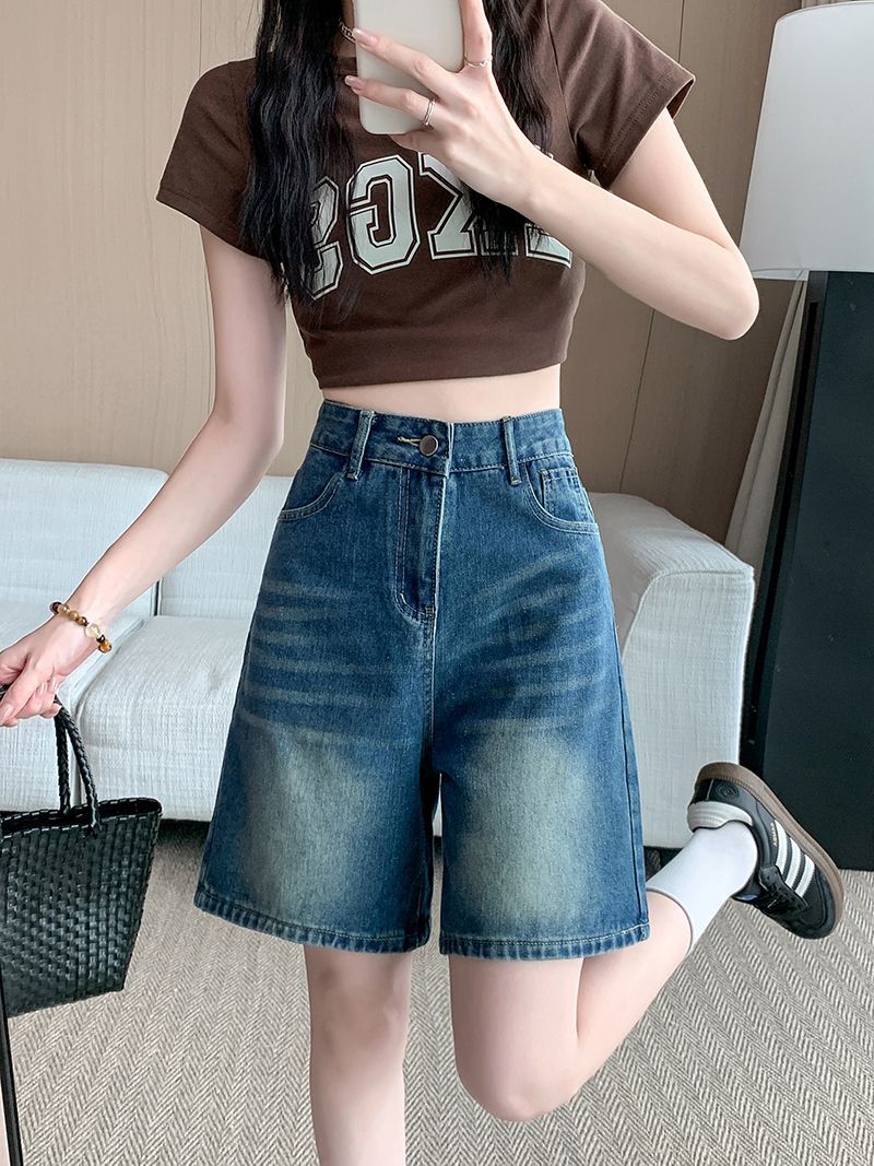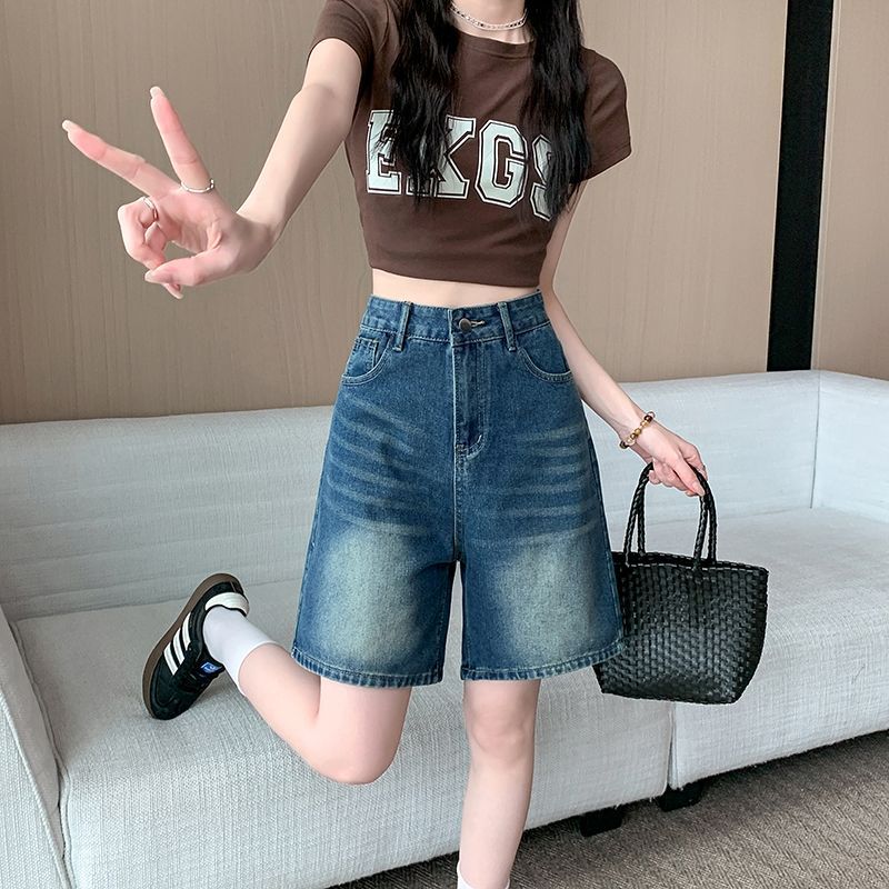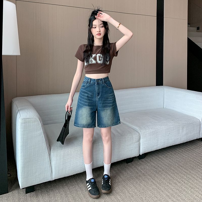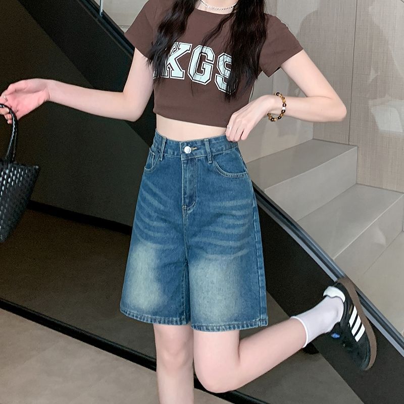 夏季新款五分直筒牛仔短褲