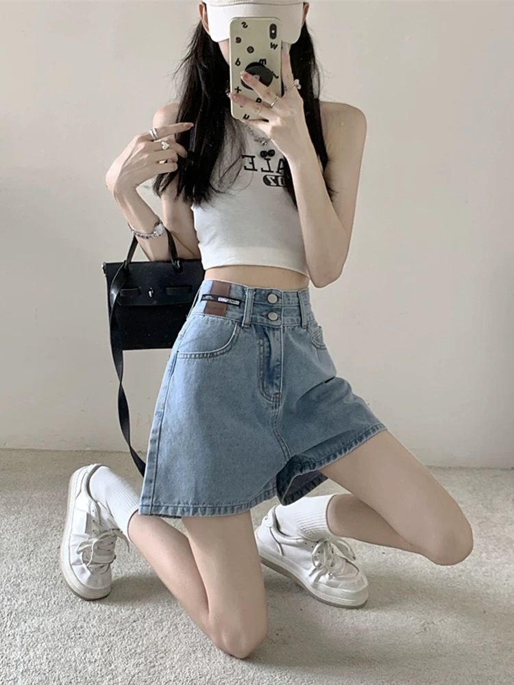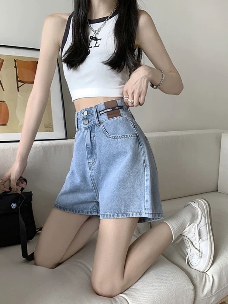 夏季薄款闊腿高腰牛仔短褲(預購)pn003005