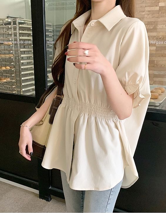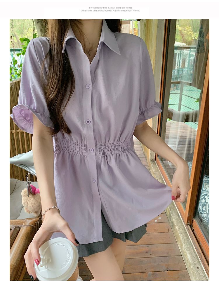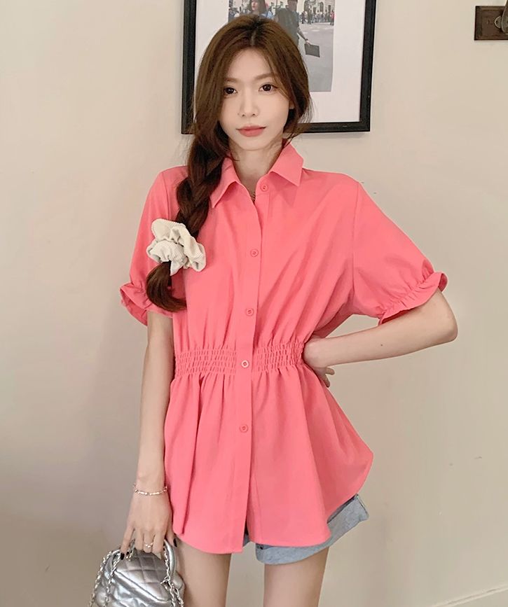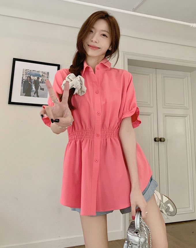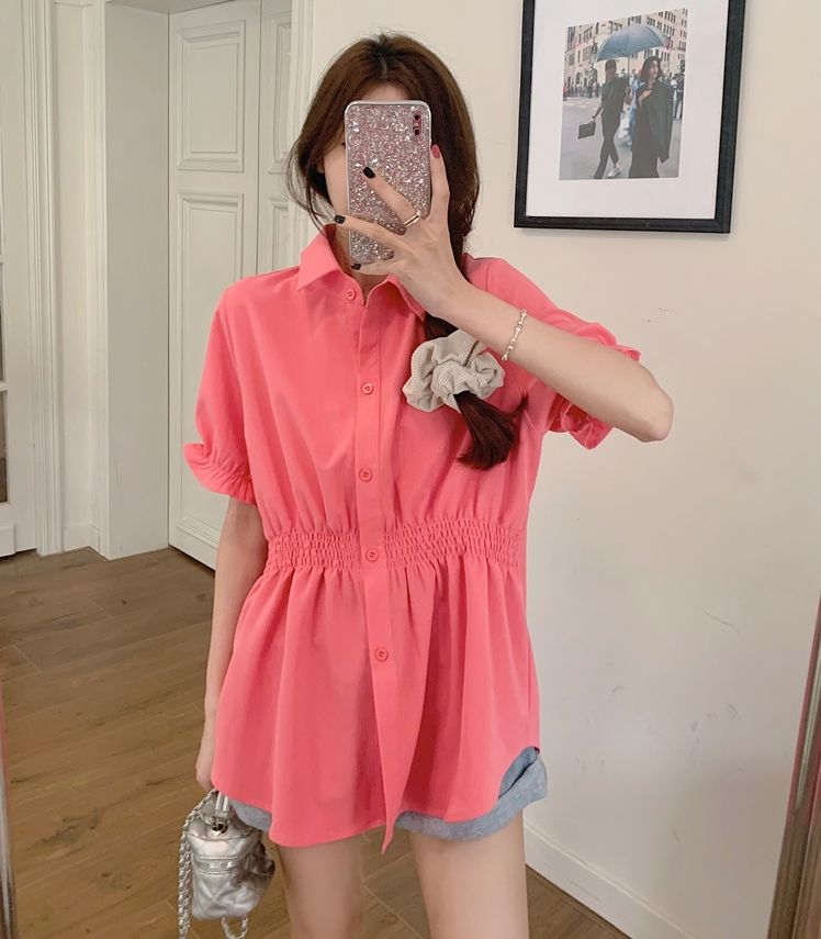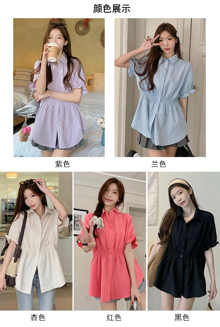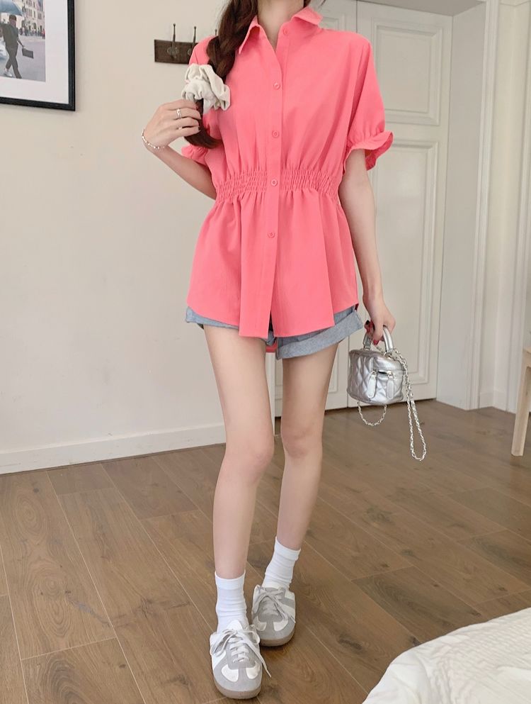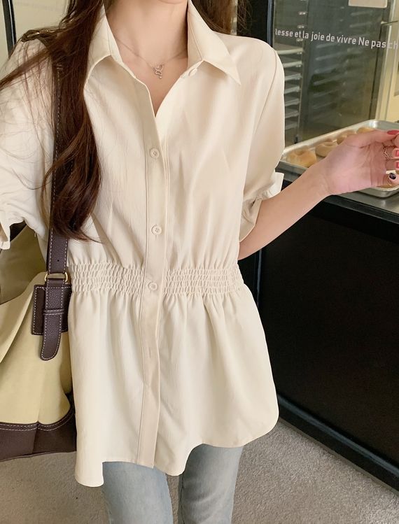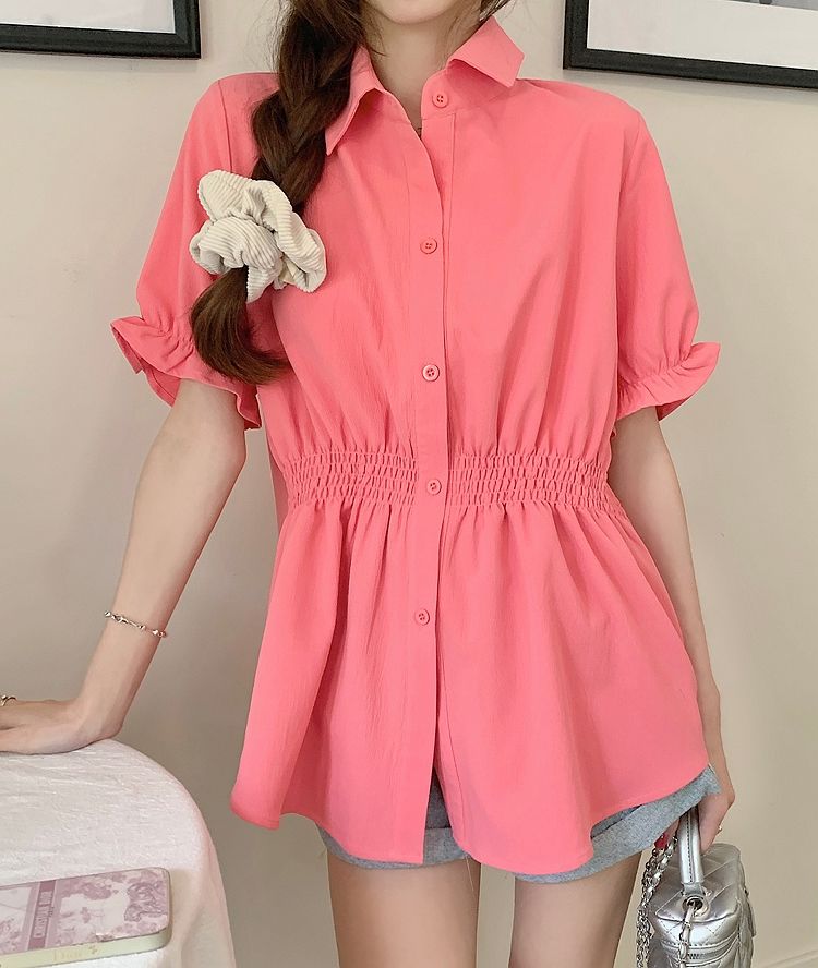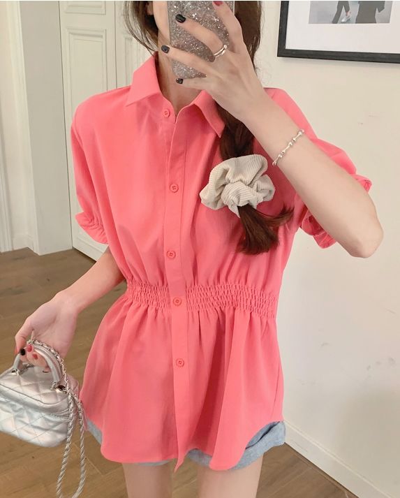 多尺碼收腰純色短袖上衣(預購)vic005203