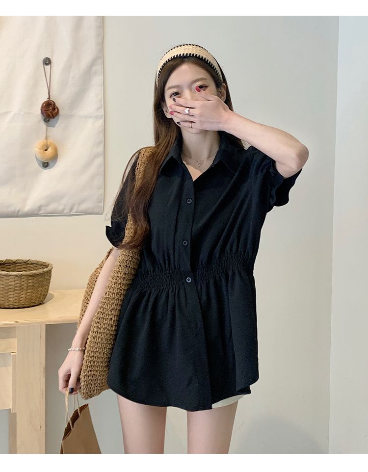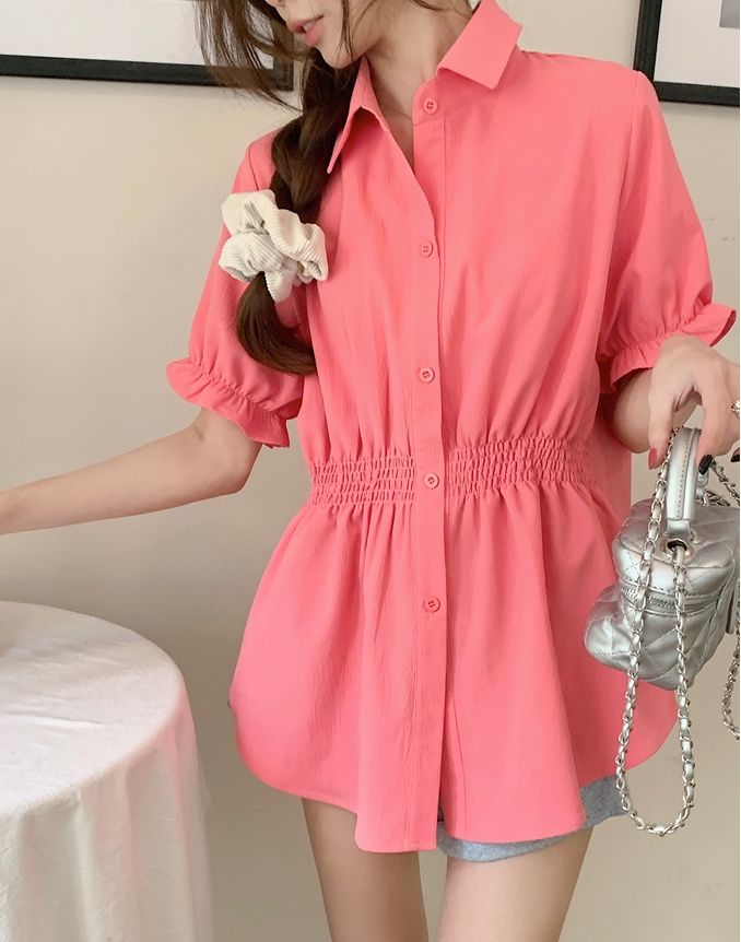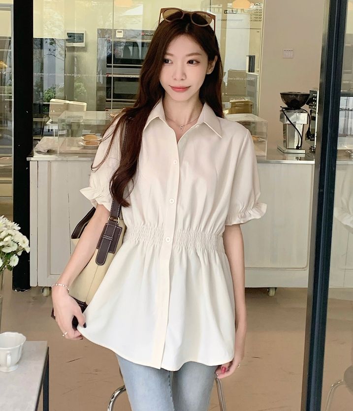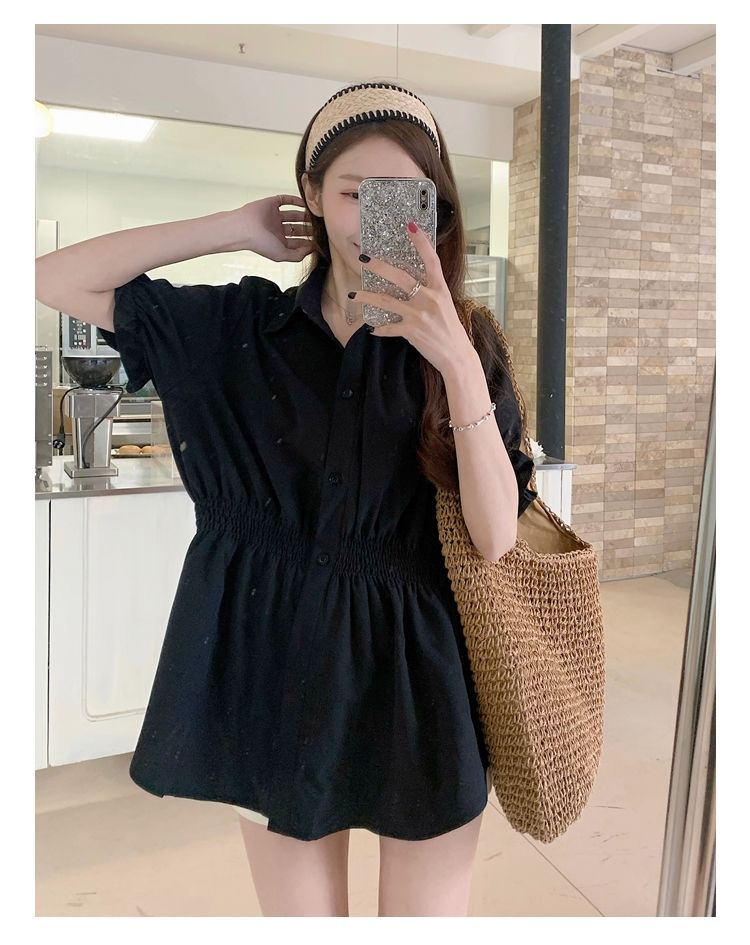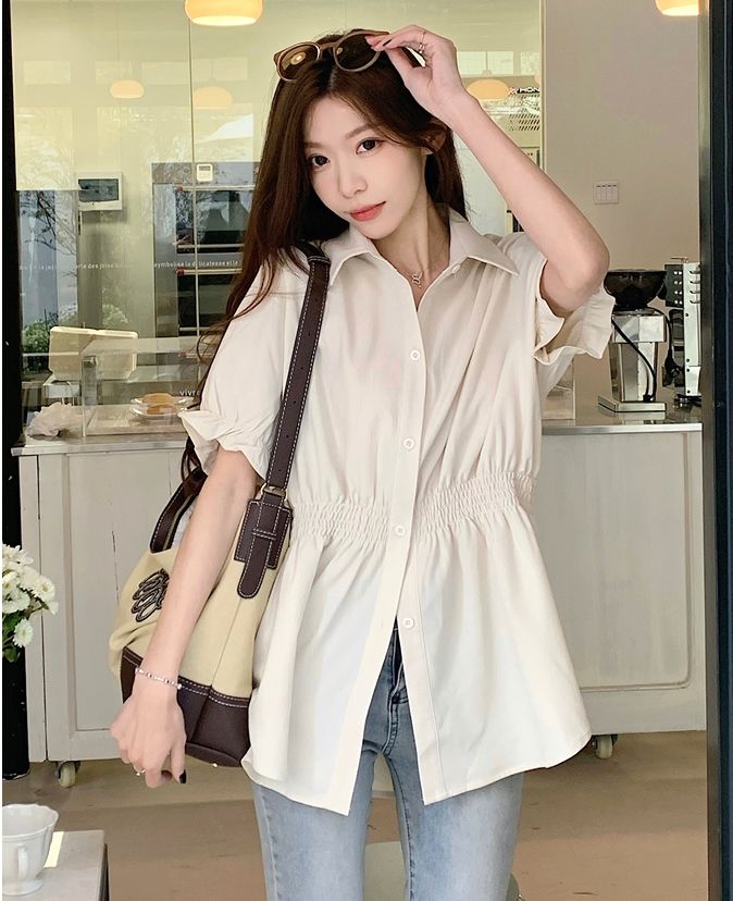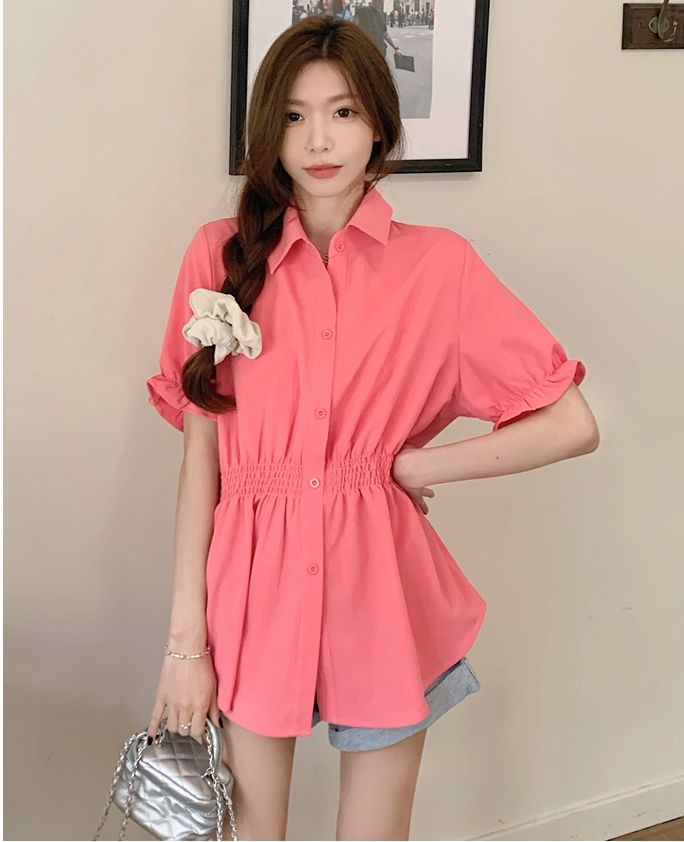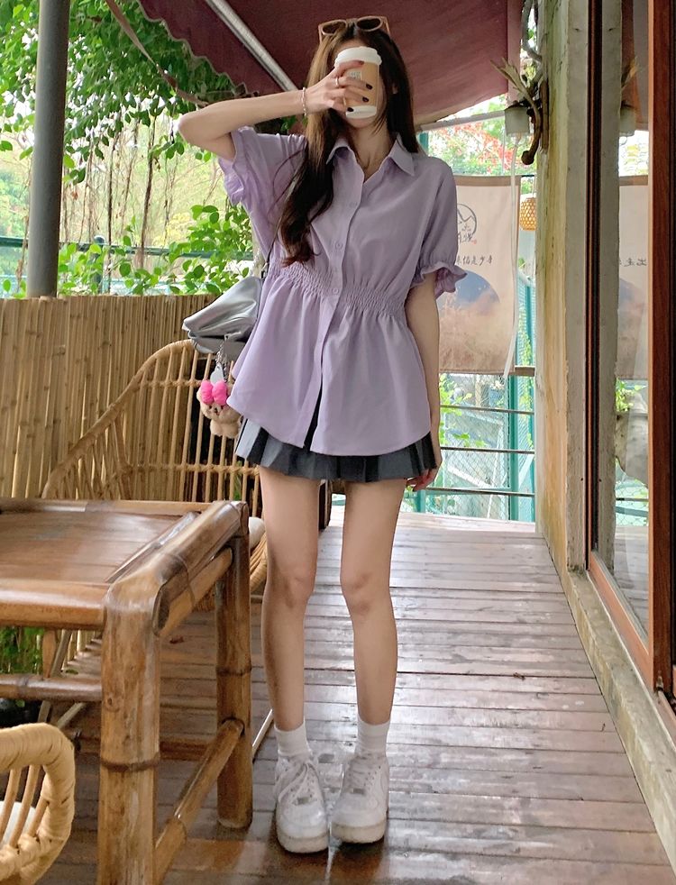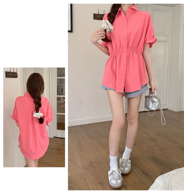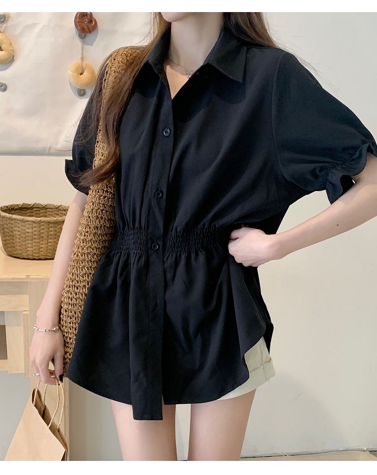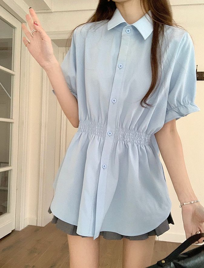 多尺碼收腰純色短袖上衣(預購)vic005203