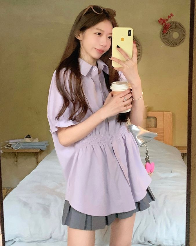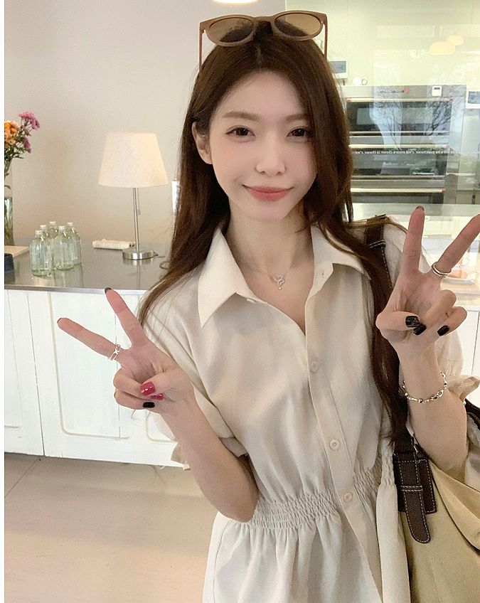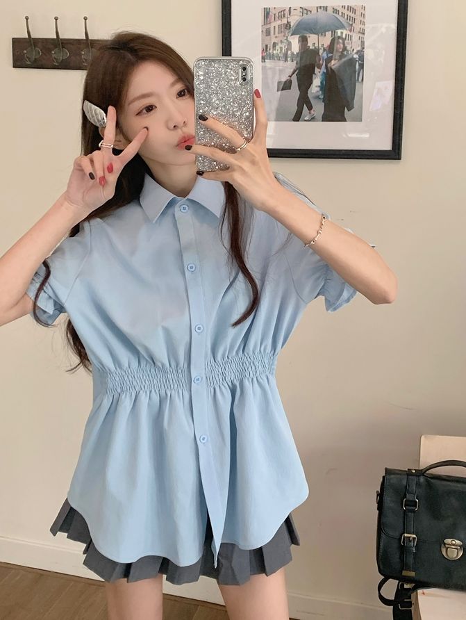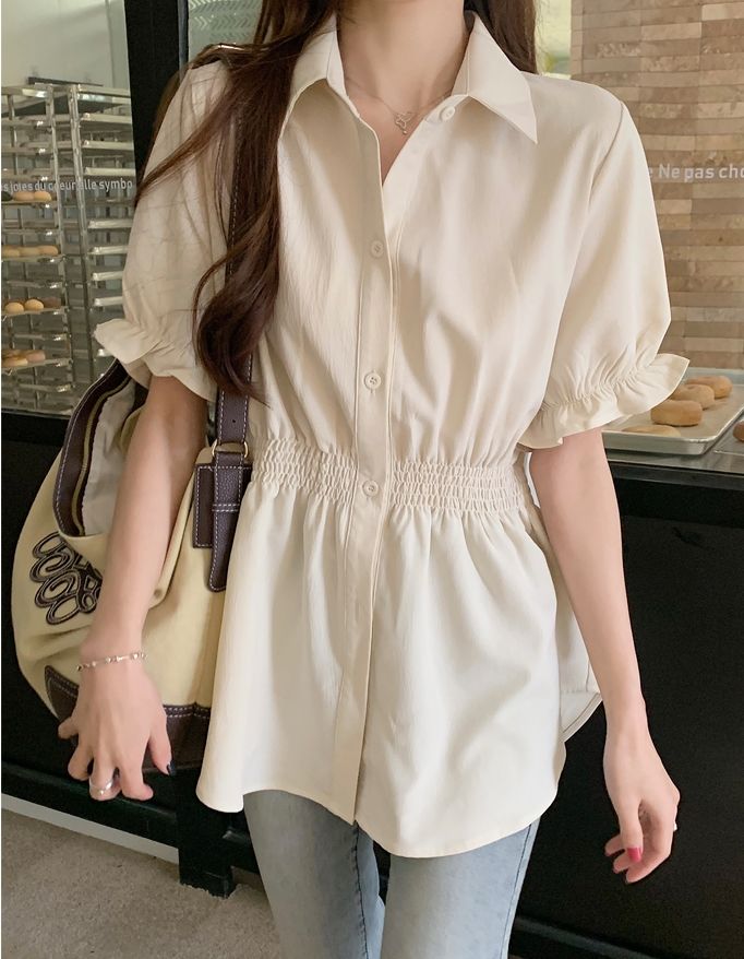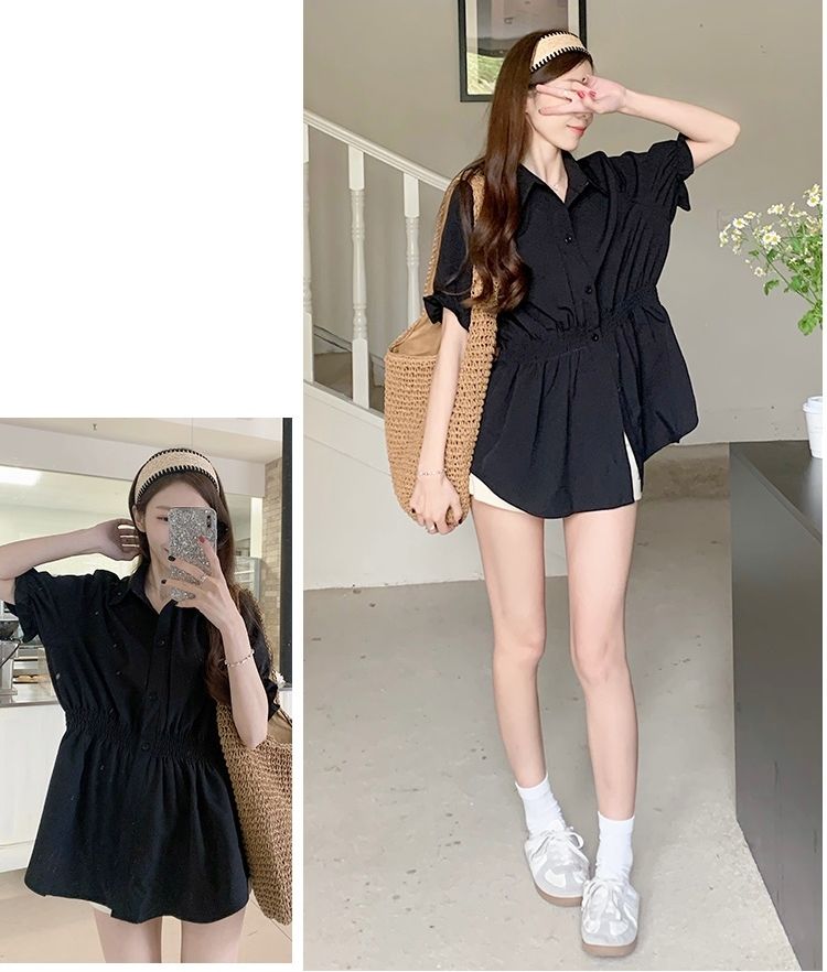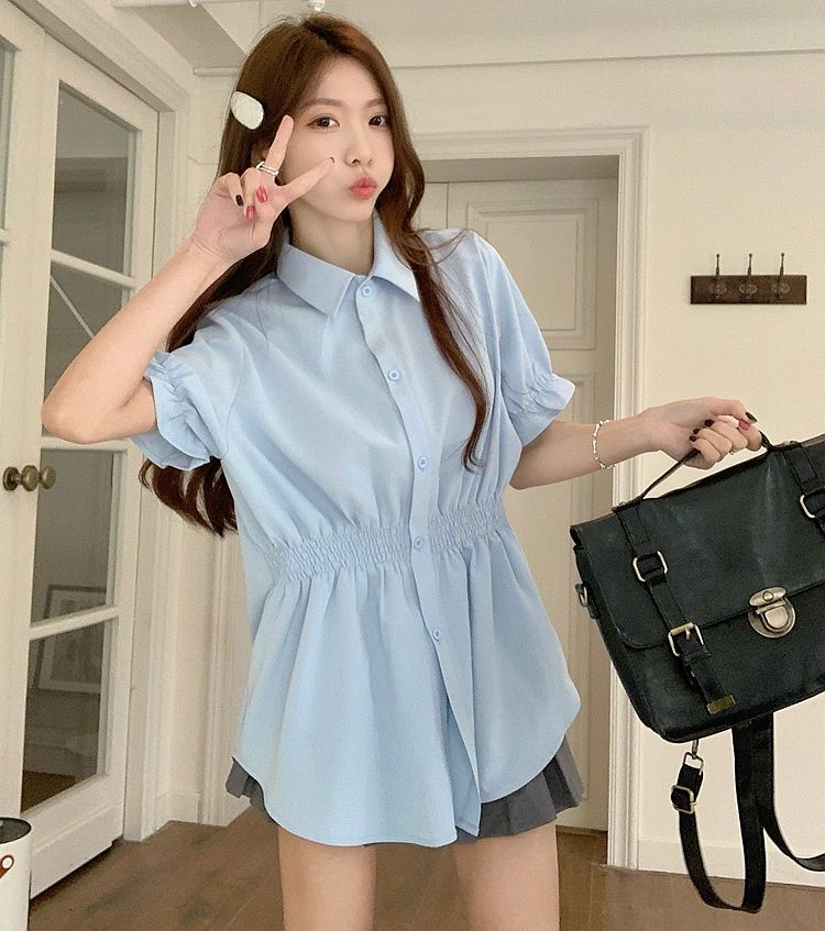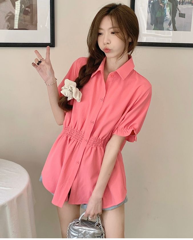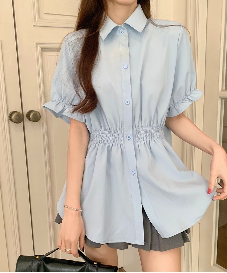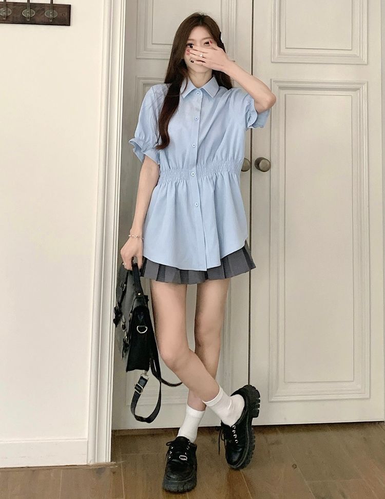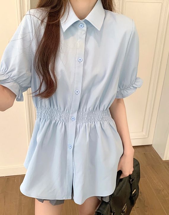 多尺碼收腰純色短袖上衣(預購)vic005203