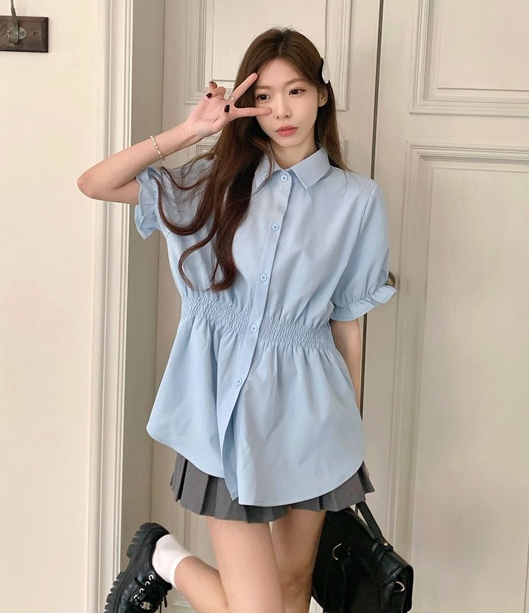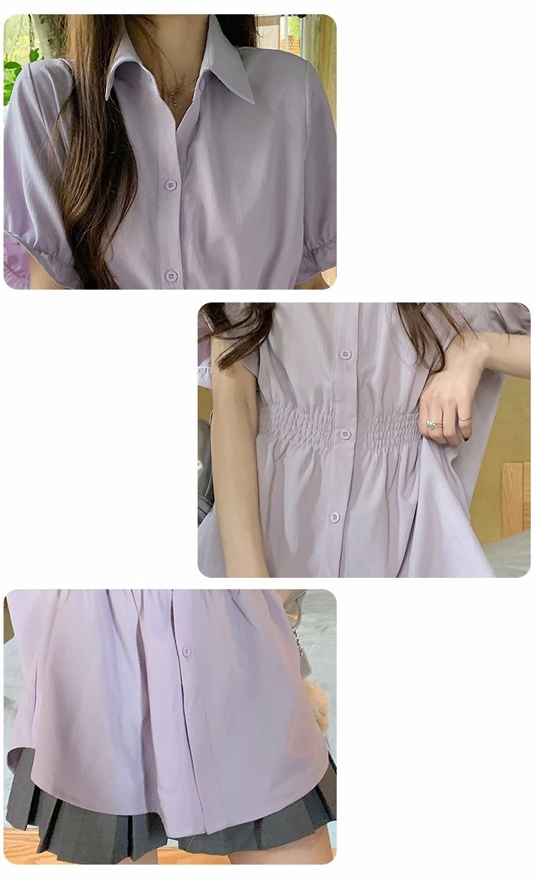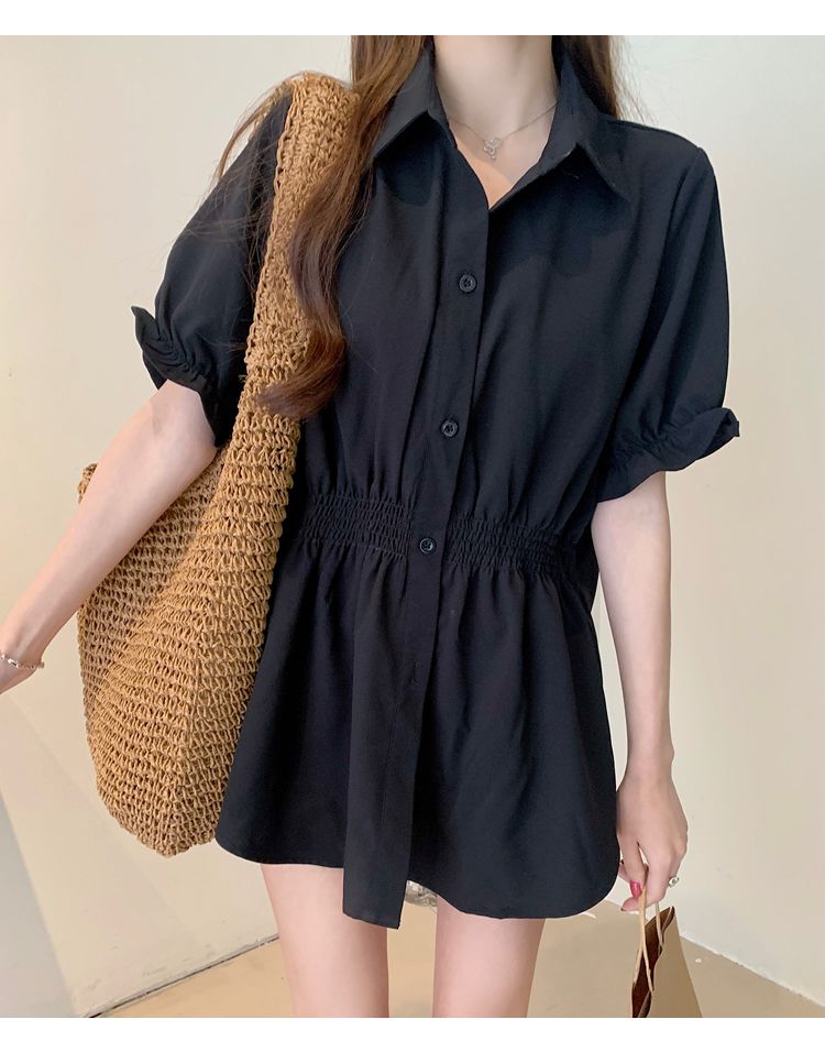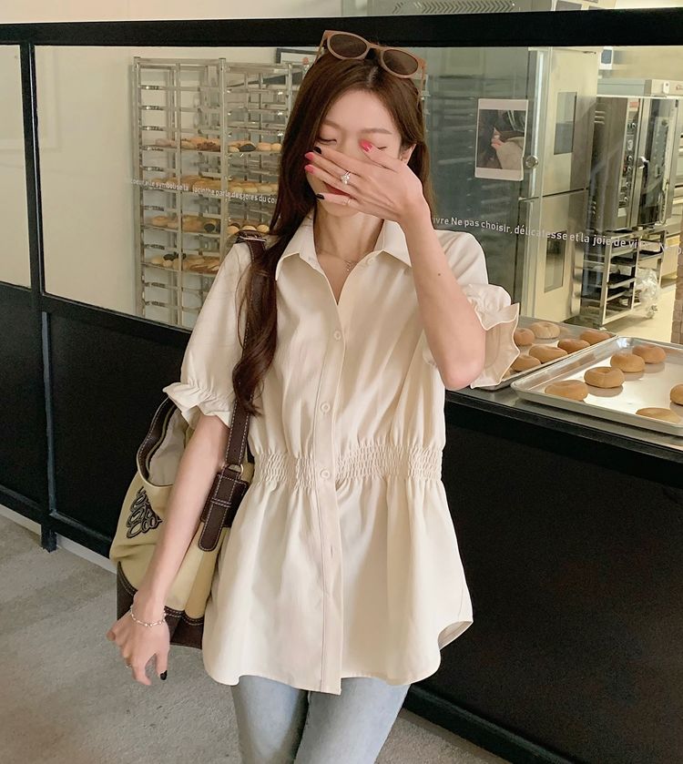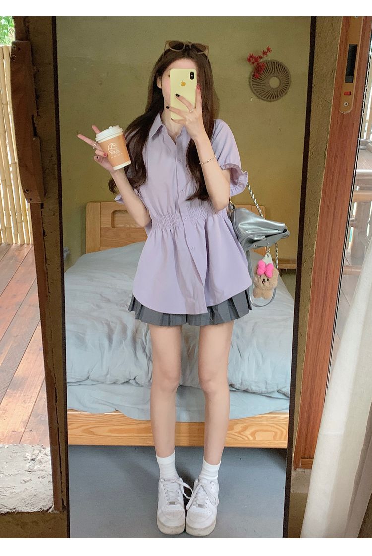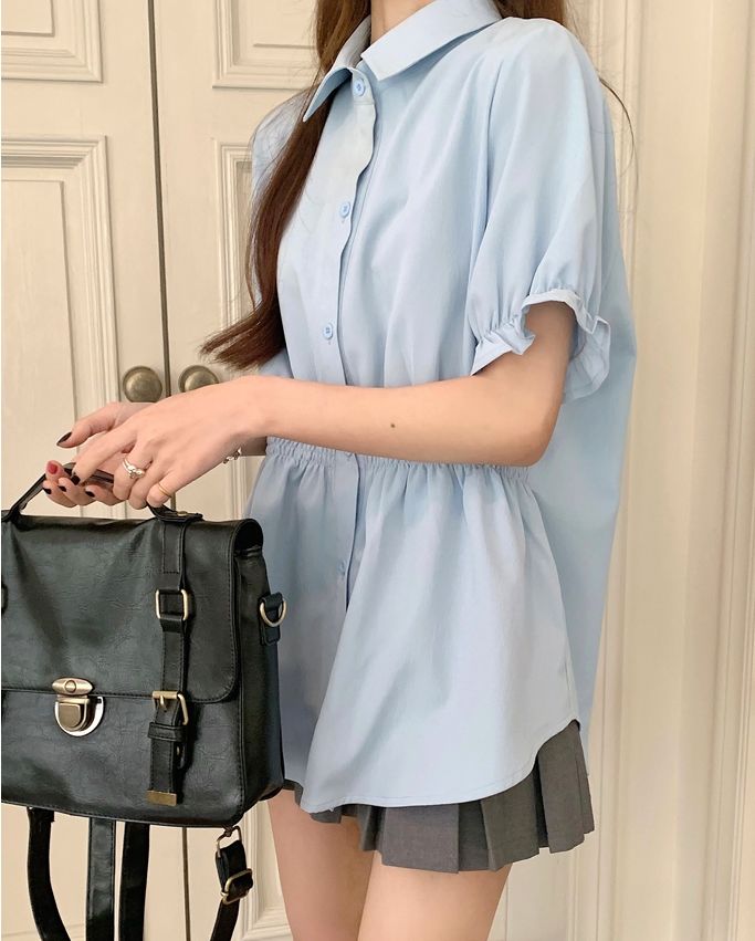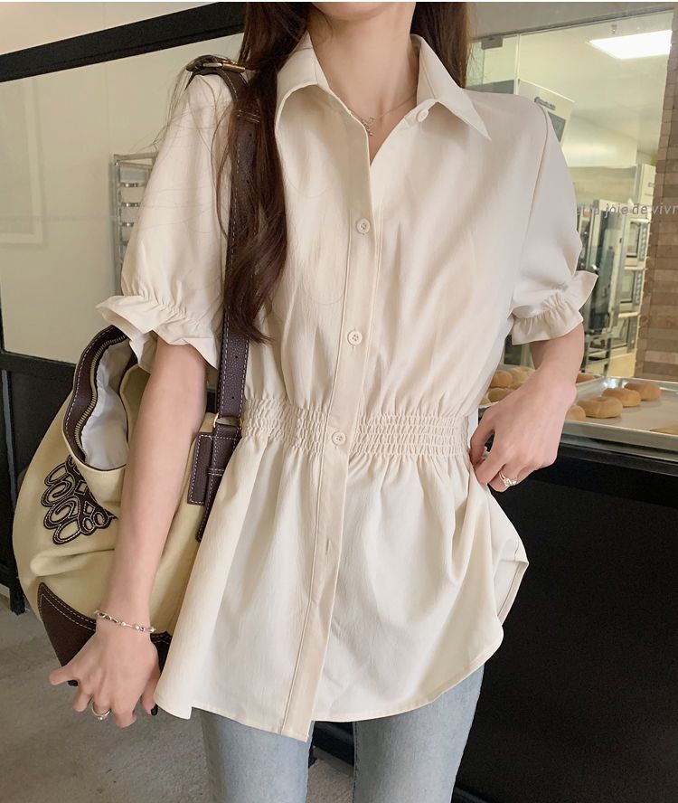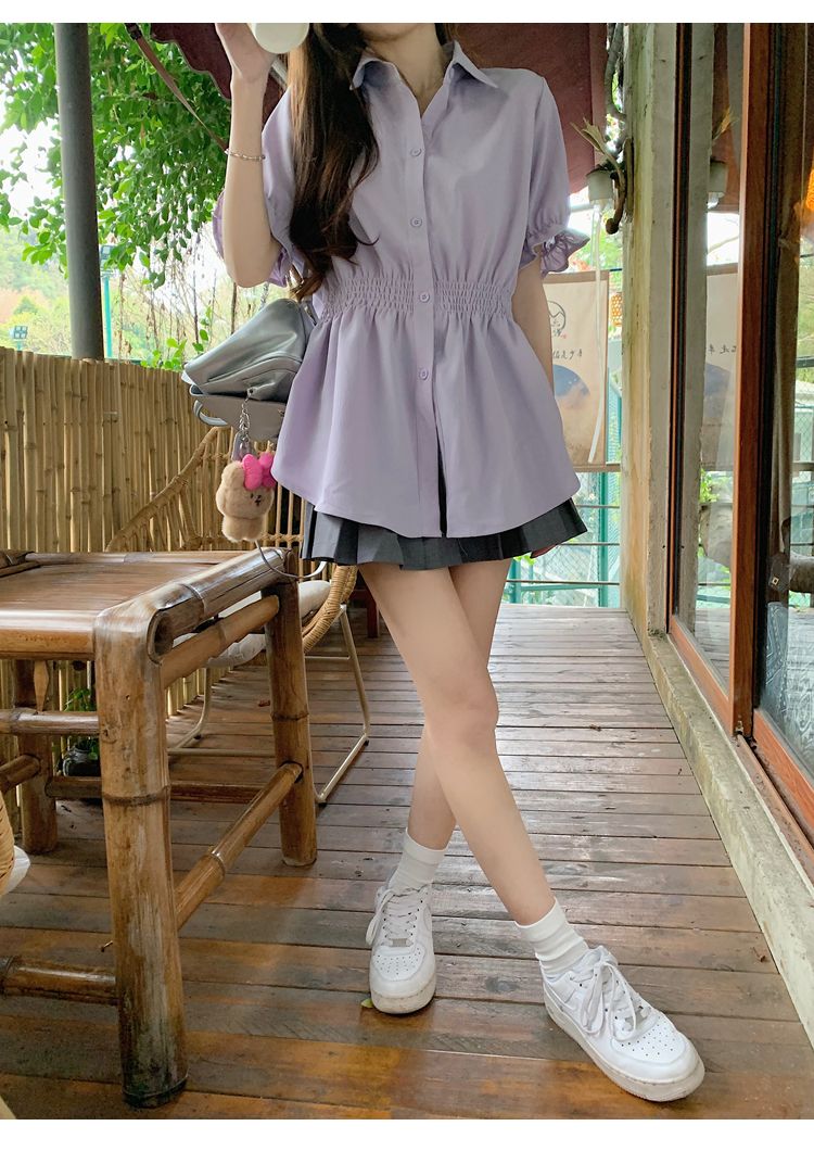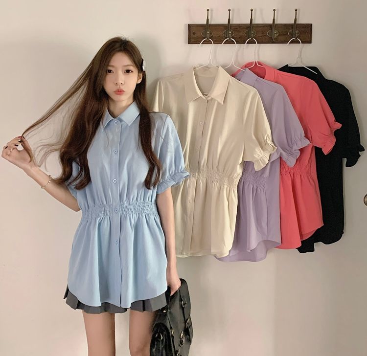 多尺碼收腰純色短袖上衣(預購)vic005203