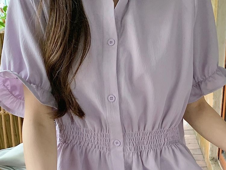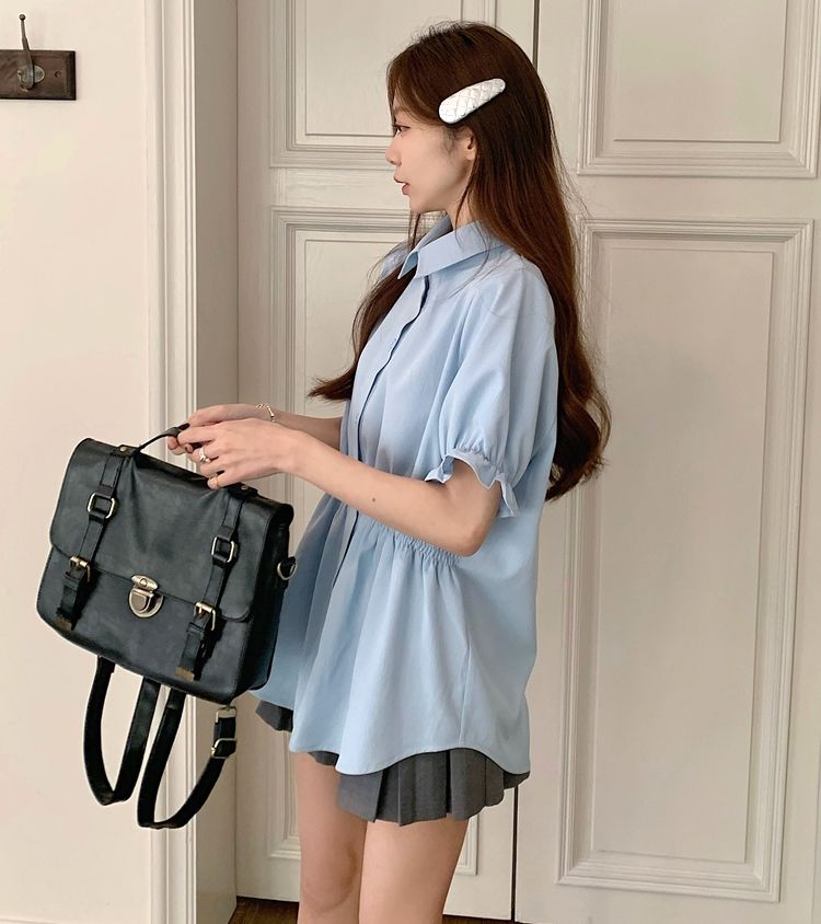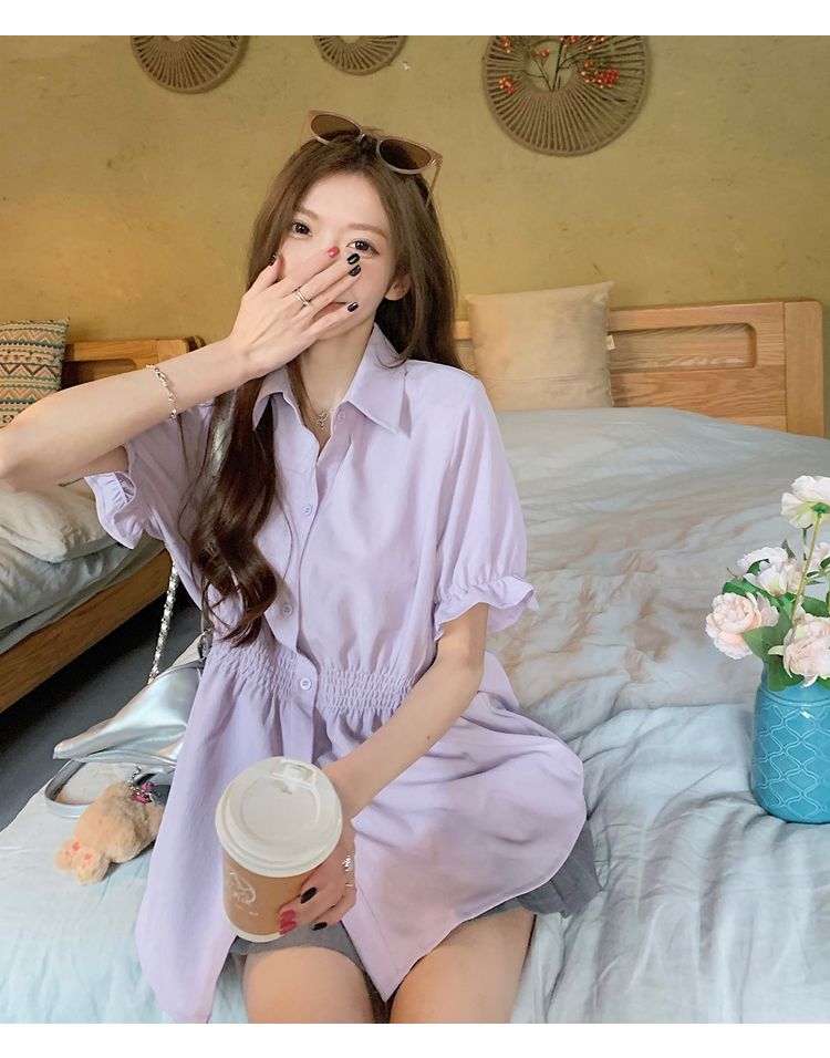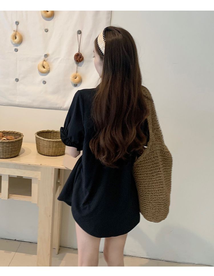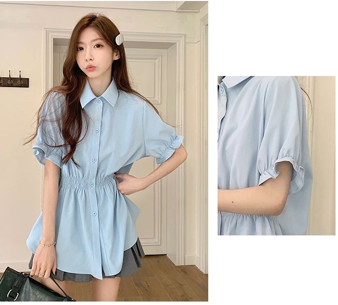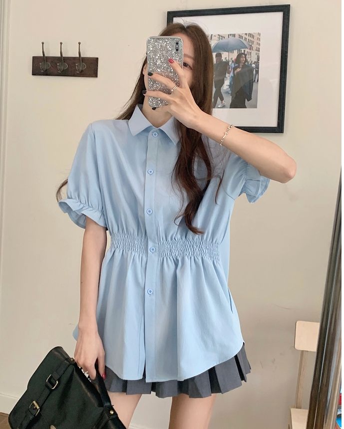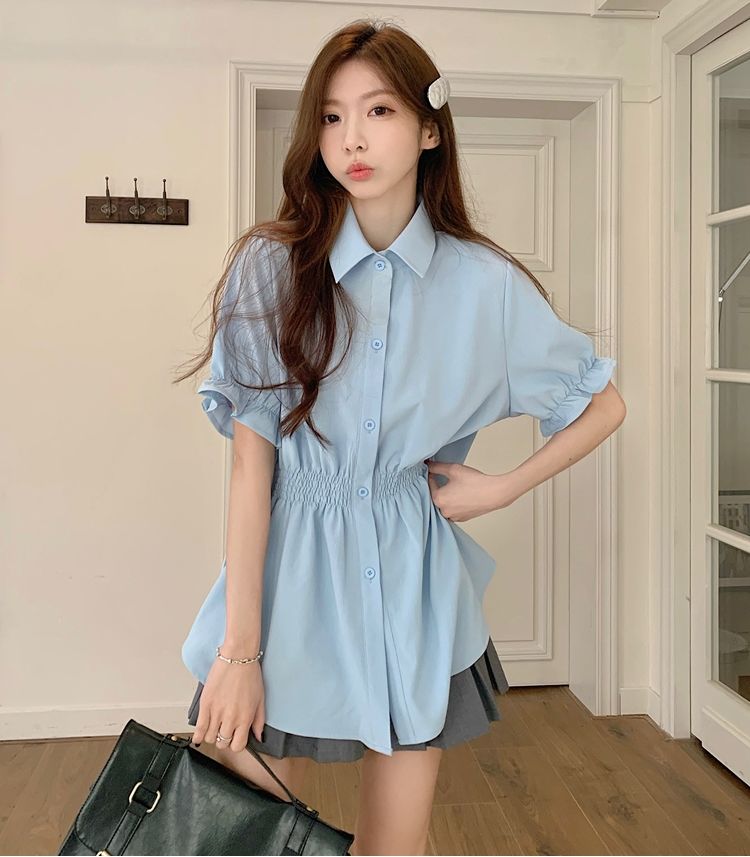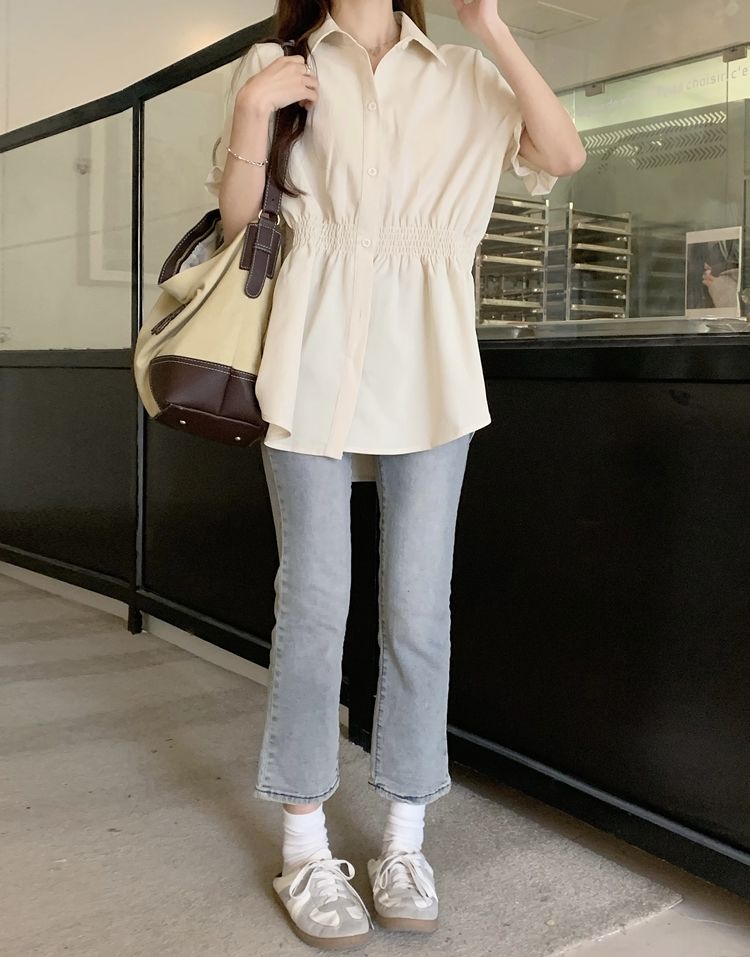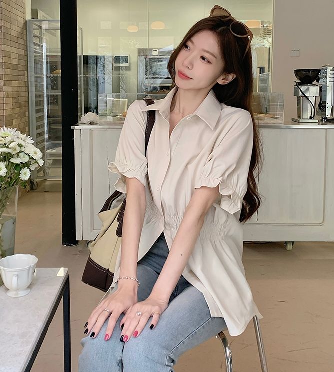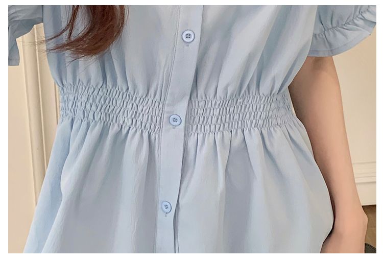 多尺碼收腰純色短袖上衣(預購)vic005203