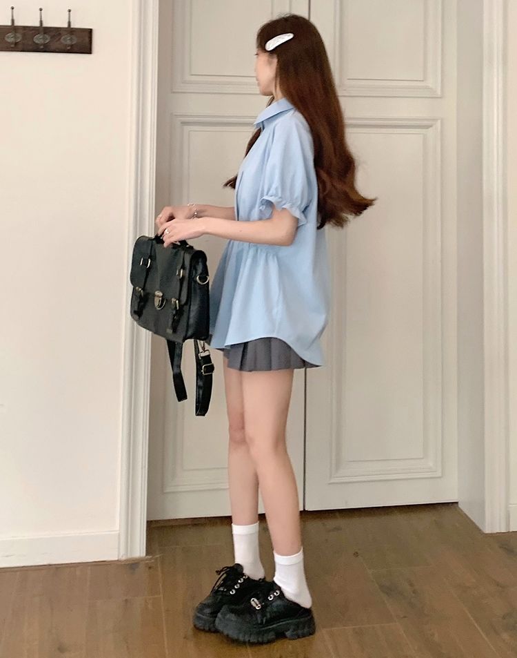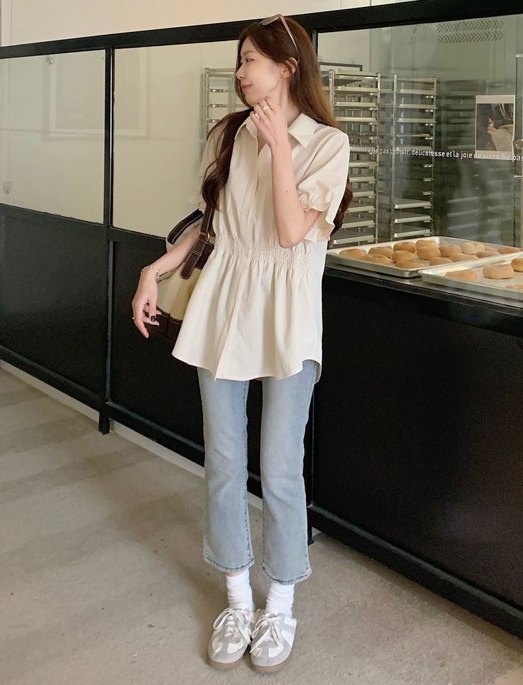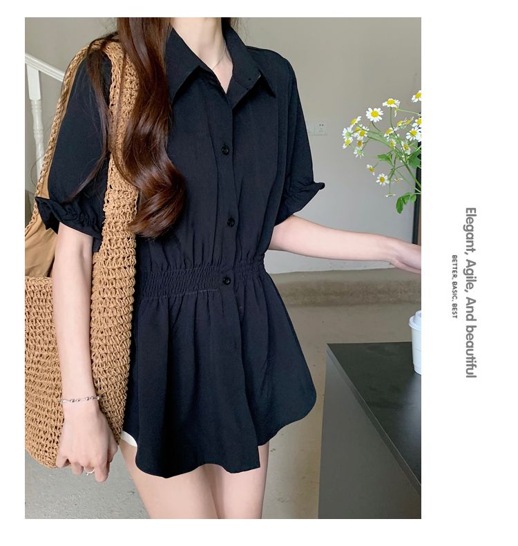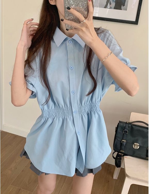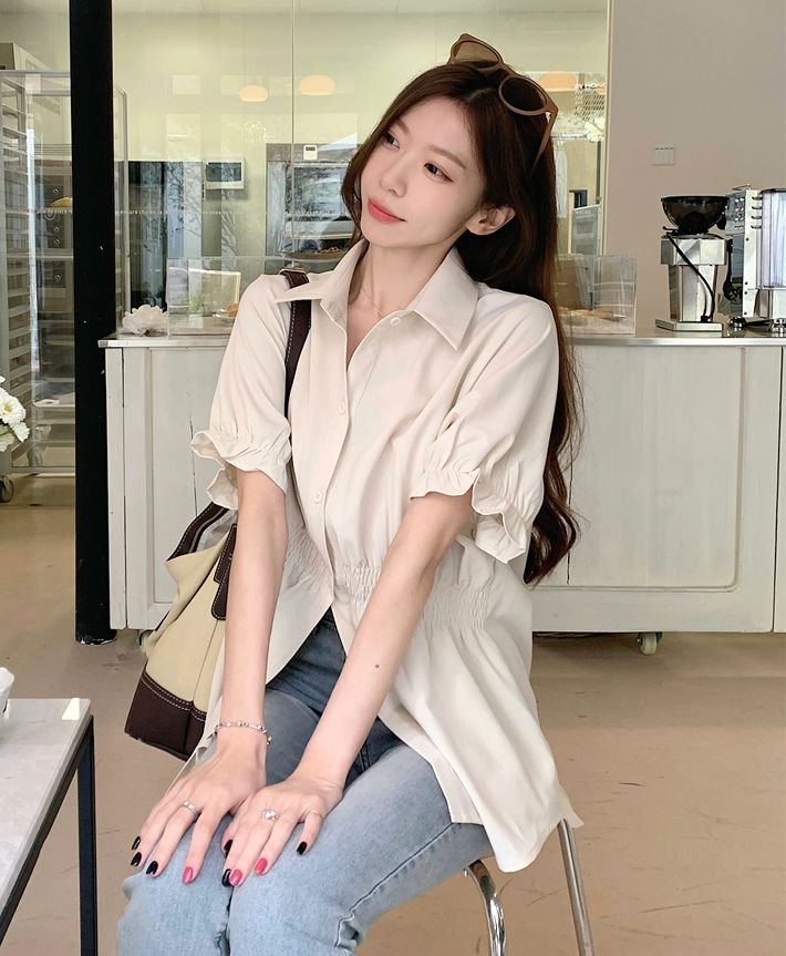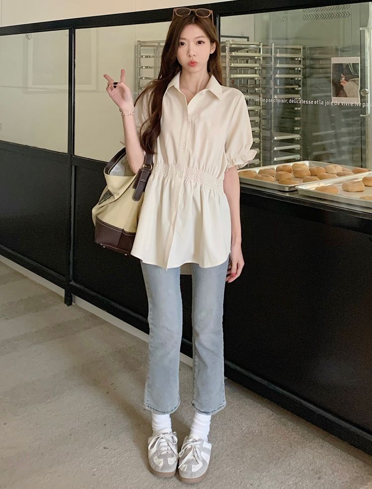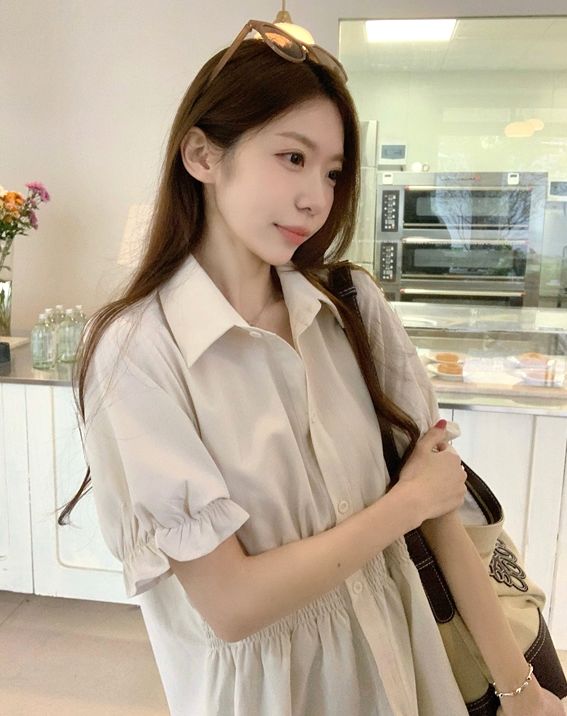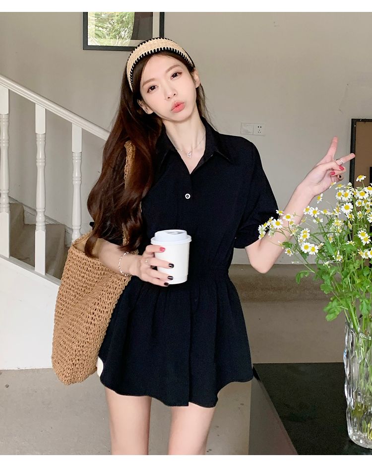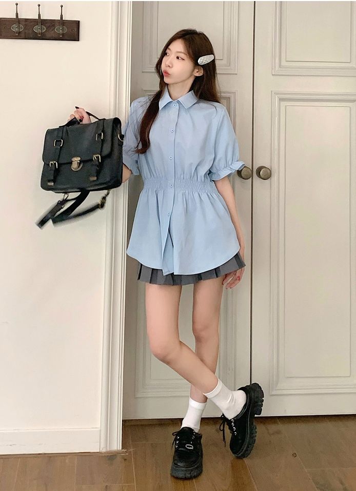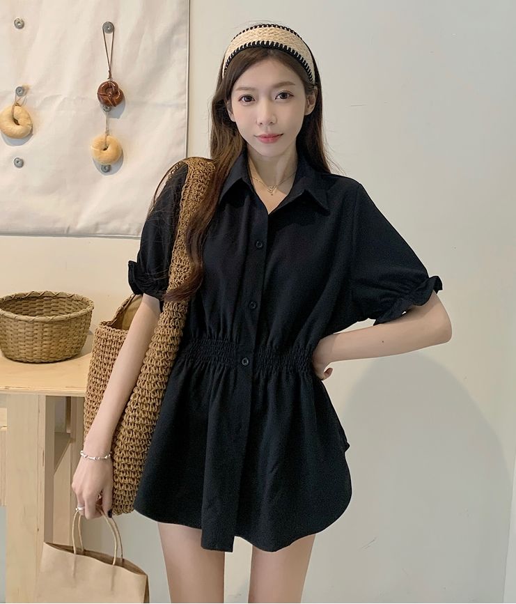 多尺碼收腰純色短袖上衣(預購)vic005203