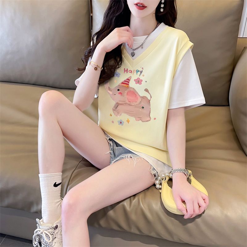 快樂象棉假兩件短袖T恤