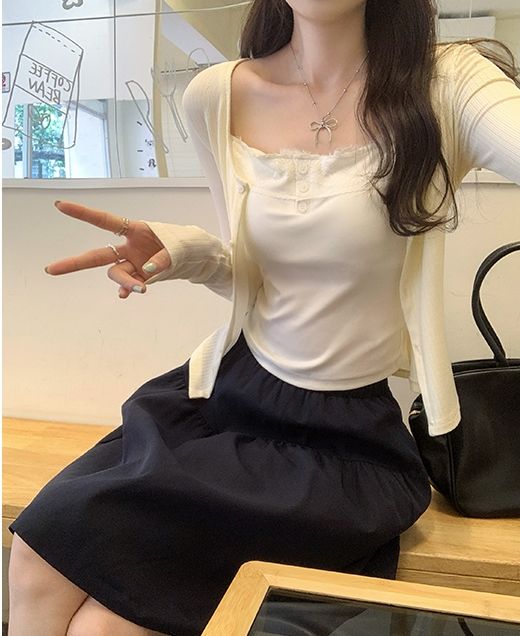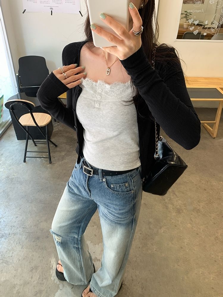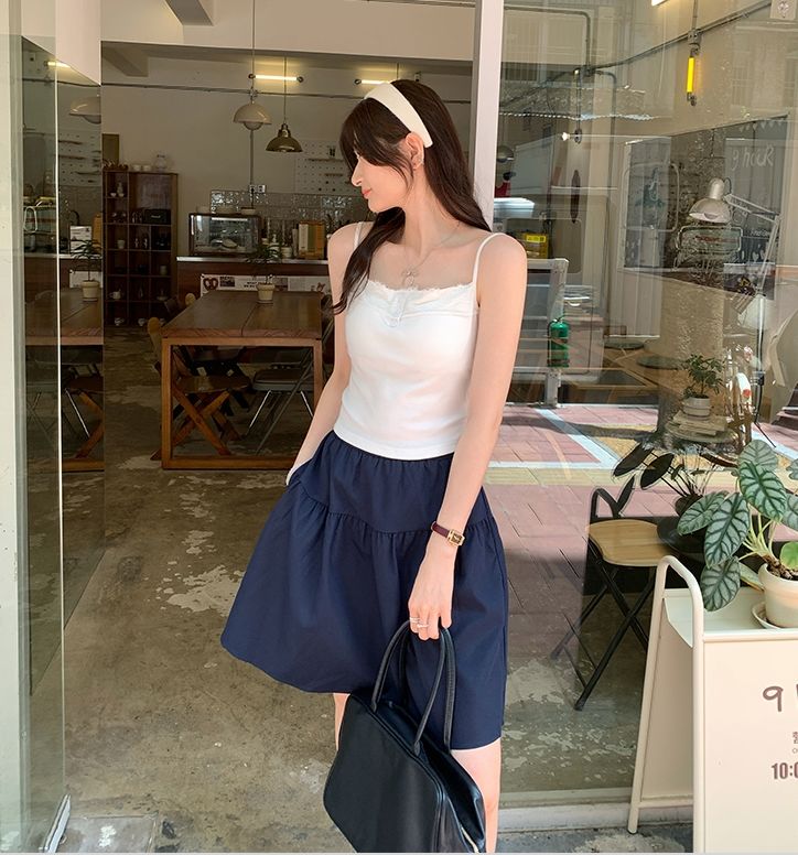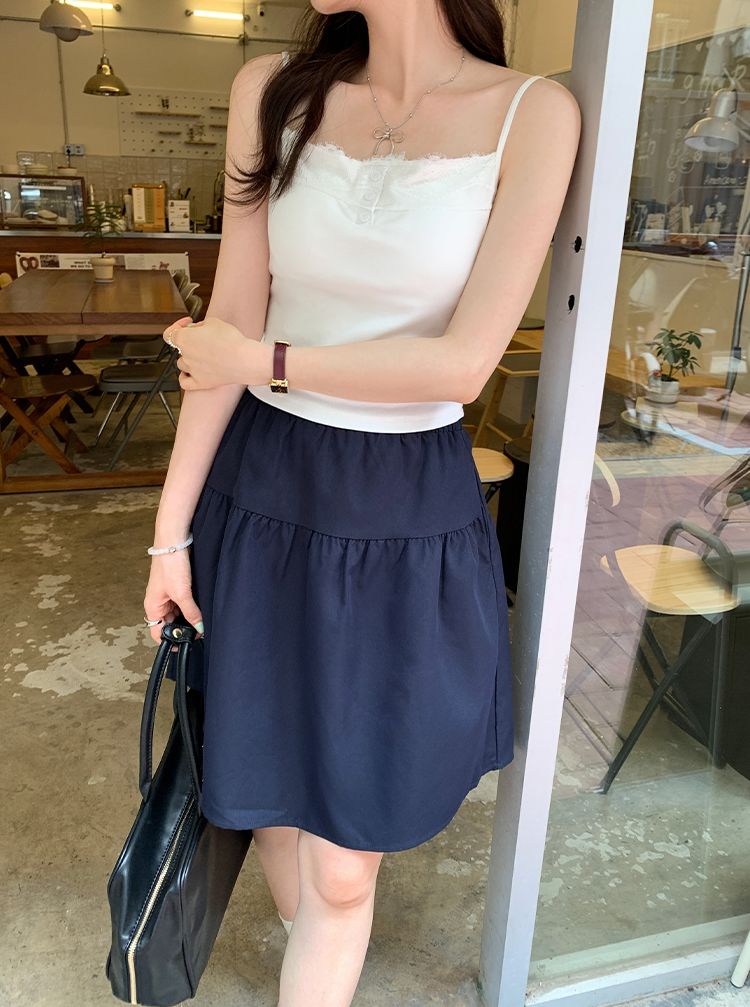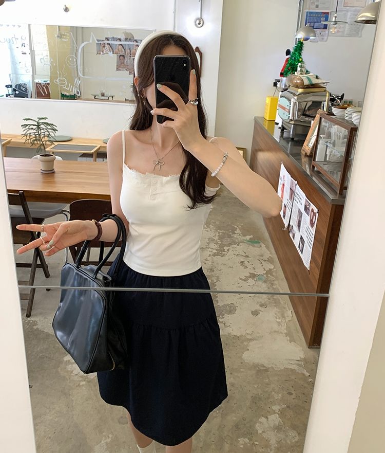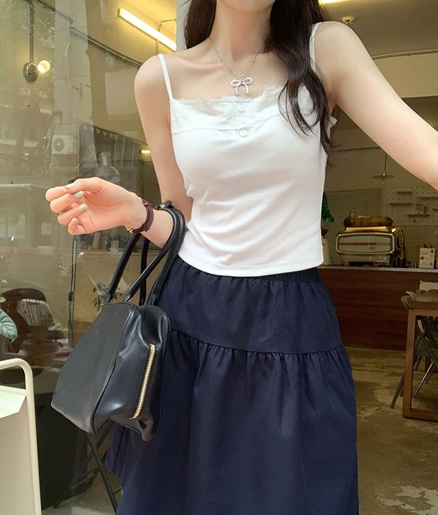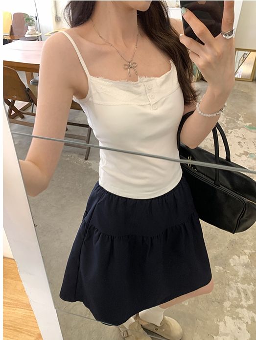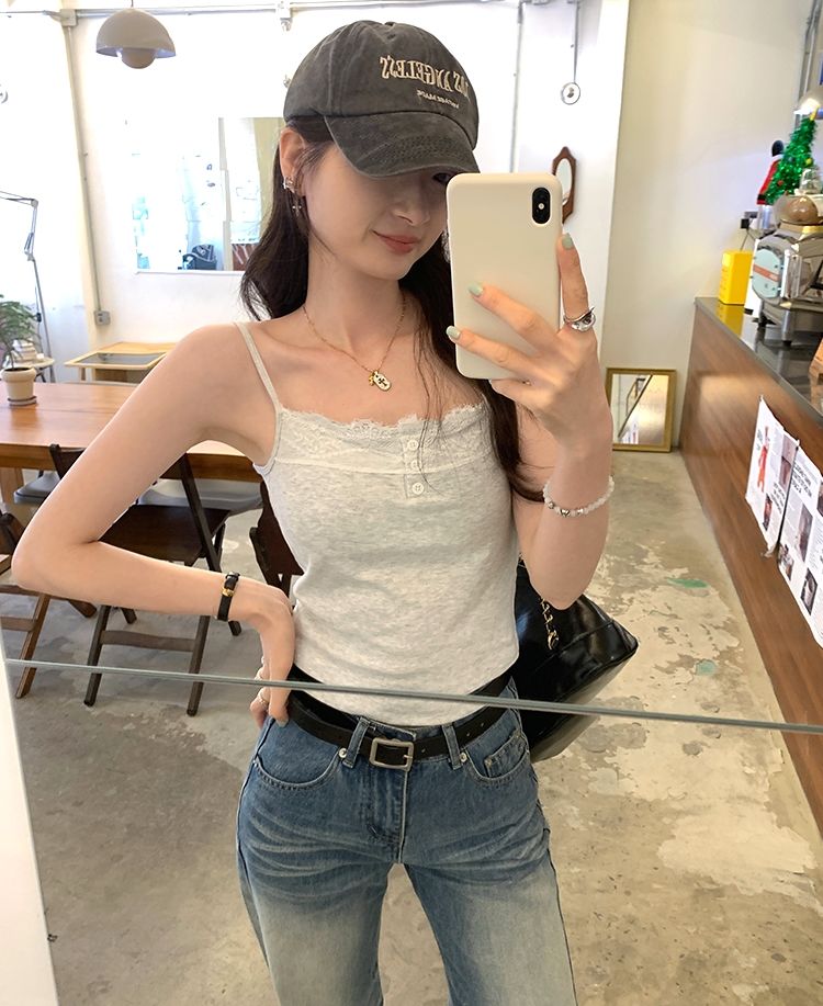 新款帶胸墊蕾絲拼接無袖吊帶背心