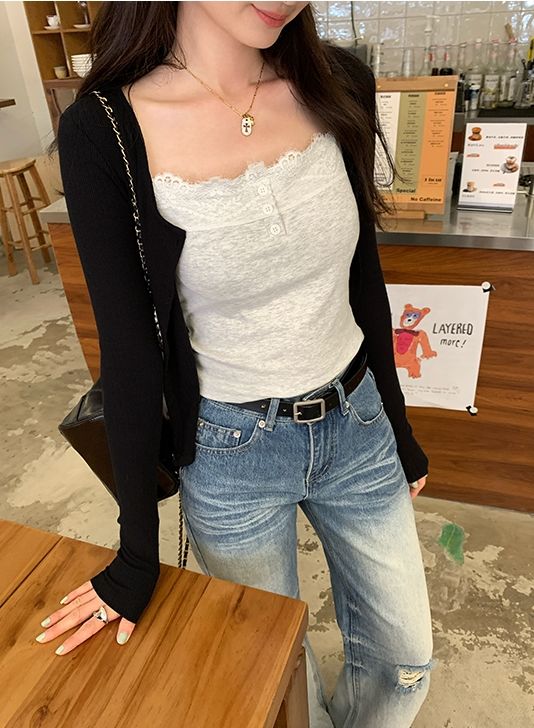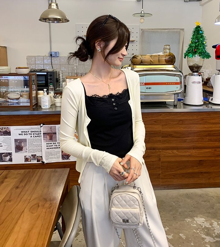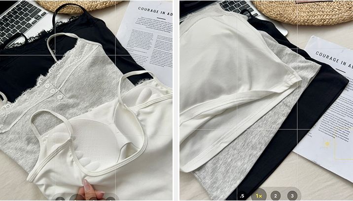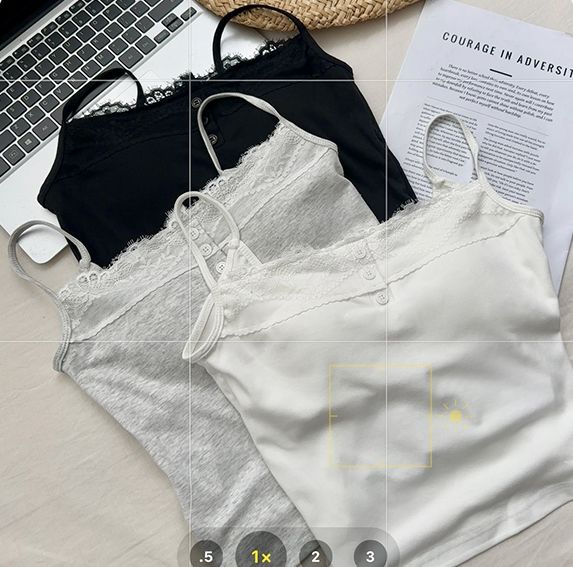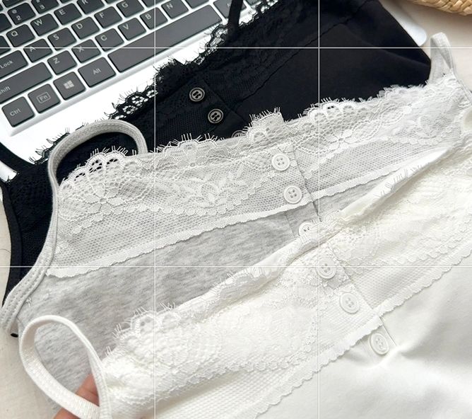 新款帶胸墊蕾絲拼接無袖吊帶背心(預購)vic005388