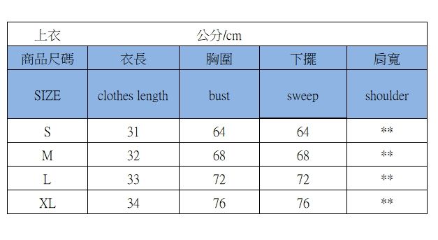 尺寸:S M L XL