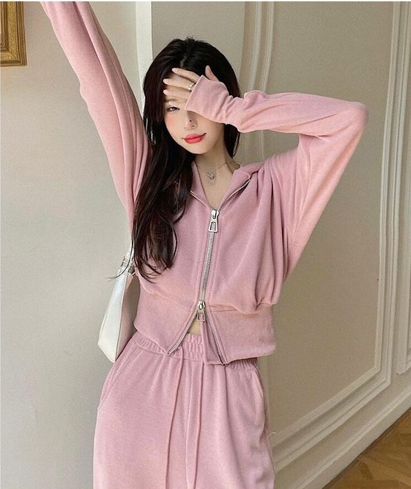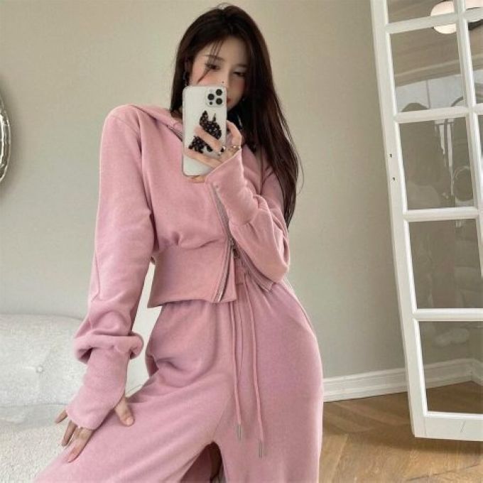 時尚連帽拉鍊外套+運動長褲兩件式套裝(預購)pn003095