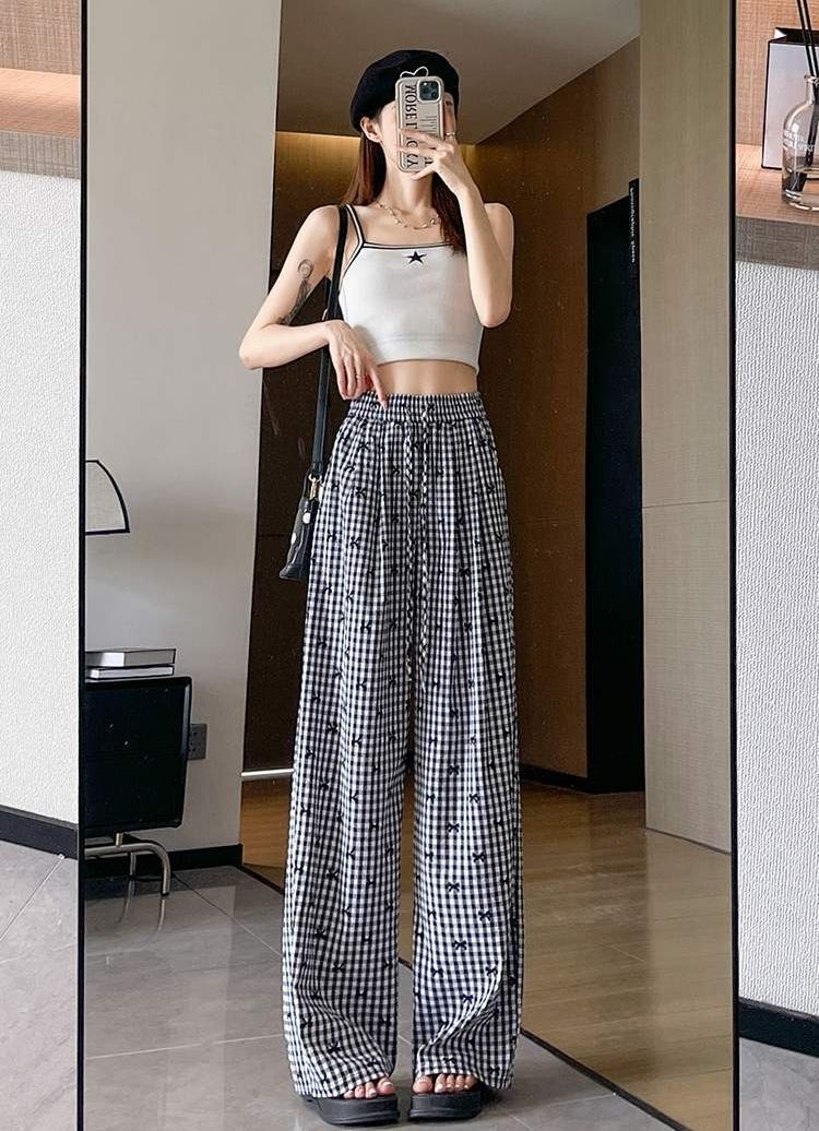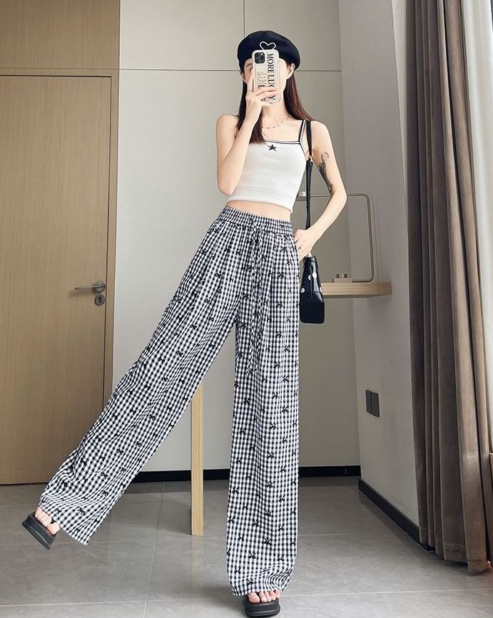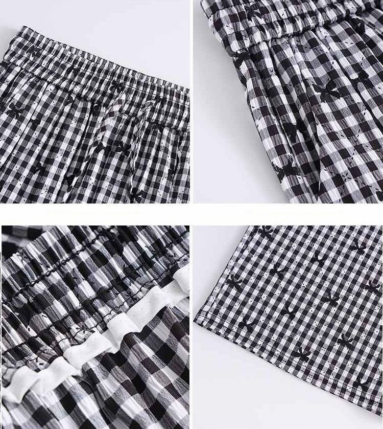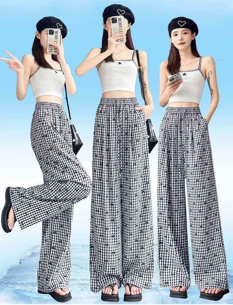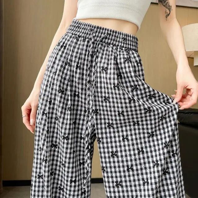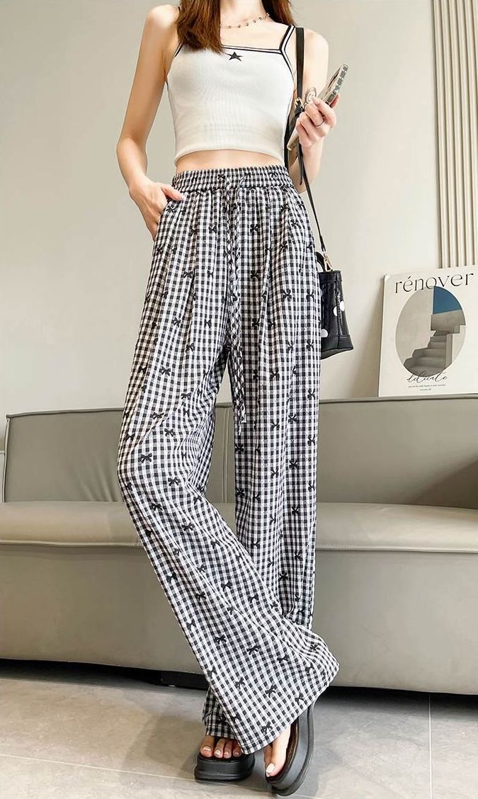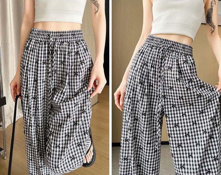 (現貨)pn002806 XL.2XL 蝴蝶結刺繡格子休閒闊腿褲