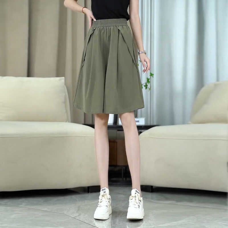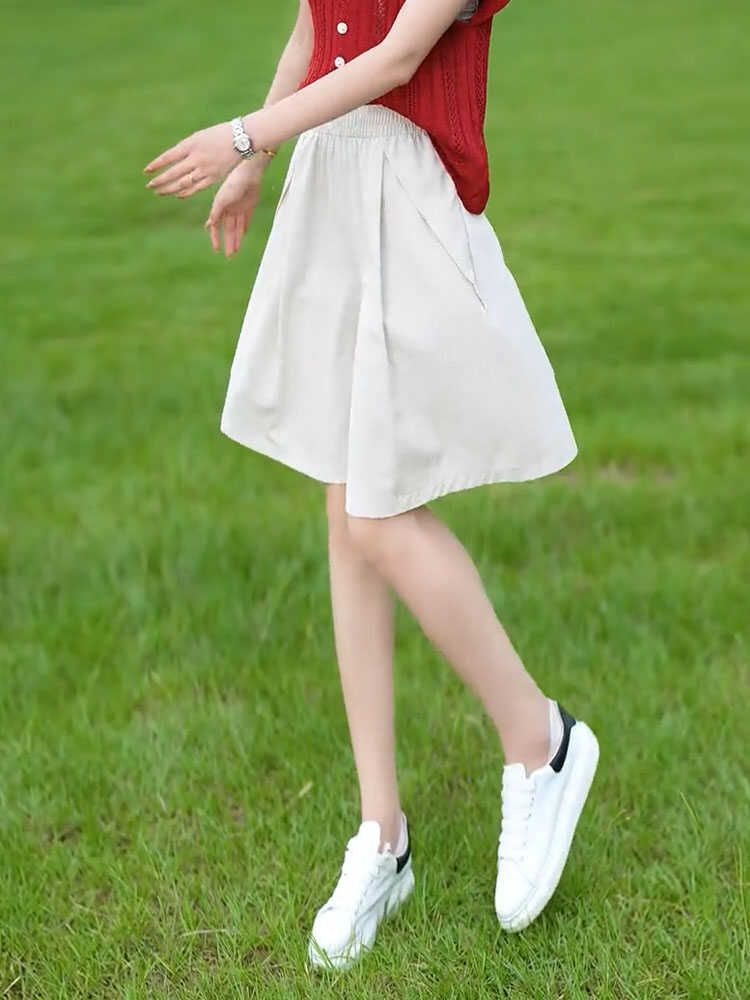 寬鬆大碼冰絲A字闊腿短褲