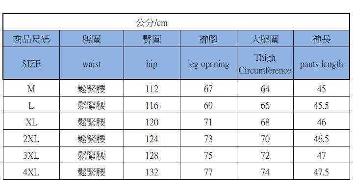 尺寸:M L XL 2XL 3XL 4XL