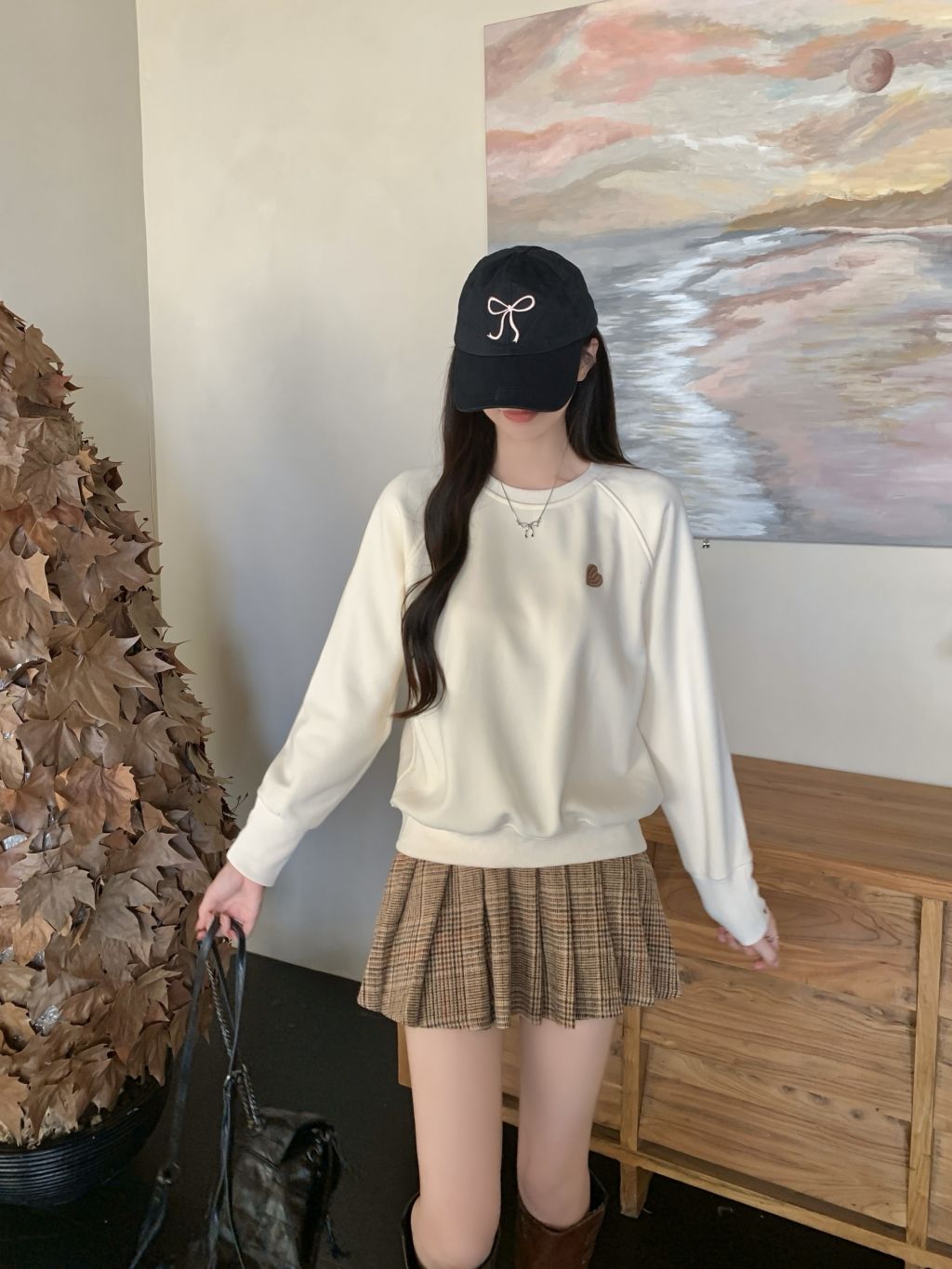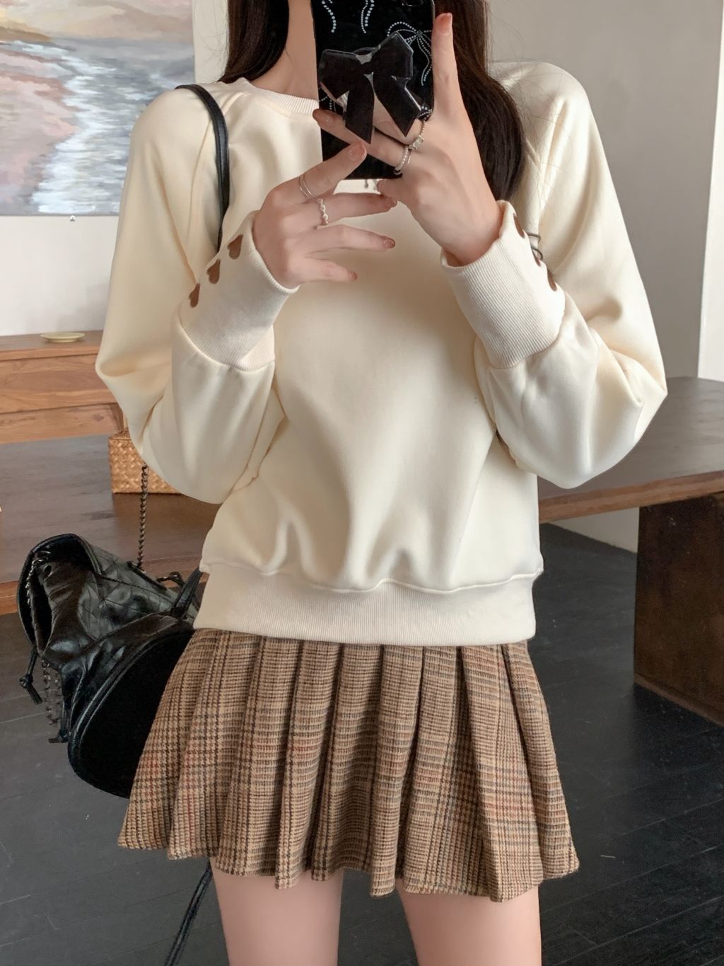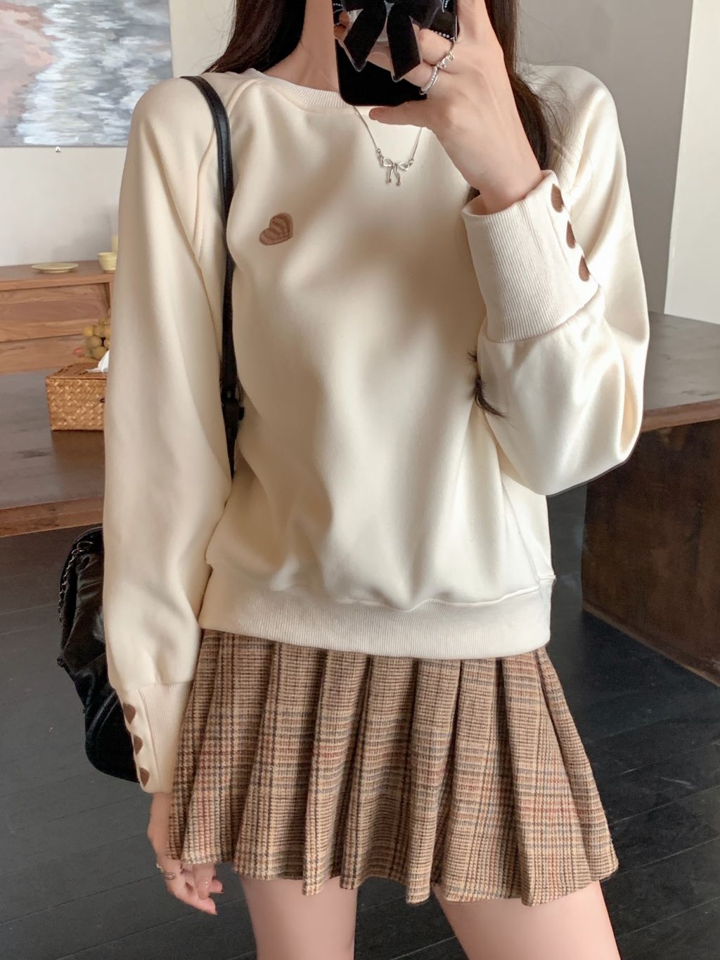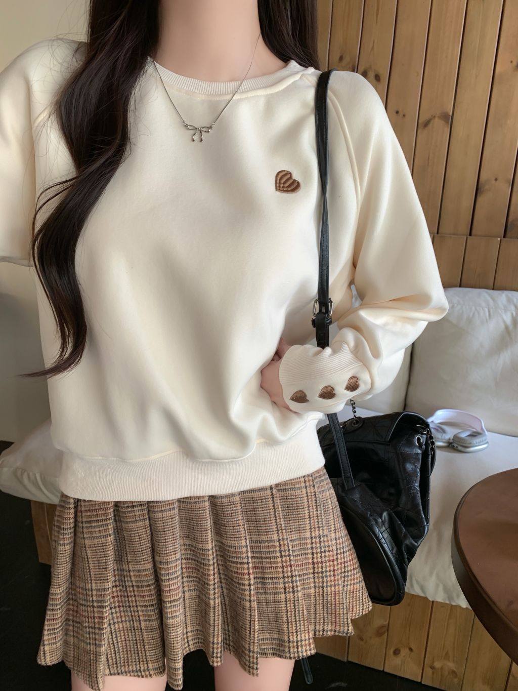 加絨加厚美式圓領刺繡愛心長袖T恤