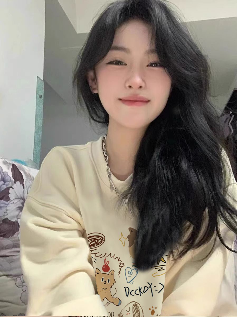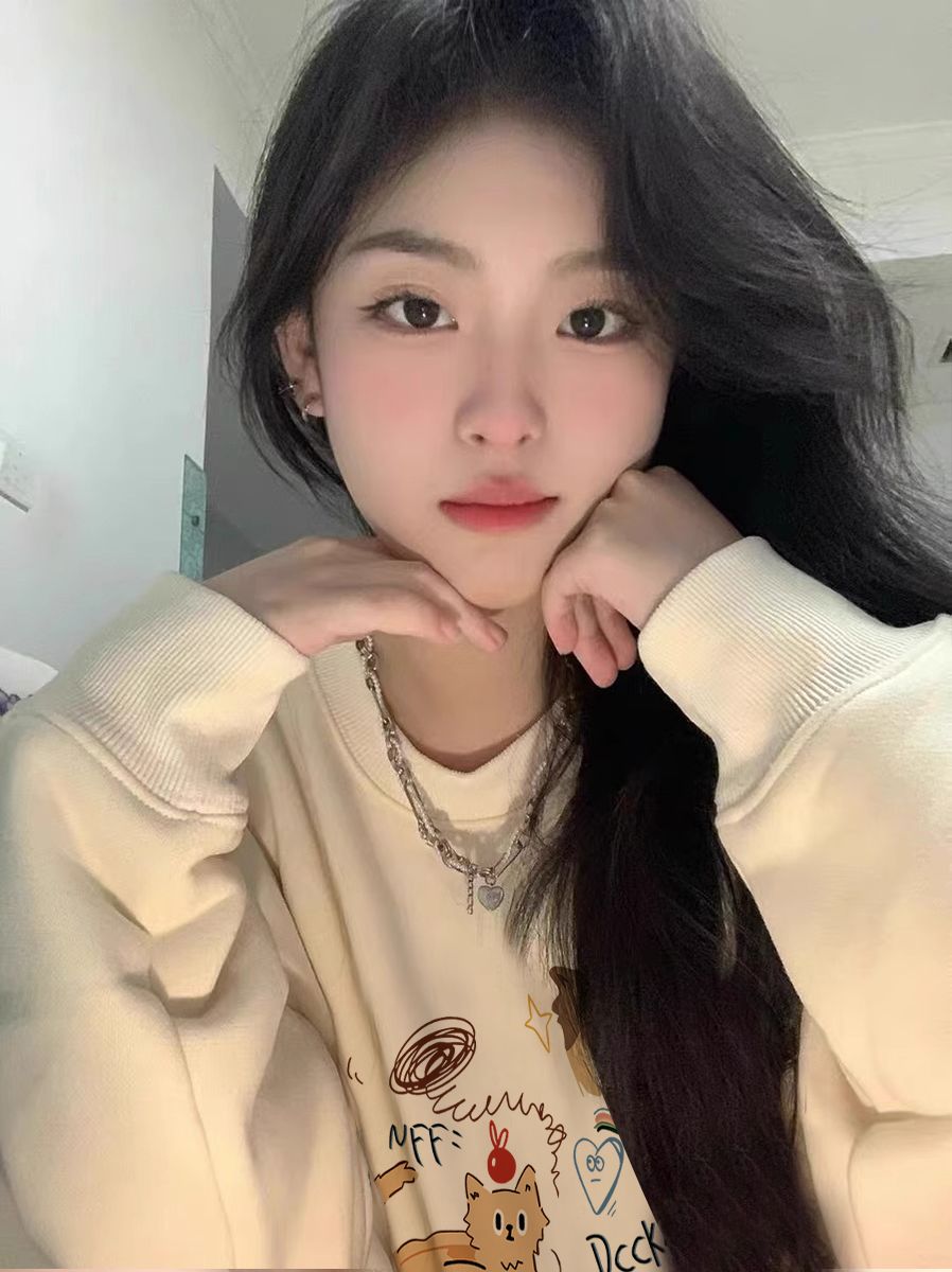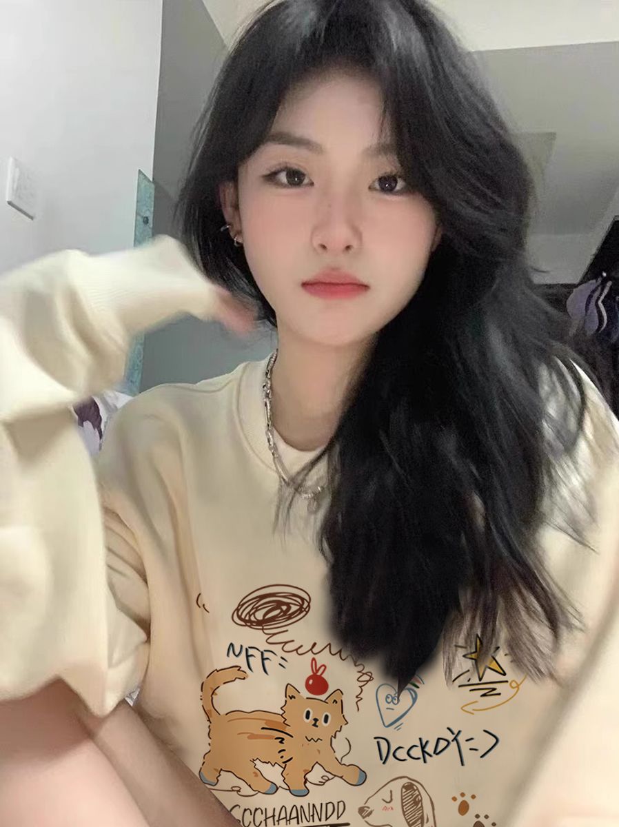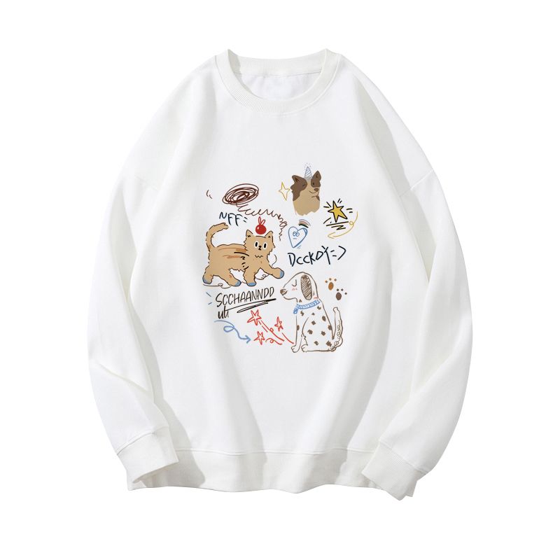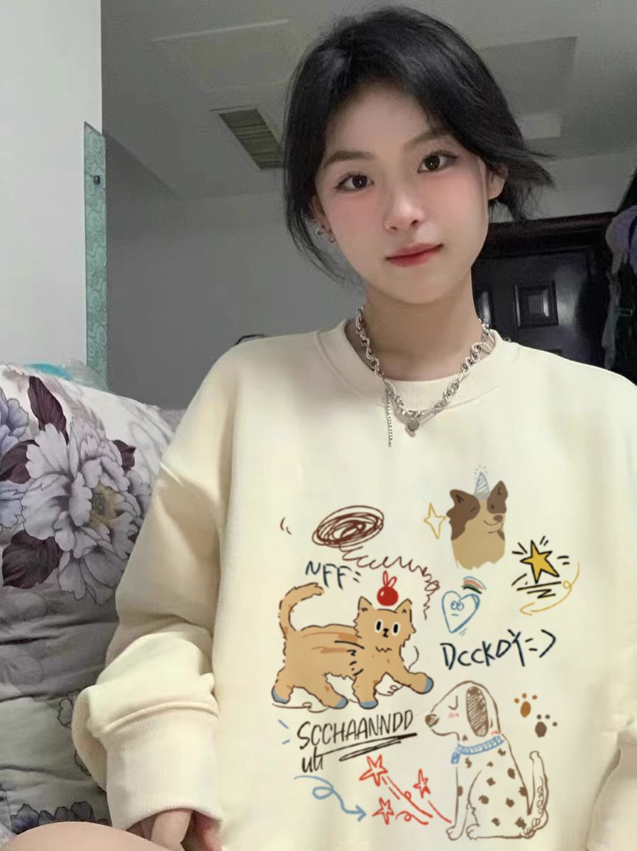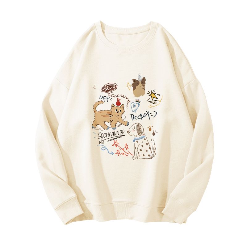 貓狗塗鴉加絨秋冬印花圓領長袖T恤