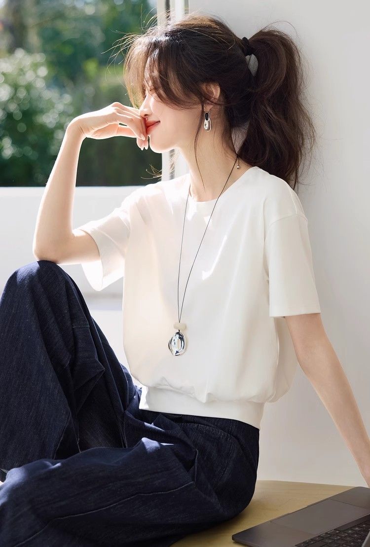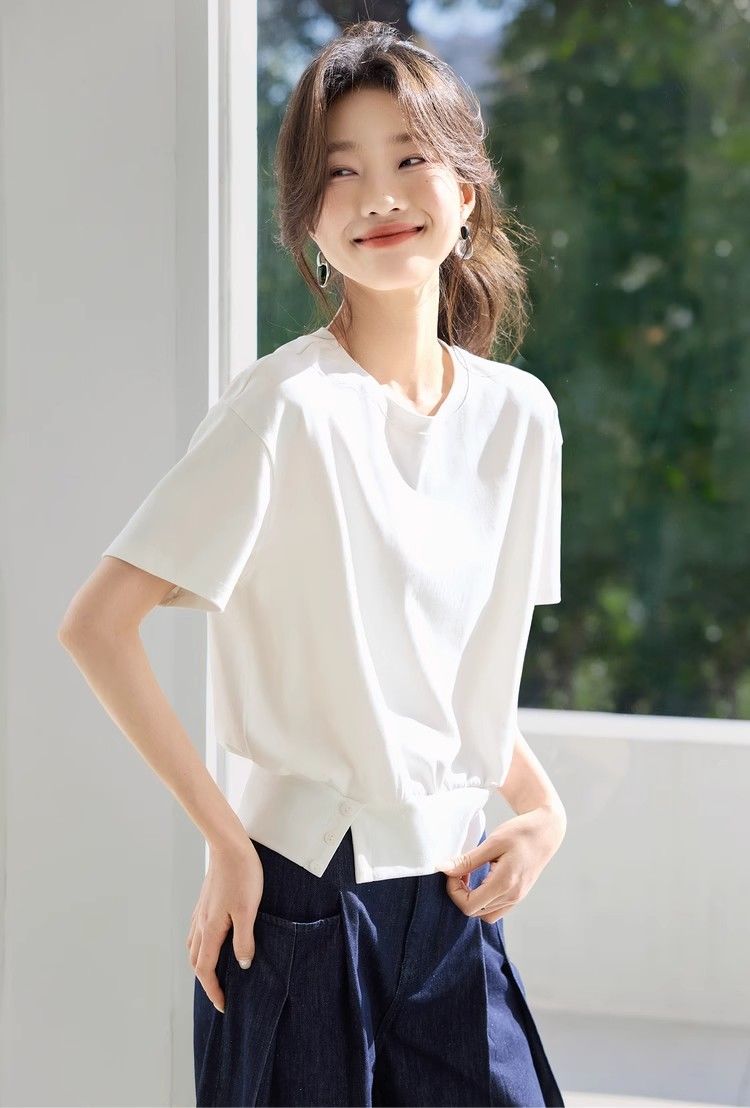 百搭設計感下擺開叉休閒T恤(預購)vic005372