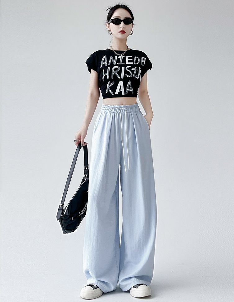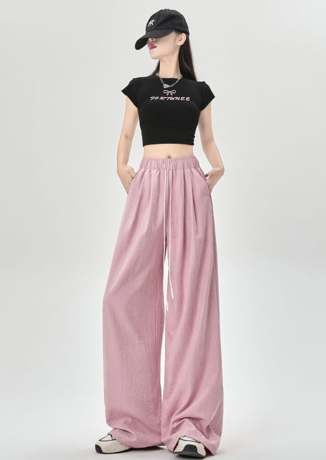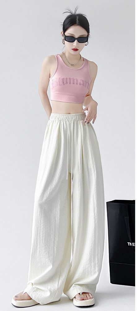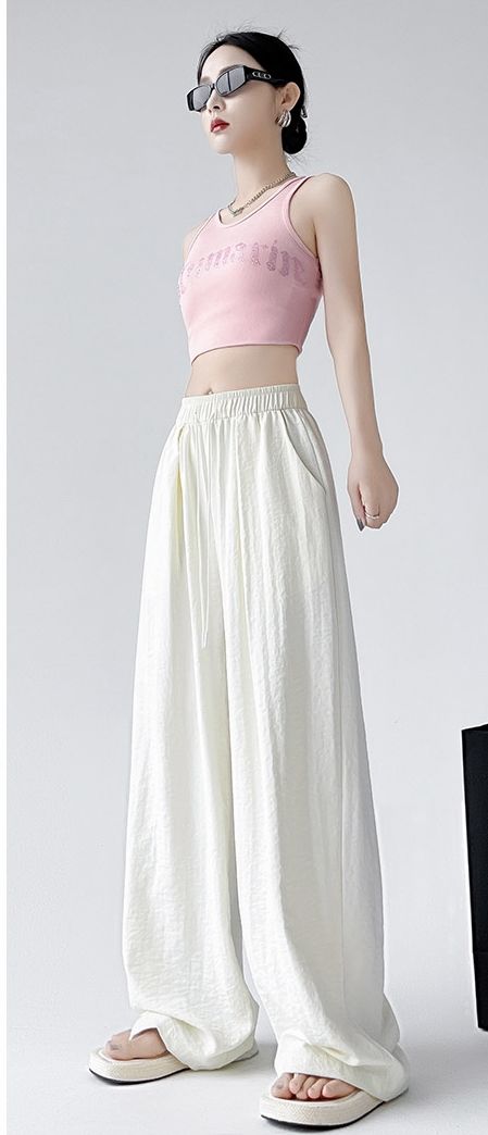 肌理感寬鬆直筒休閒冰絲闊腿褲