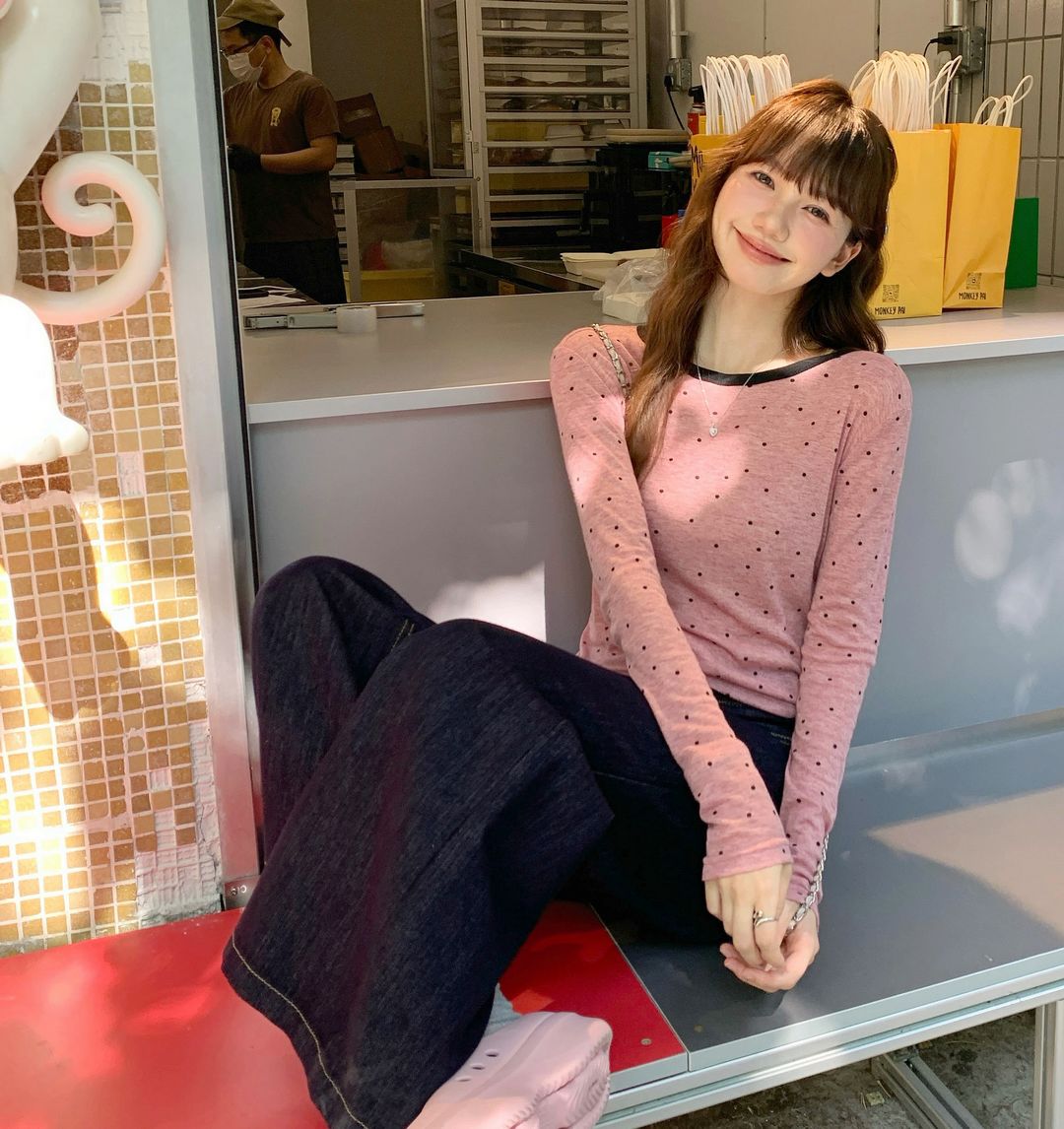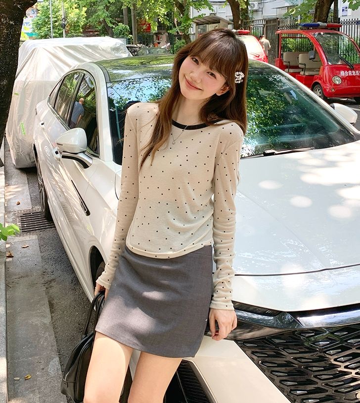 薄款防曬圓點設計長袖T恤(預購)vic005421