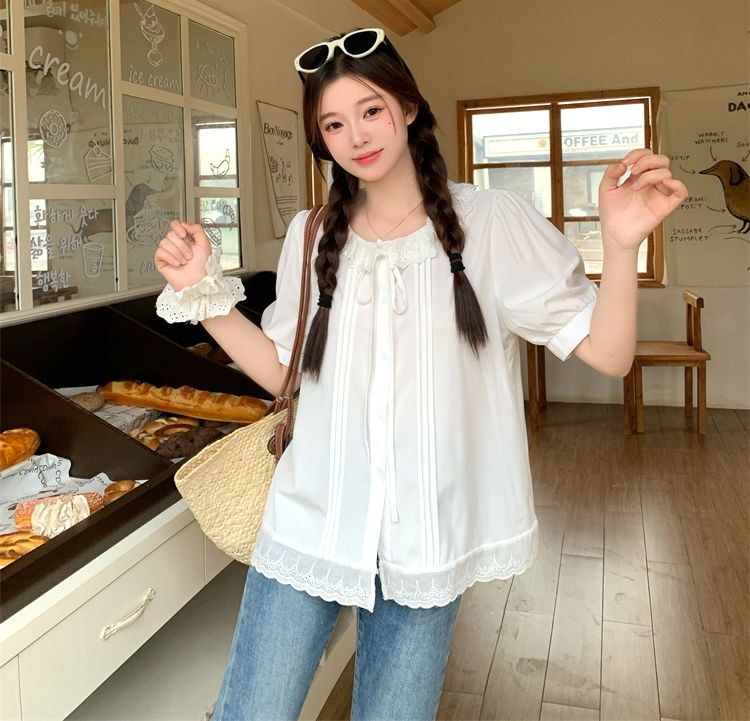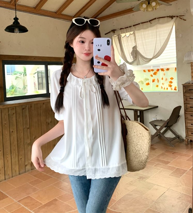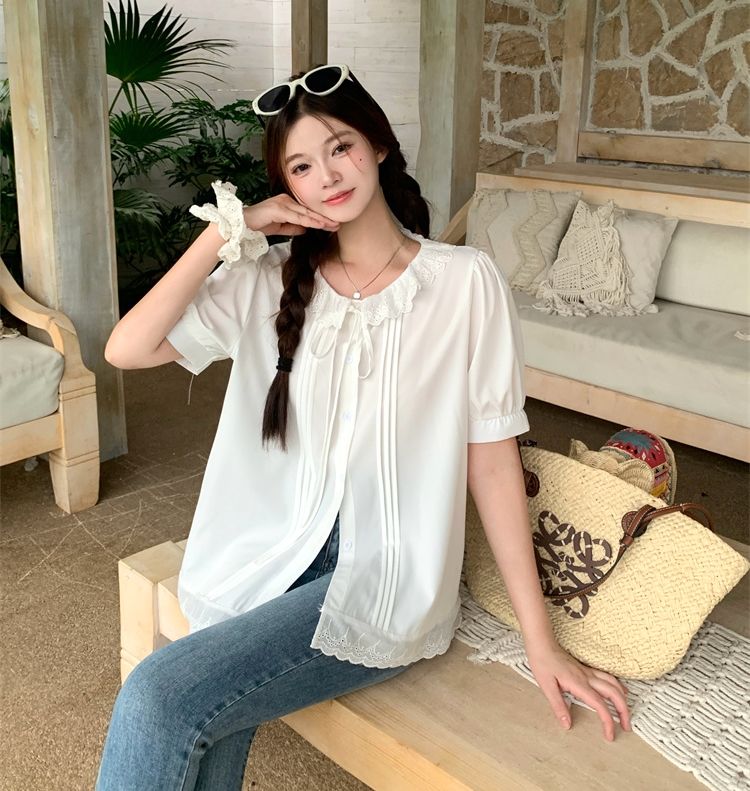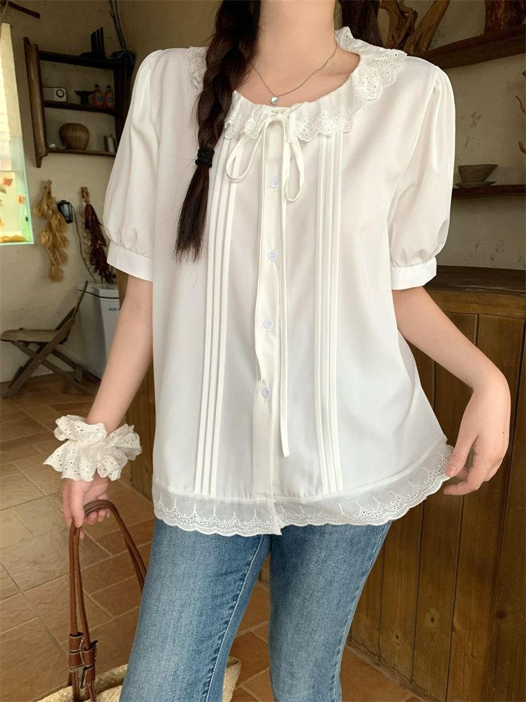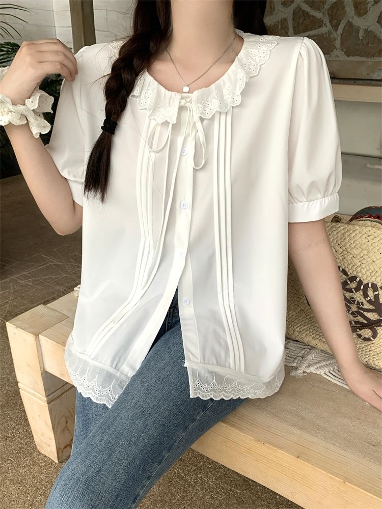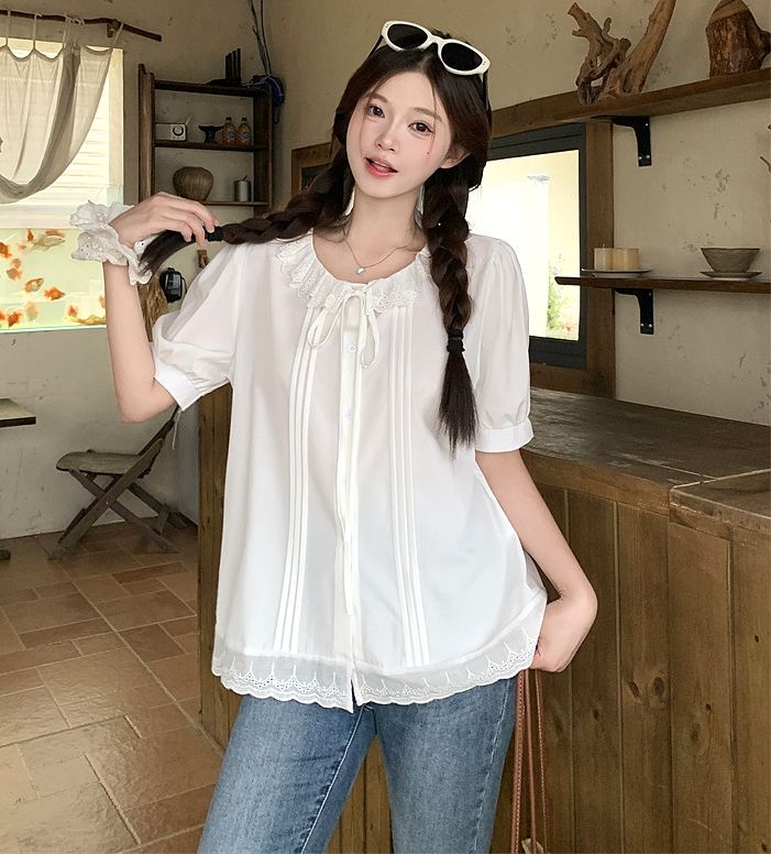 設計感寬鬆荷葉邊短袖襯衫(預購)vic005312