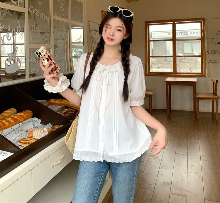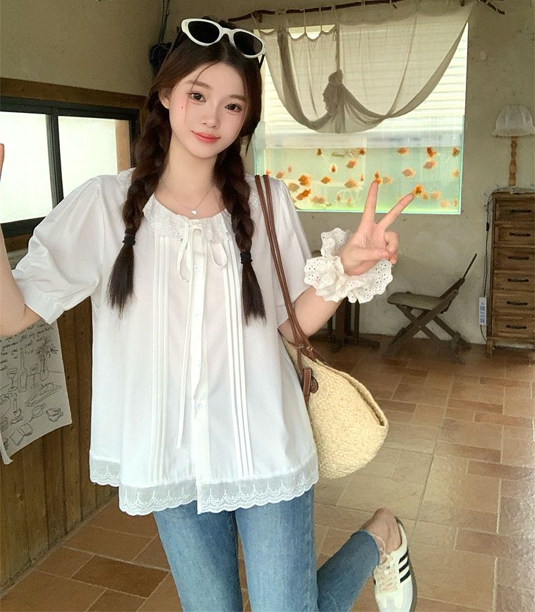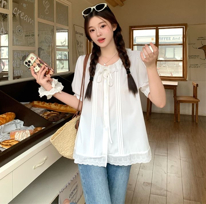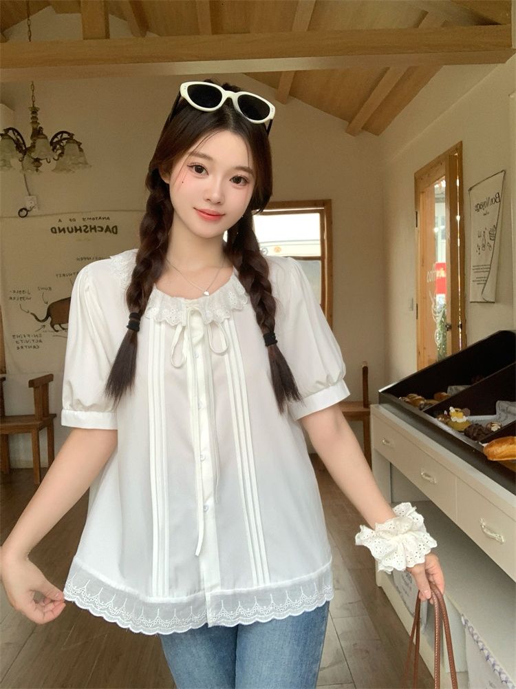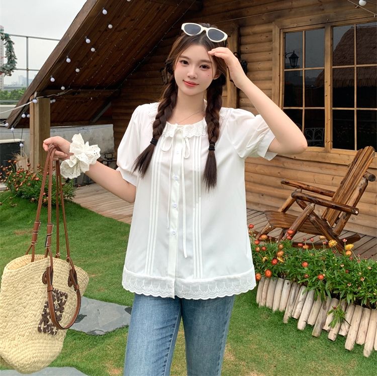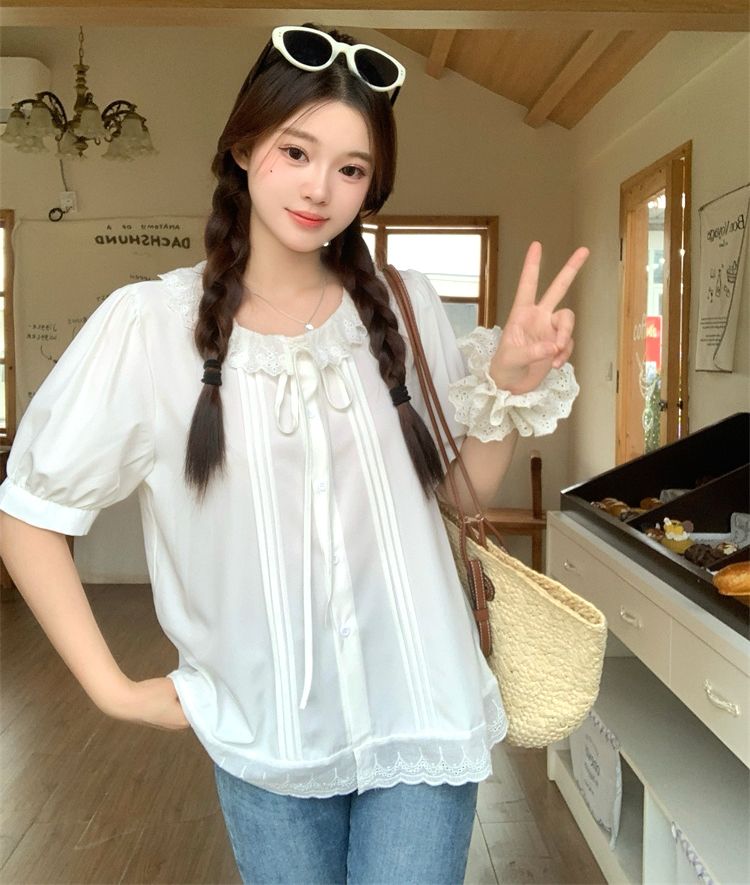 設計感寬鬆荷葉邊短袖襯衫(預購)vic005312