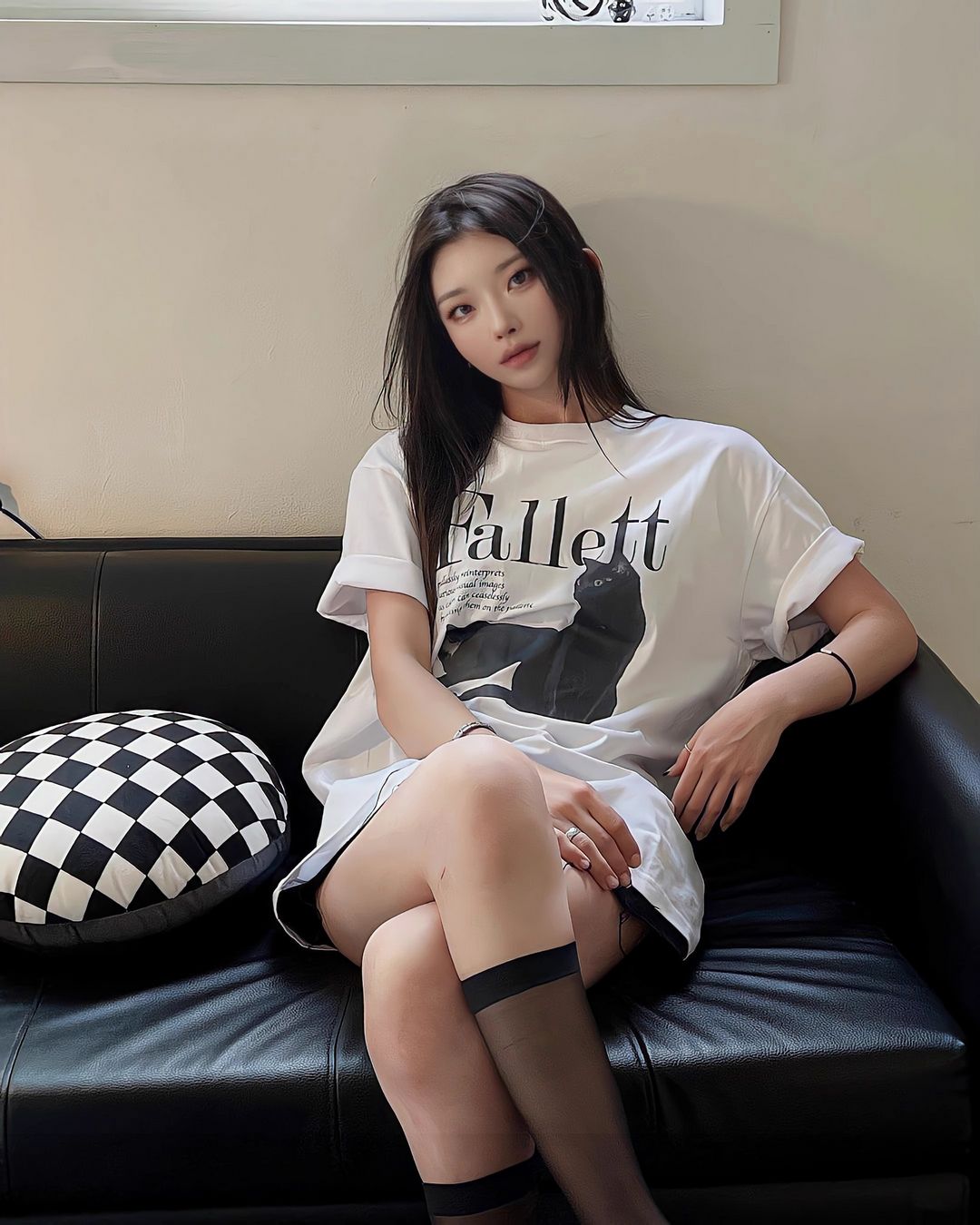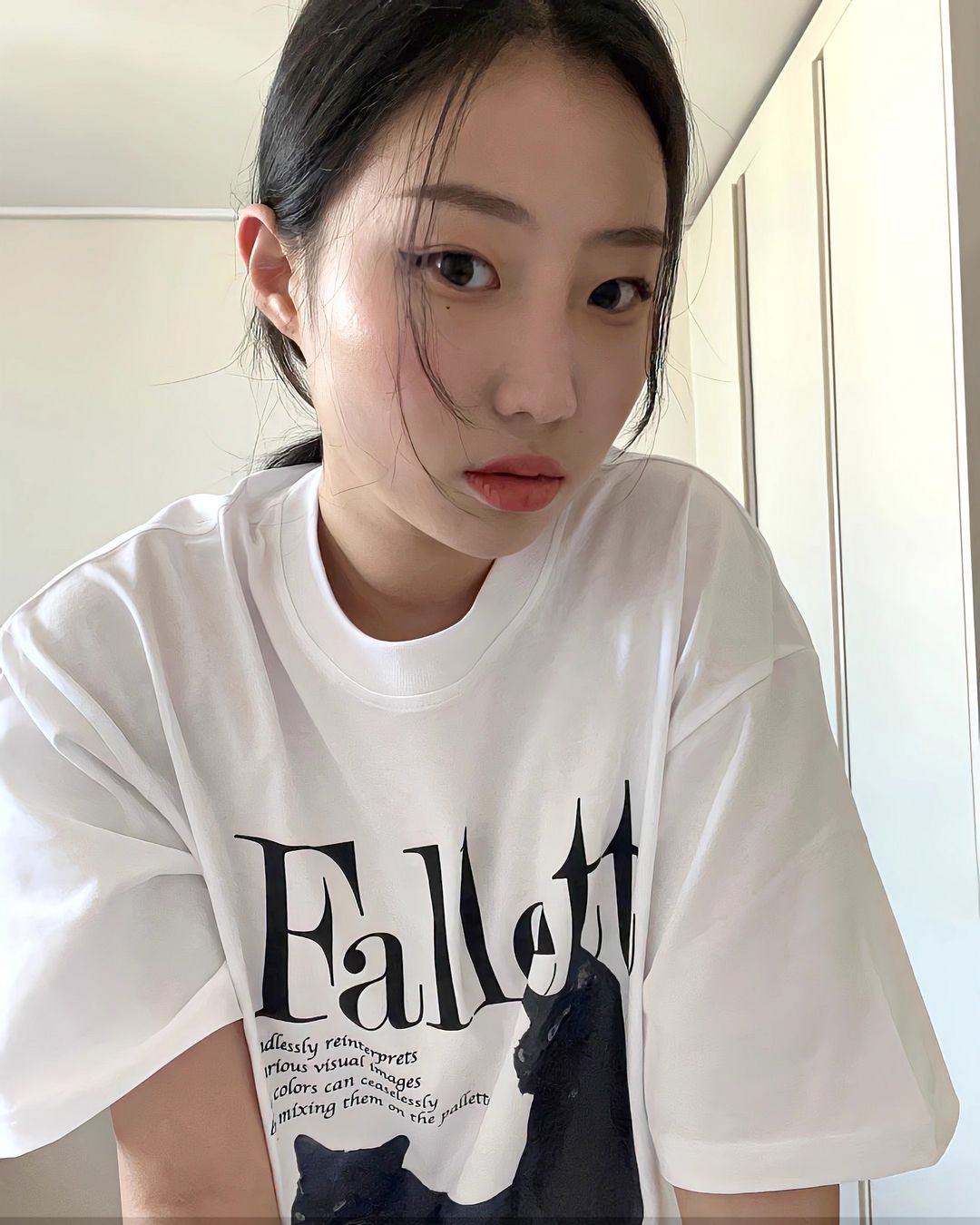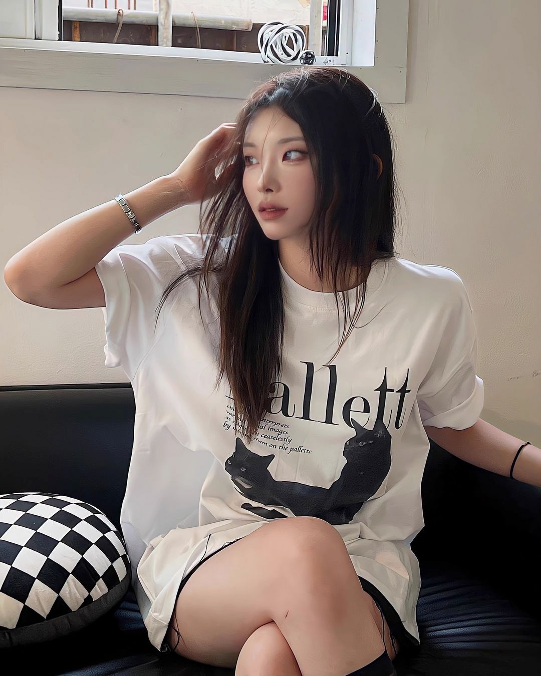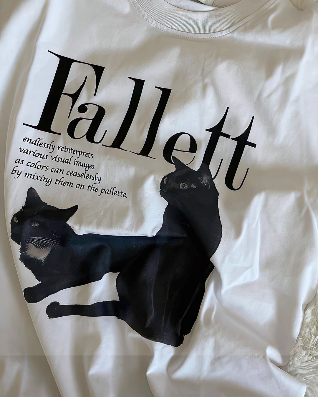 酷黑貓慵懶寬鬆印花短袖T恤(預購)pn003062