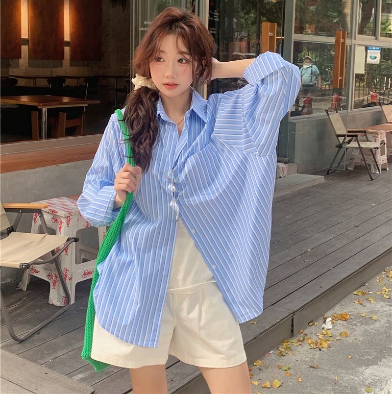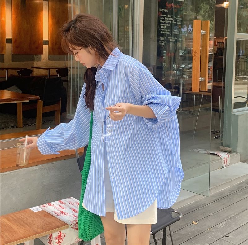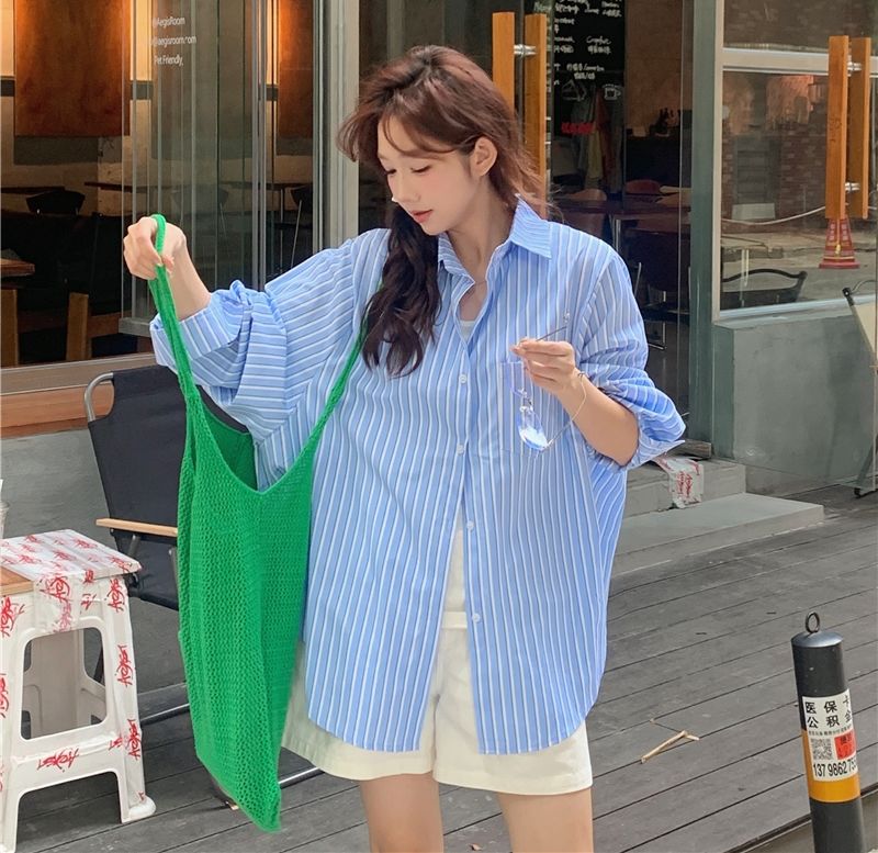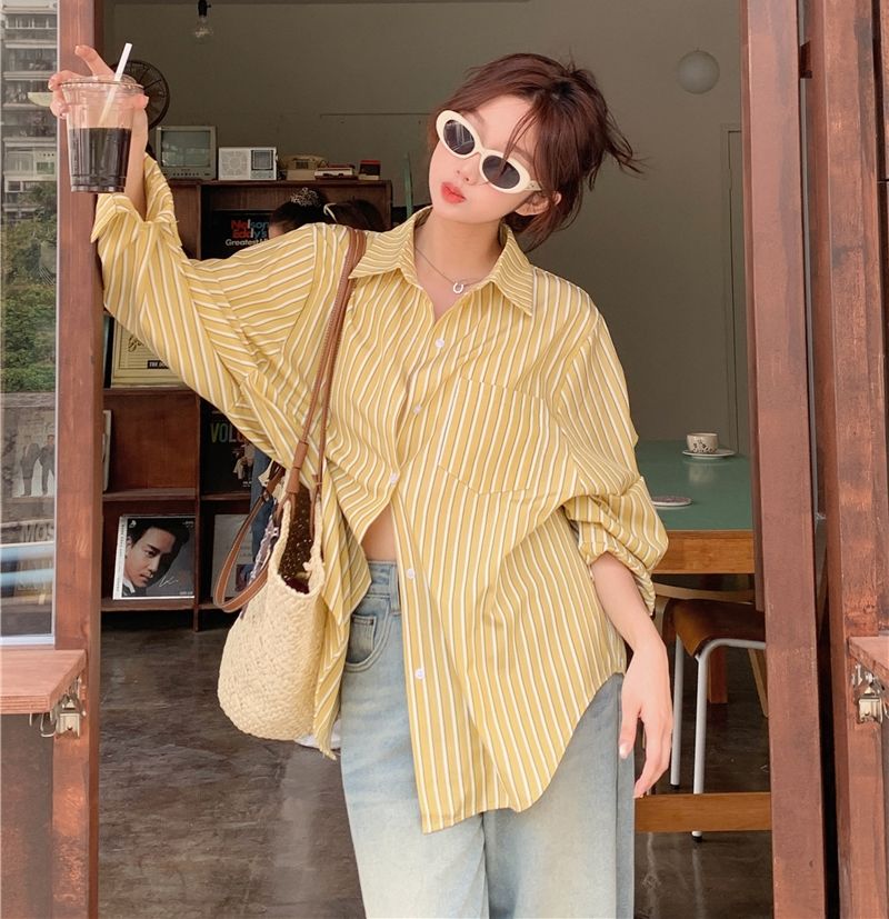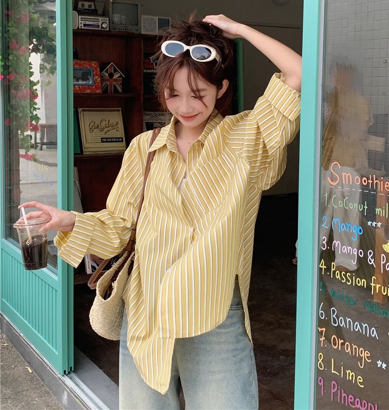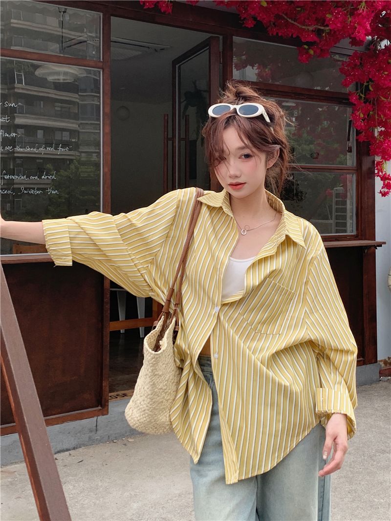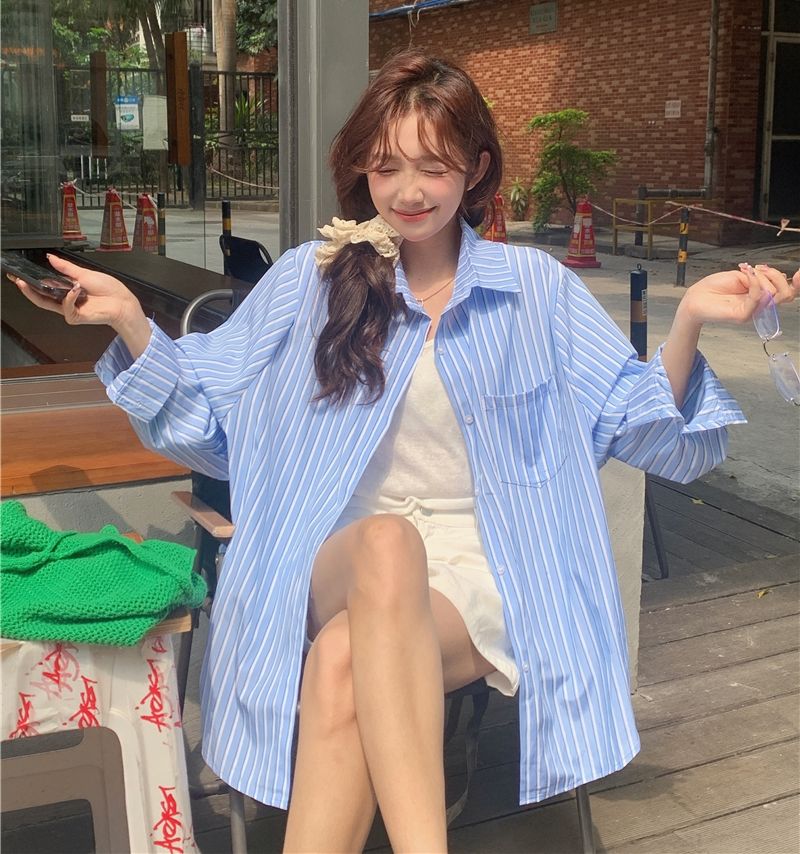 韓版休閒寬鬆長袖條紋襯衫防曬外套