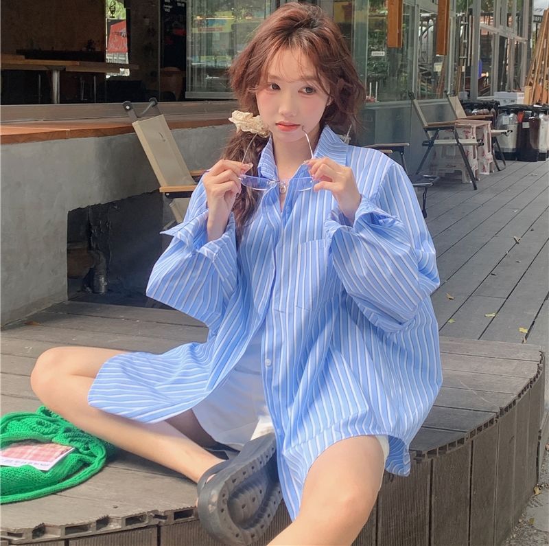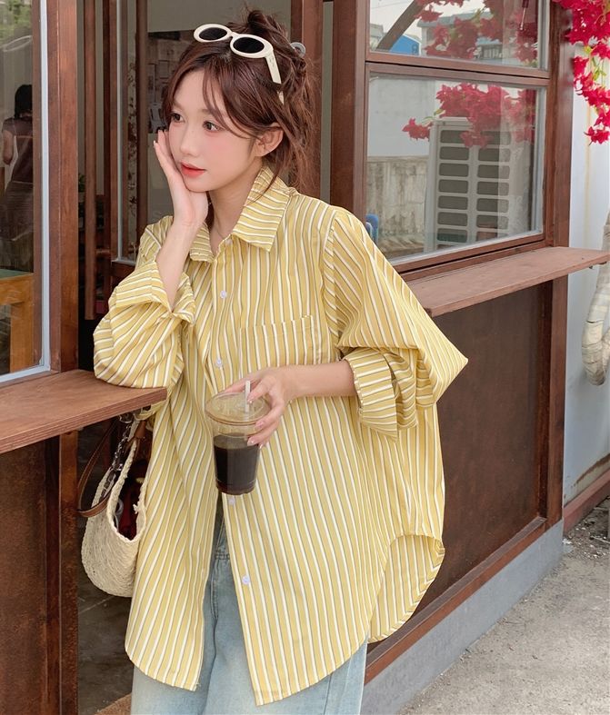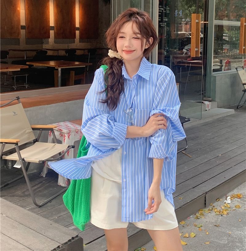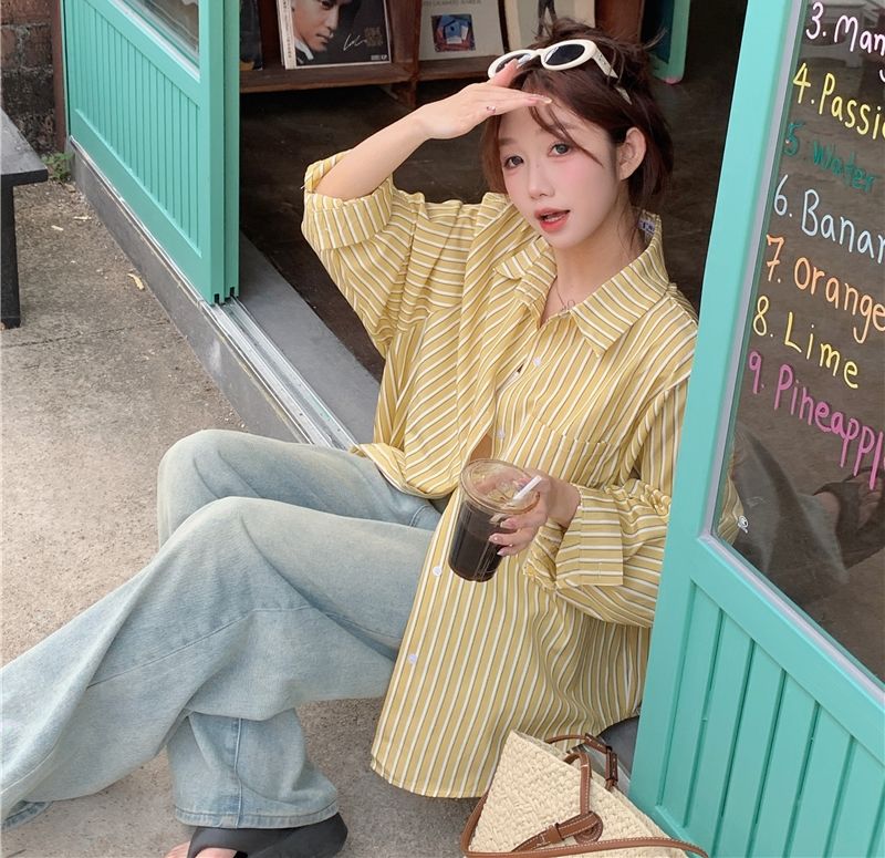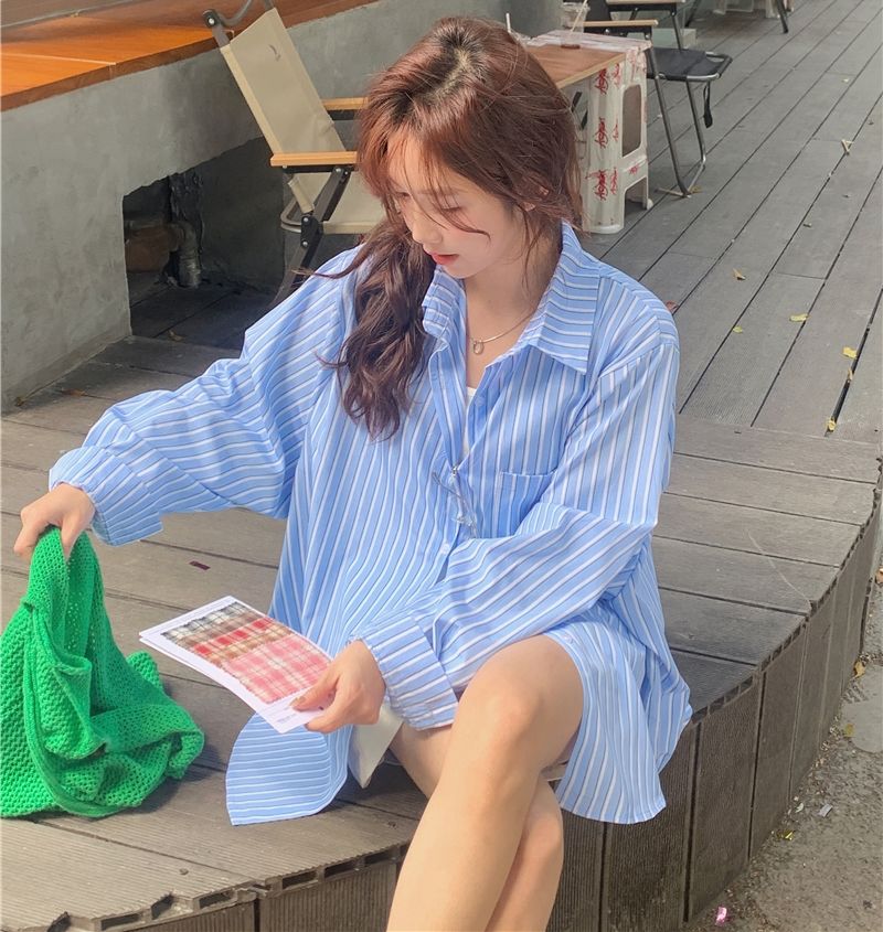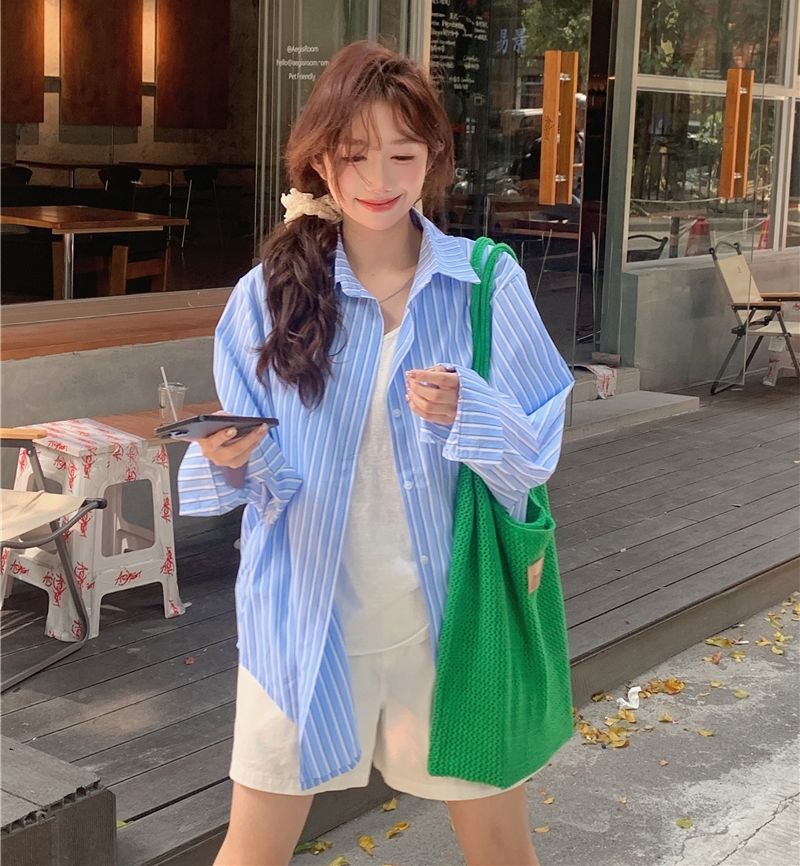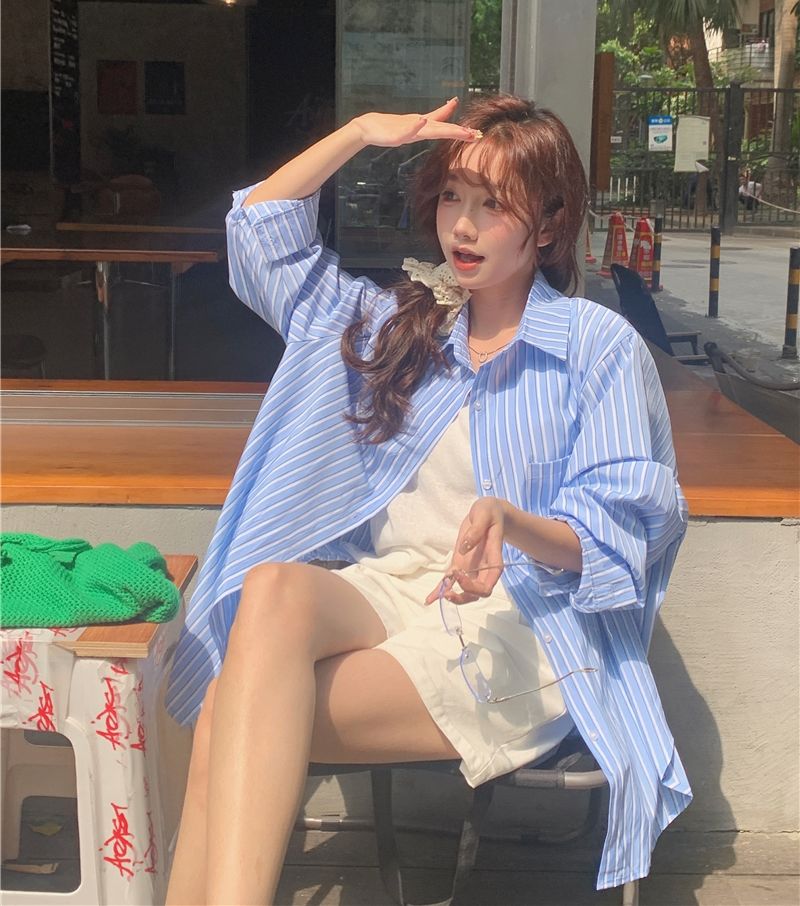 韓版休閒寬鬆長袖條紋襯衫防曬外套