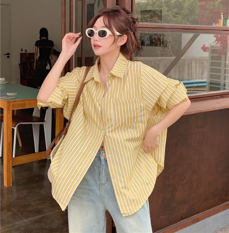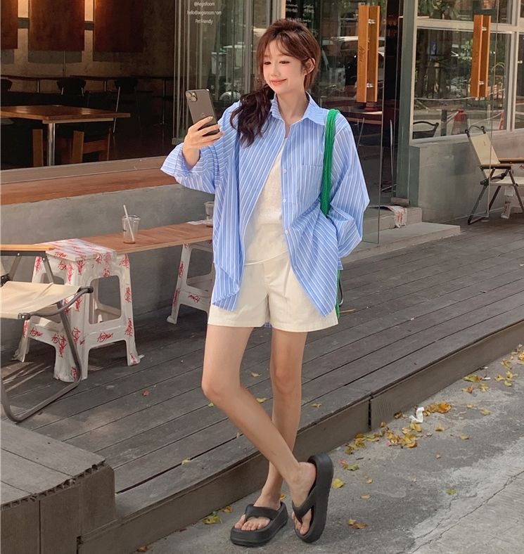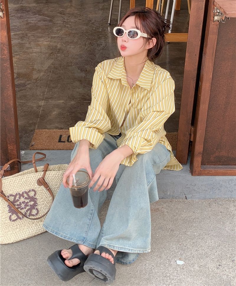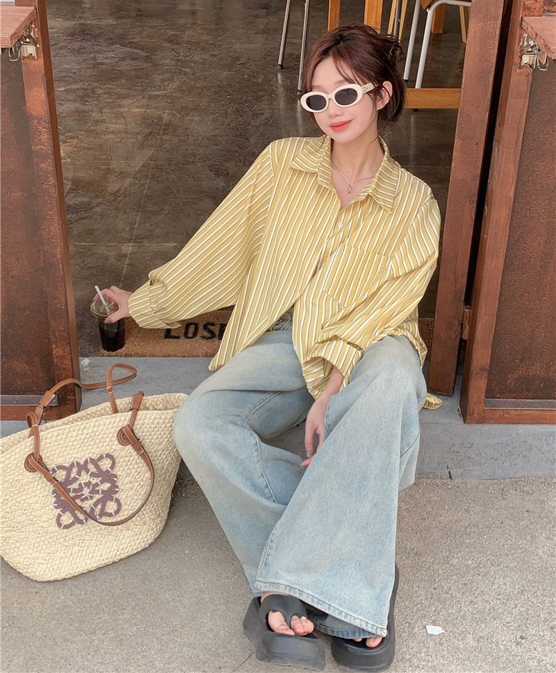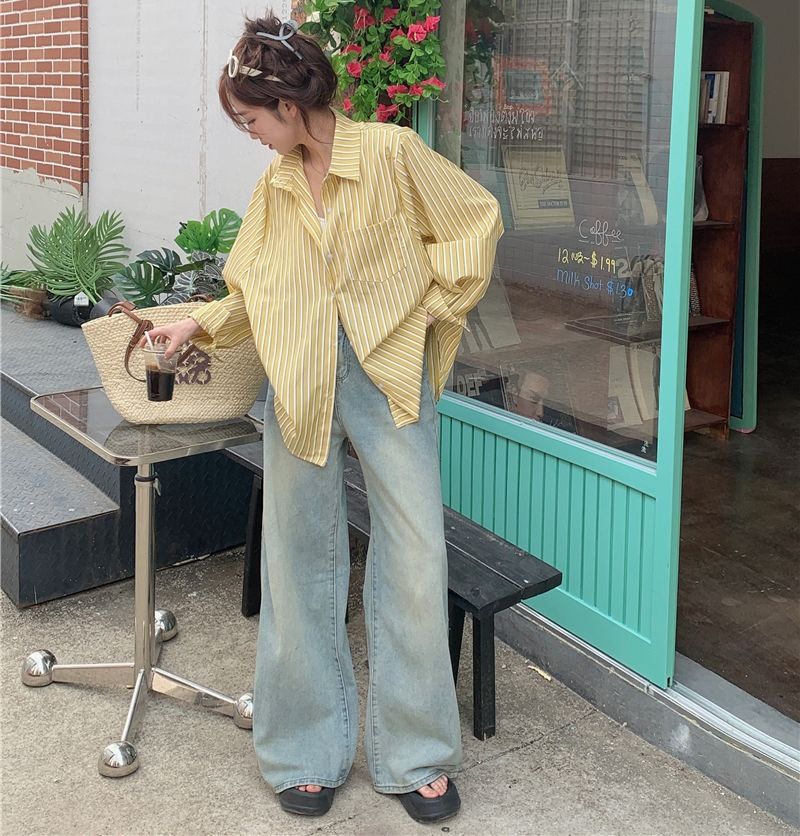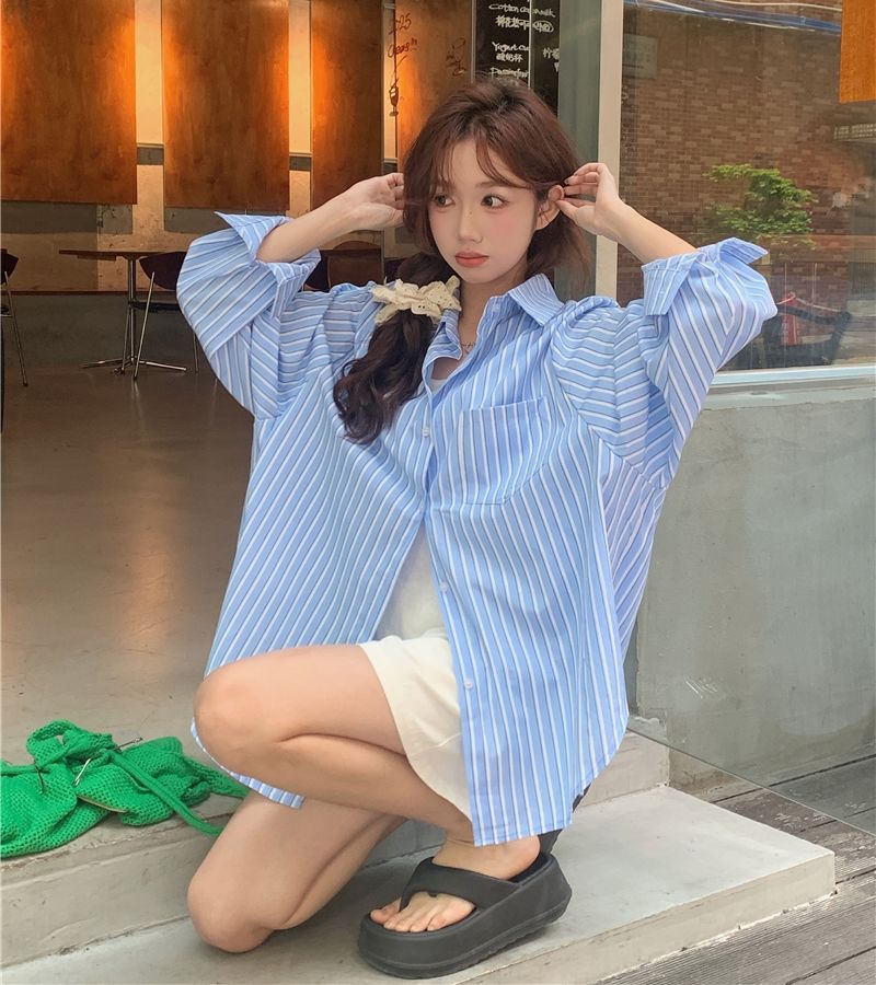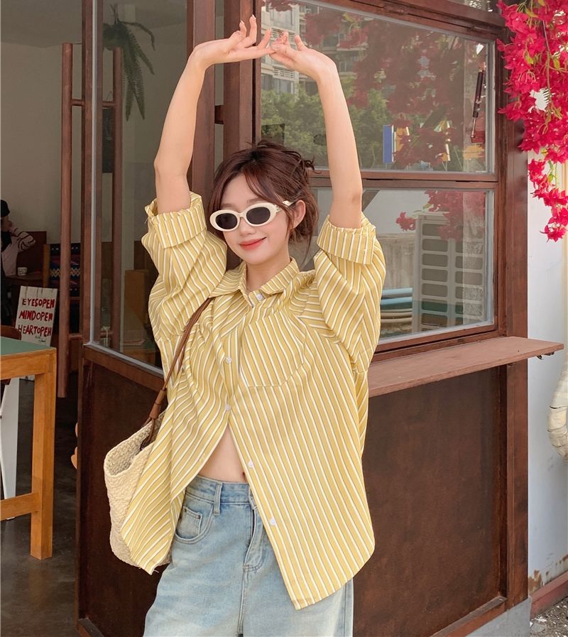 韓版休閒寬鬆長袖條紋襯衫防曬外套