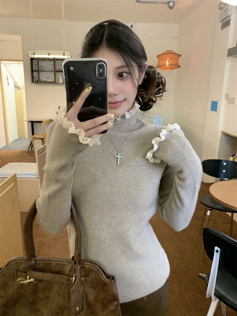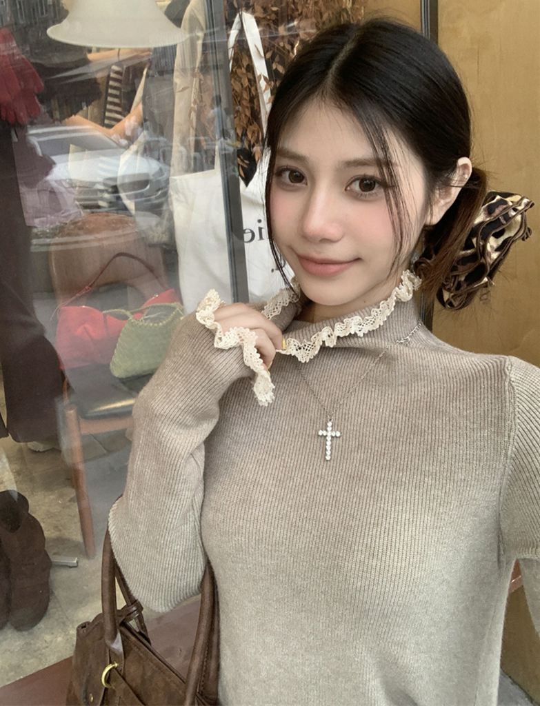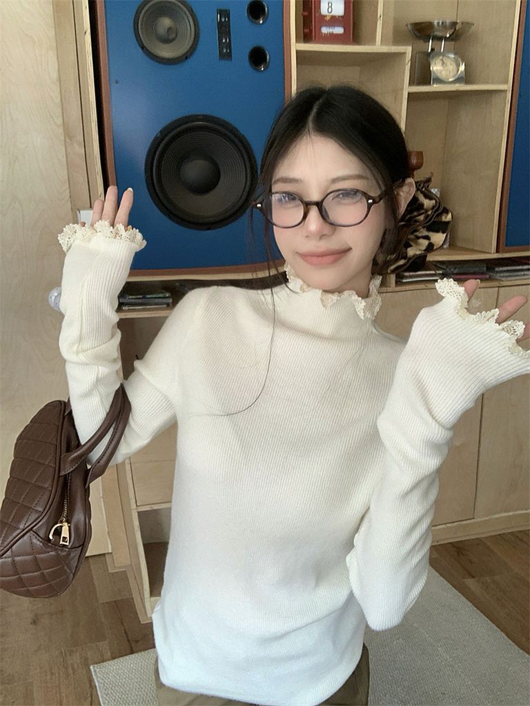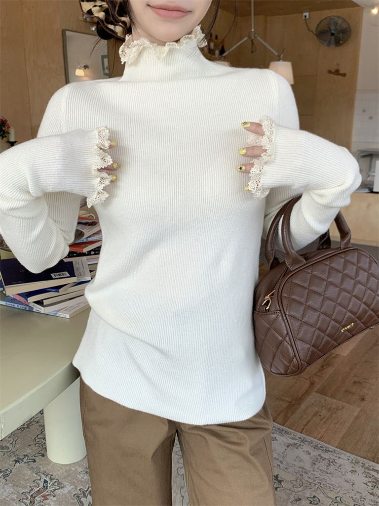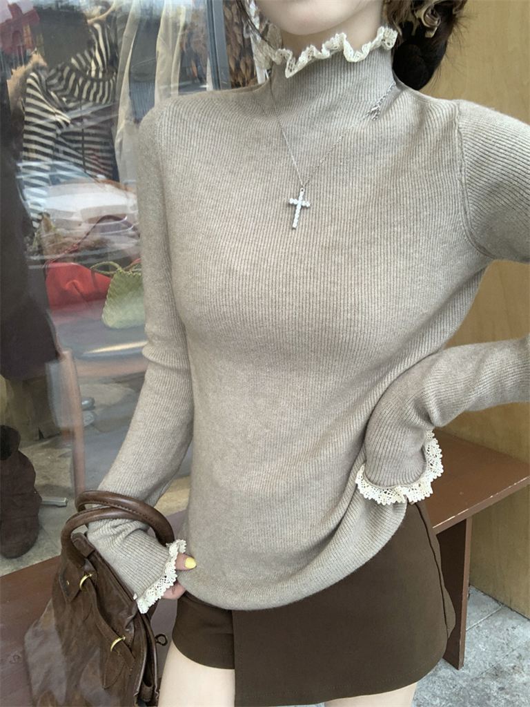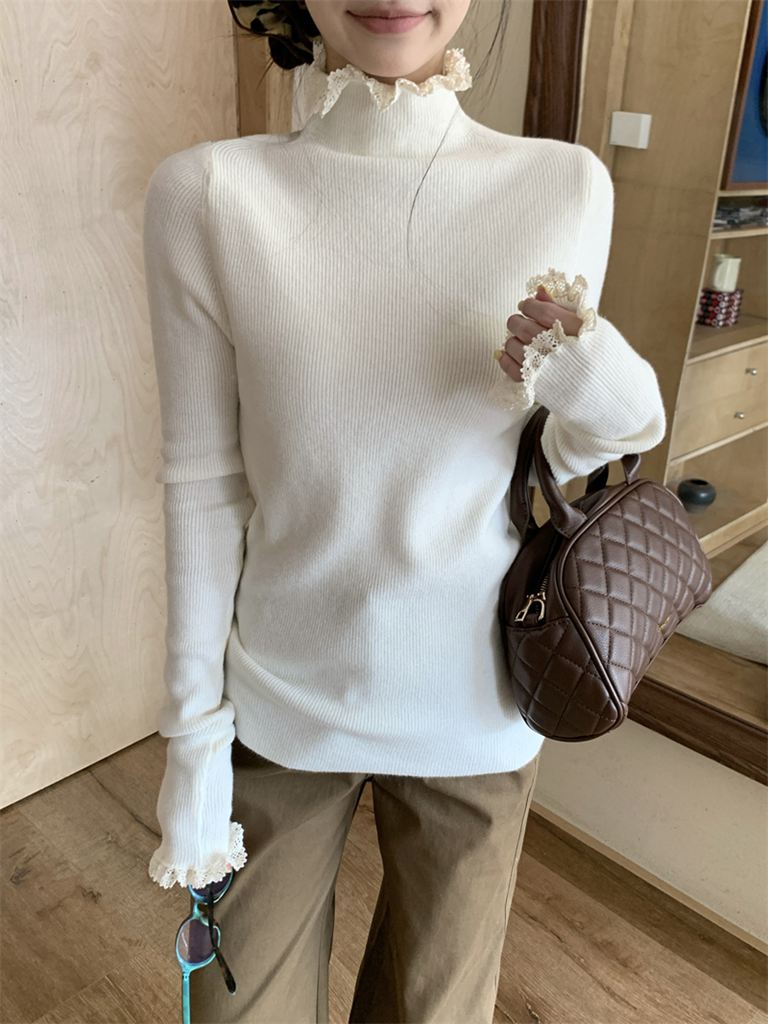 秋冬蕾絲半高領針織毛衣