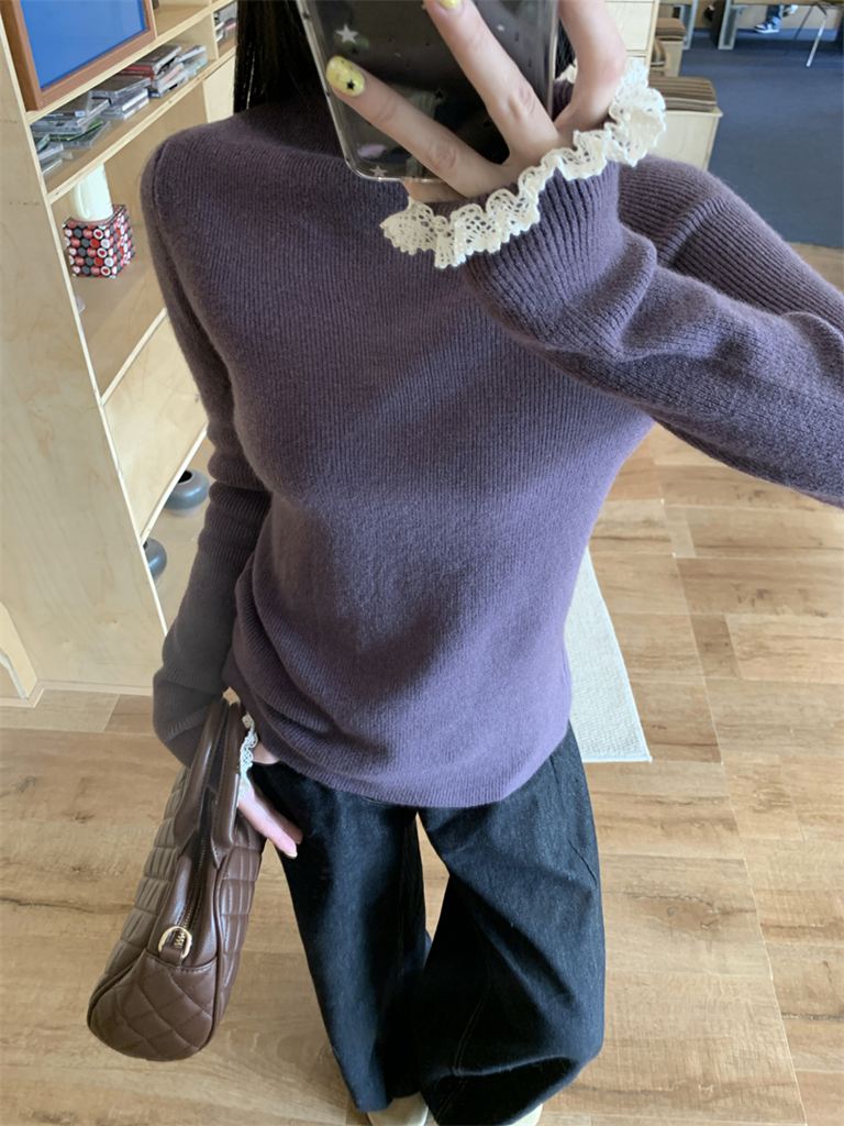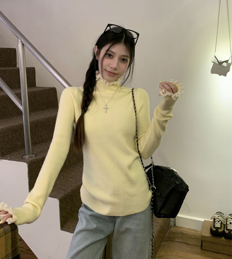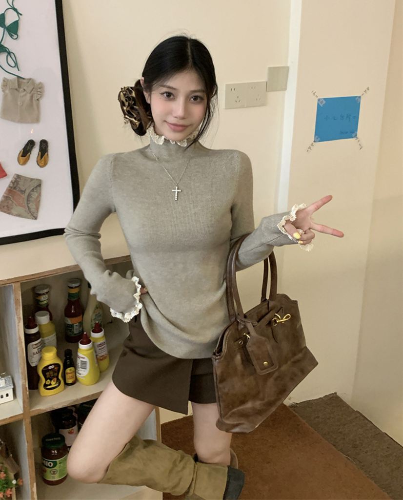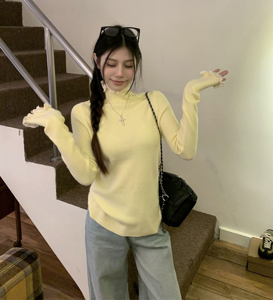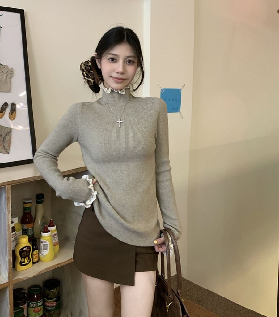 秋冬蕾絲半高領針織毛衣