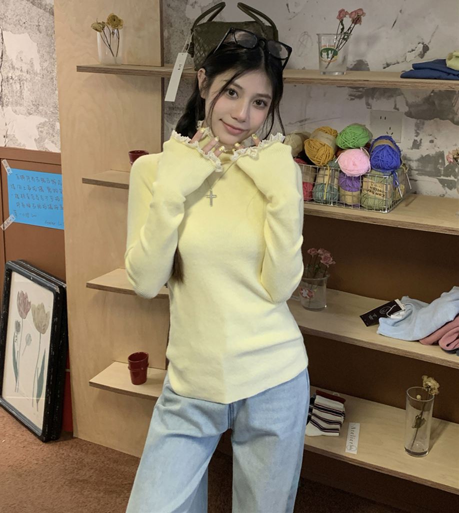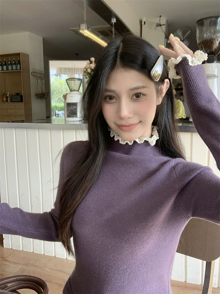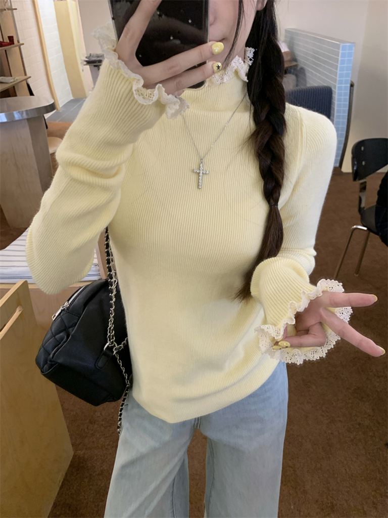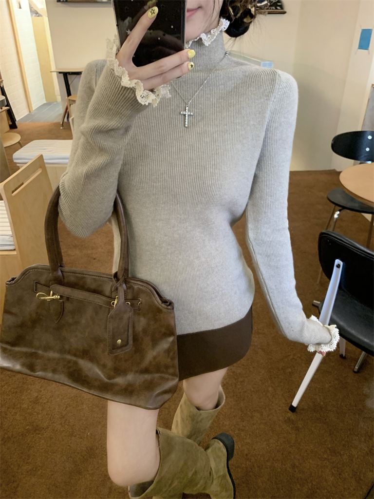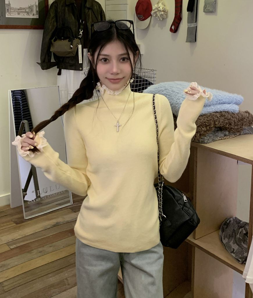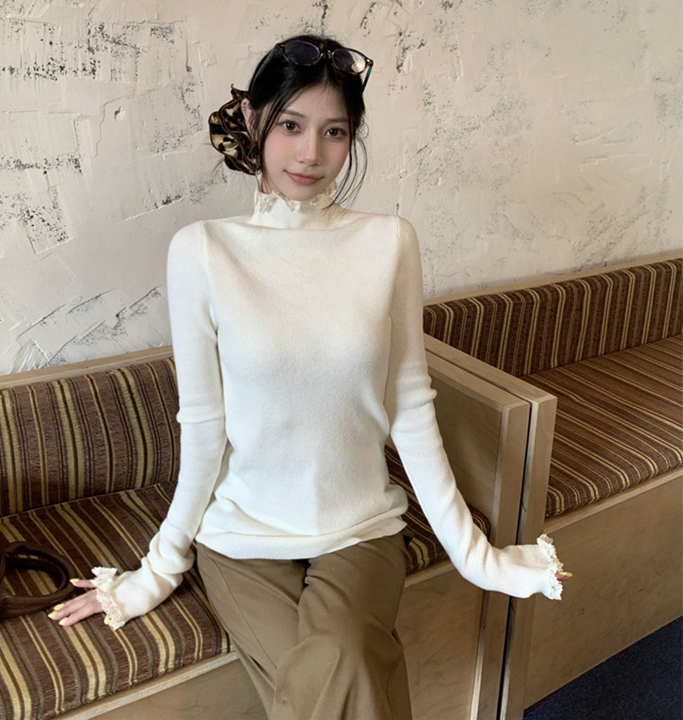 秋冬蕾絲半高領針織毛衣