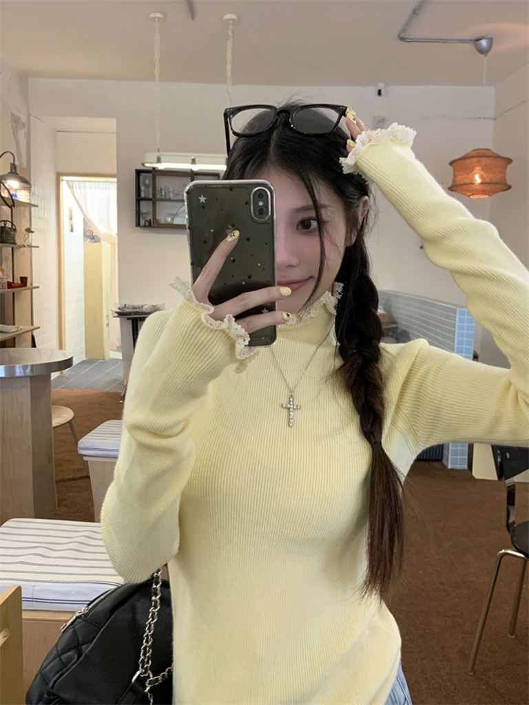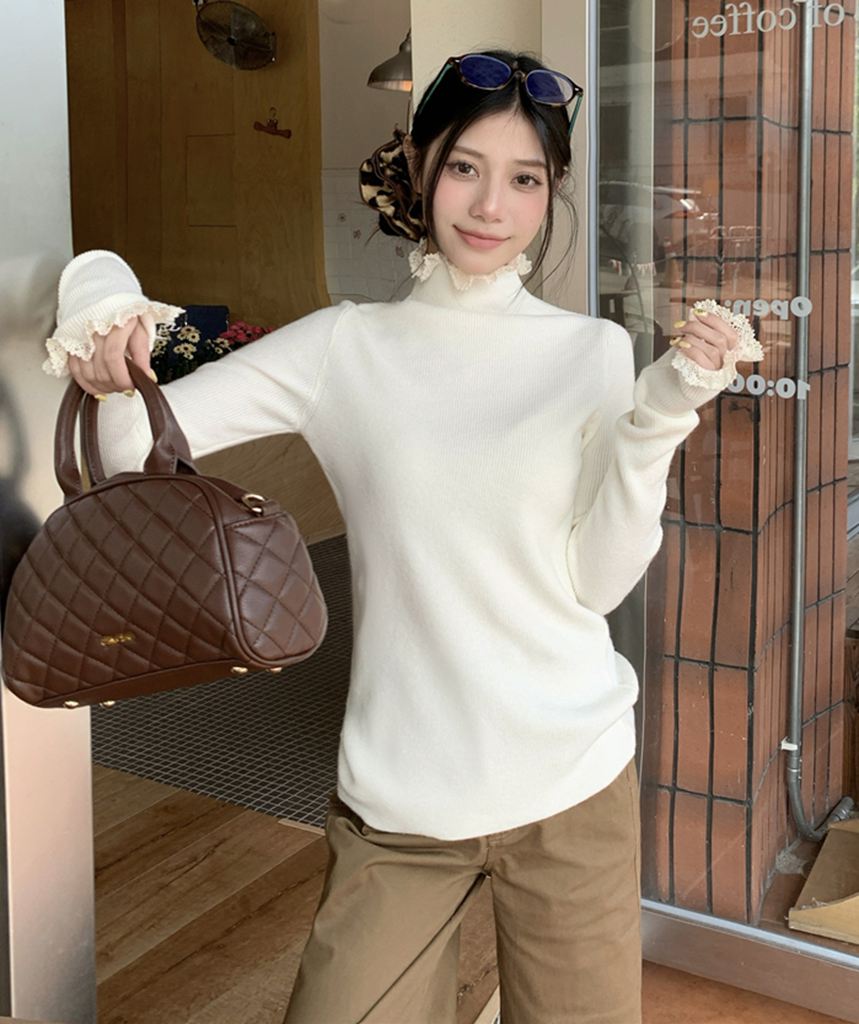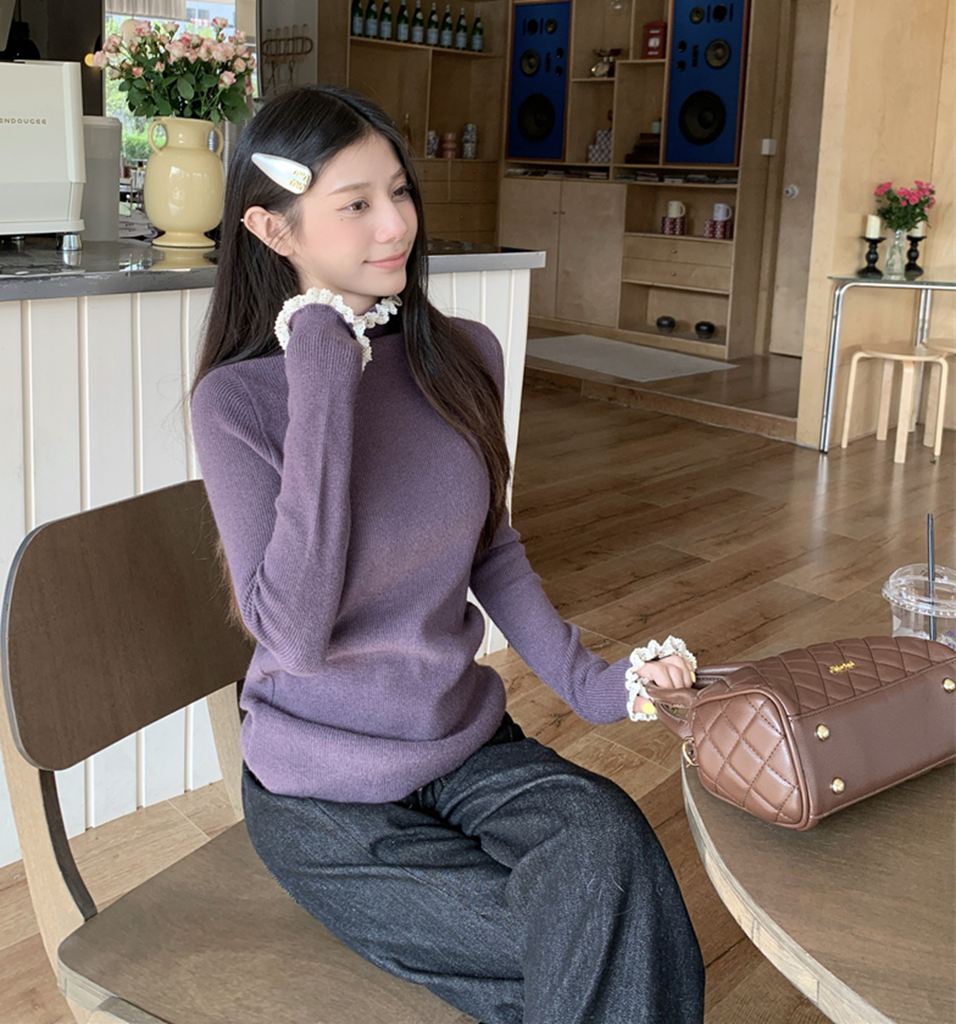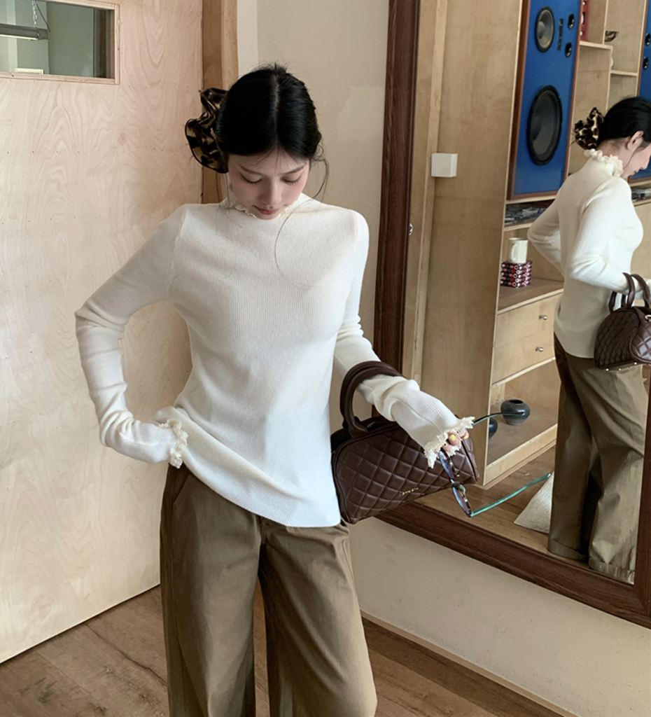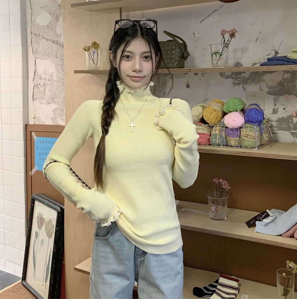 秋冬蕾絲半高領針織毛衣