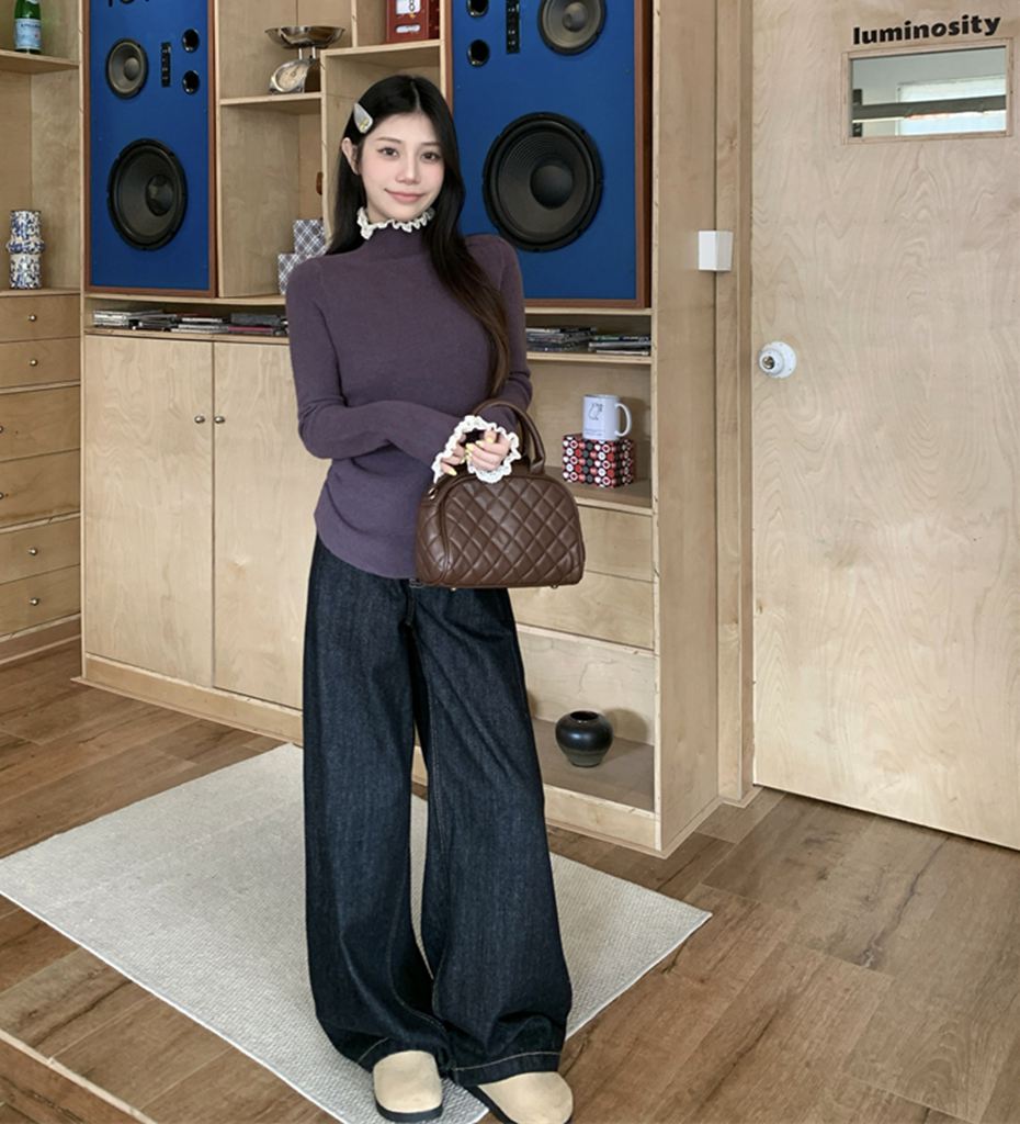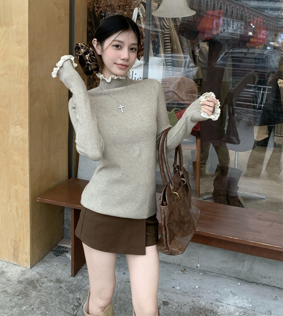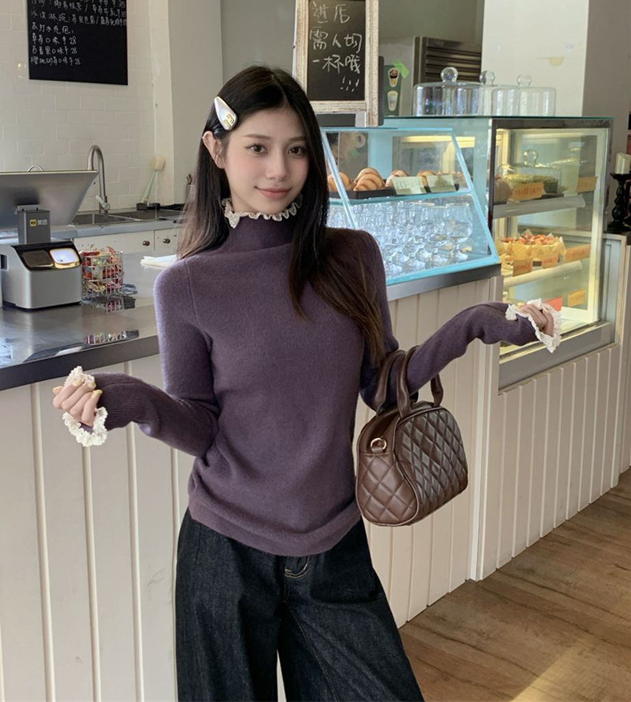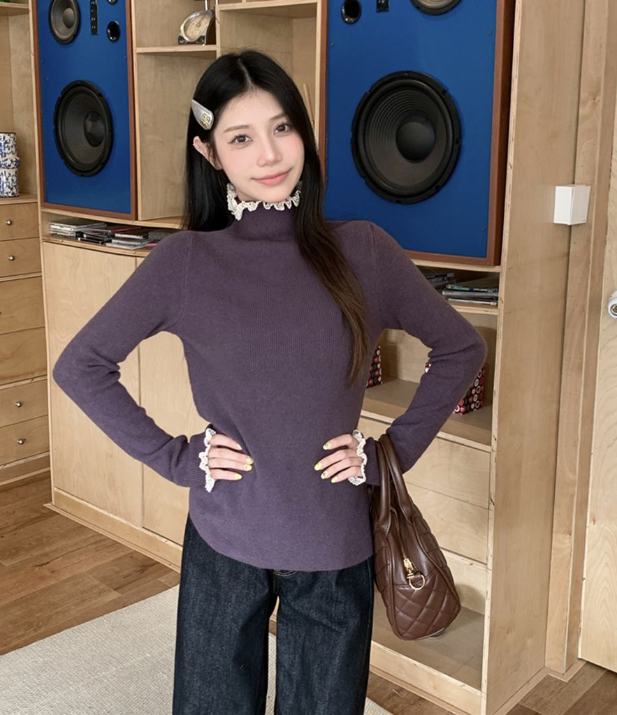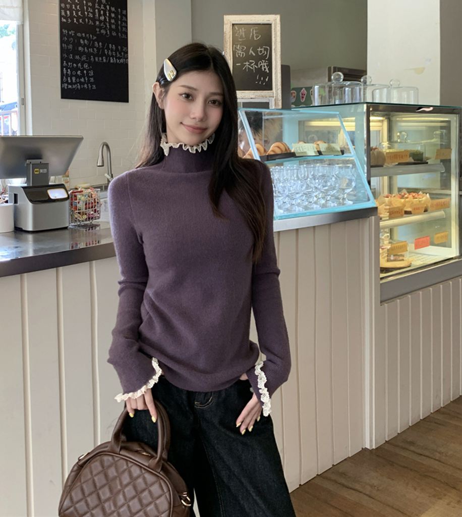 秋冬蕾絲半高領針織毛衣(預購)vic005550