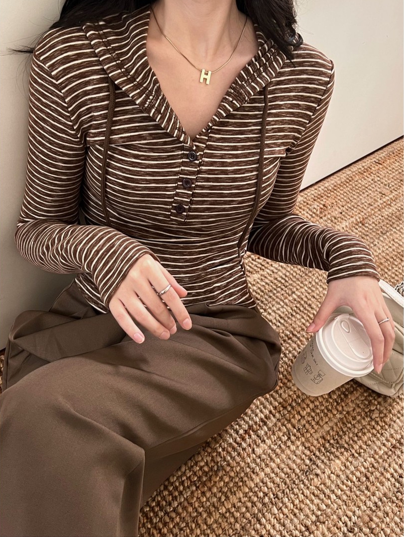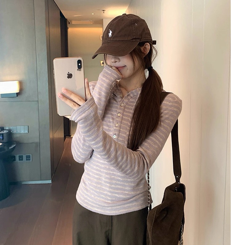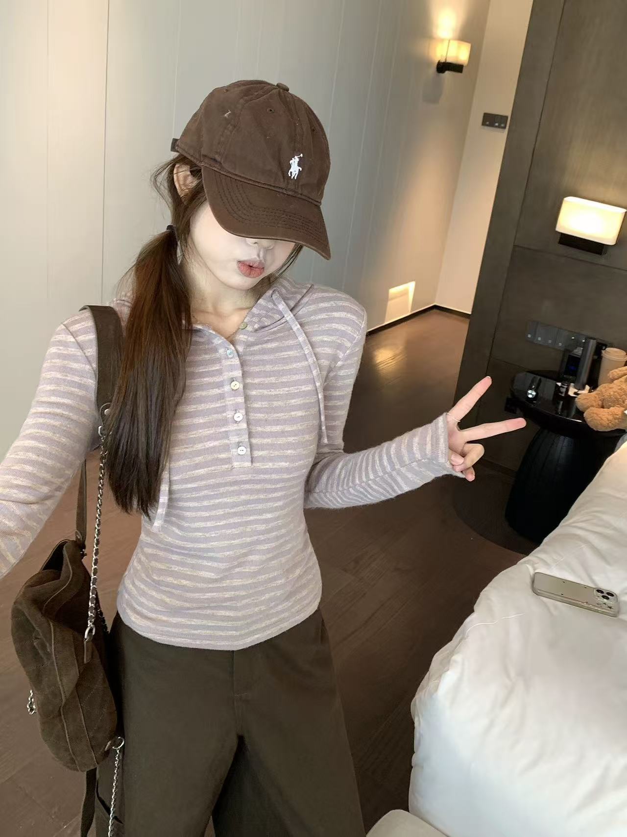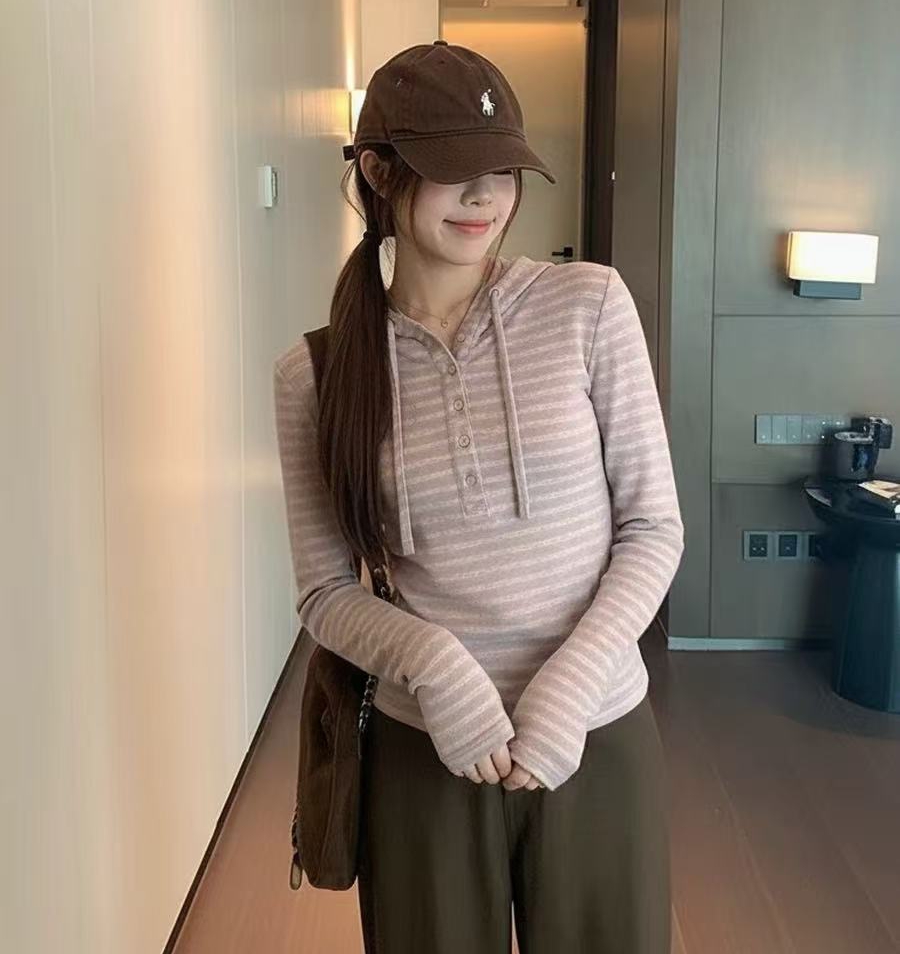 新款連帽條紋德絨長袖T恤(預購)pn003136