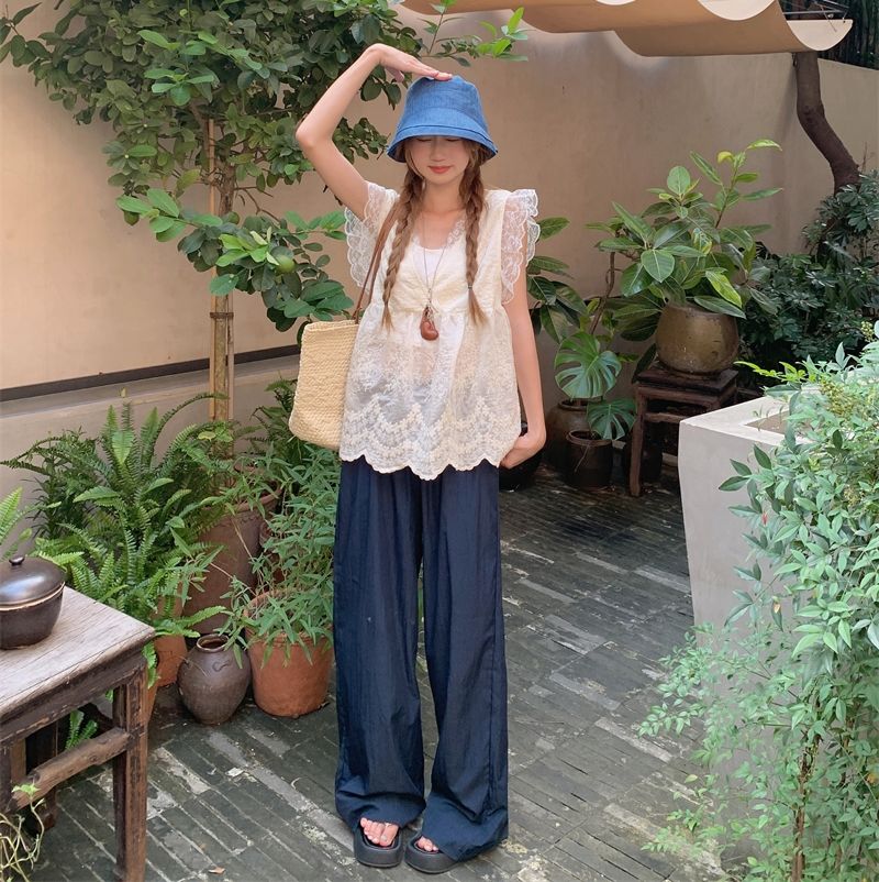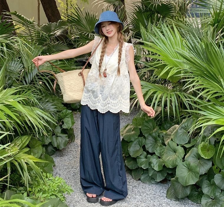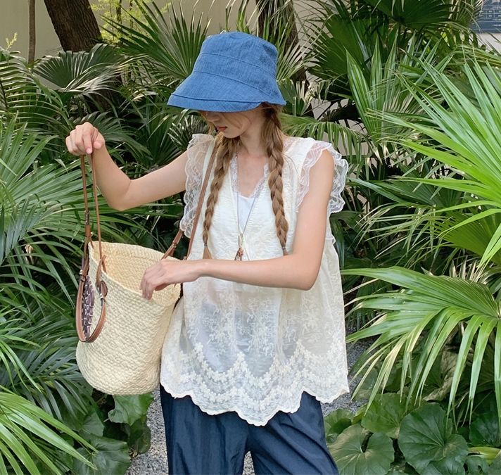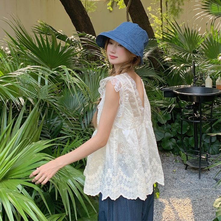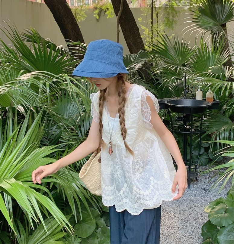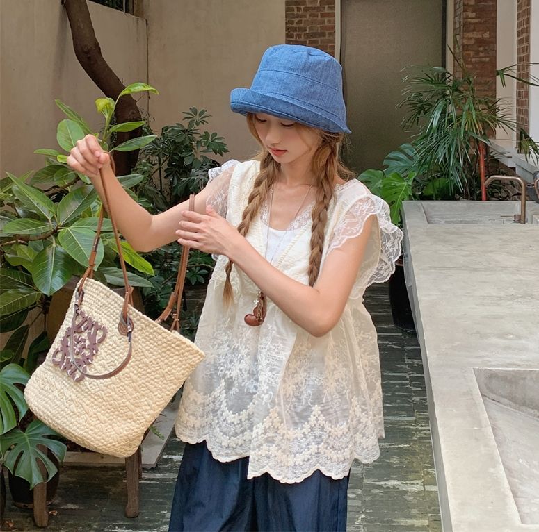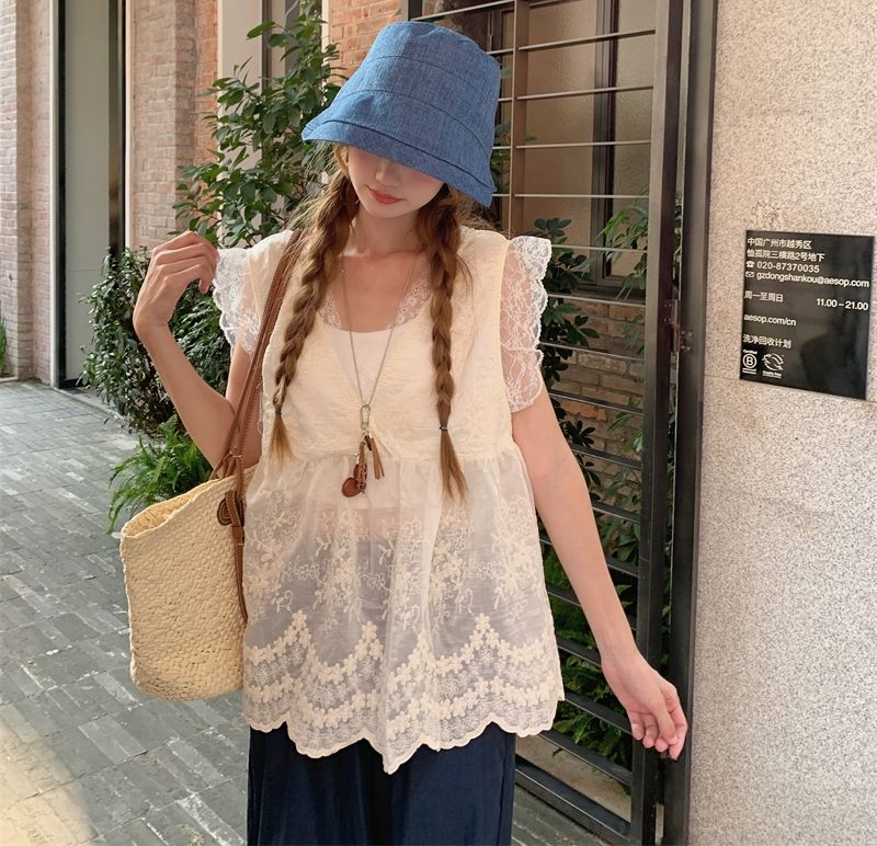 V領蕾絲花邊刺繡背心上衣(預購)vic005373